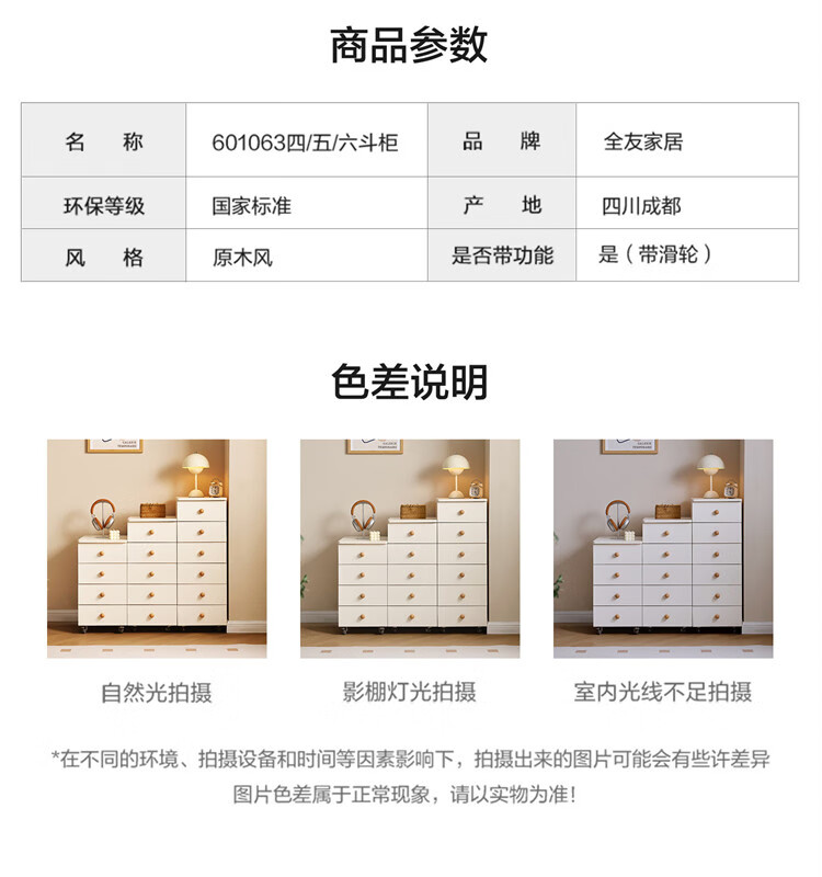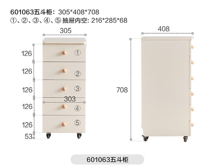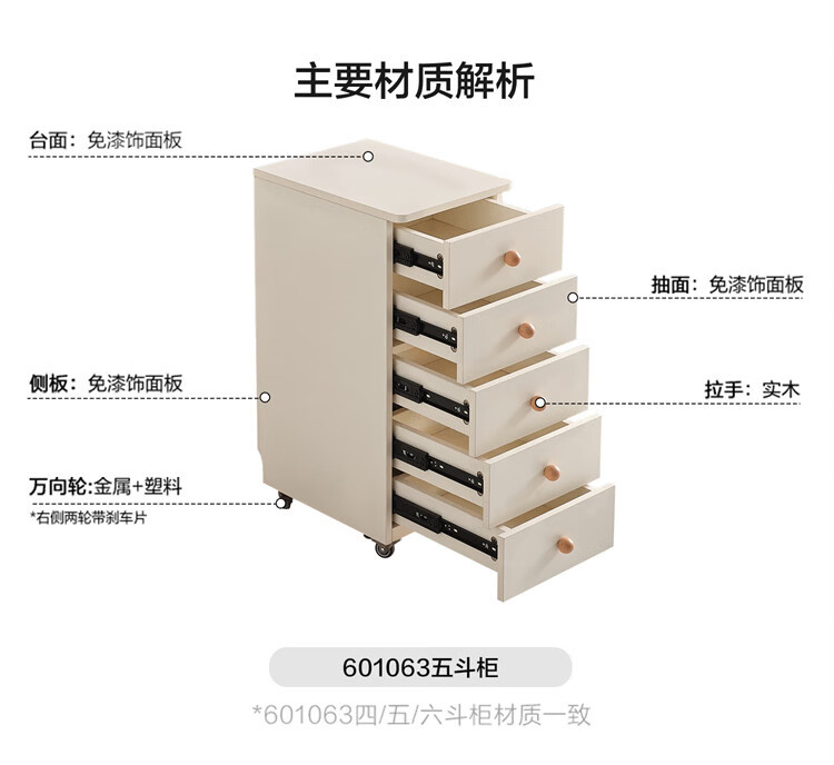 全友家居现代简约风斗柜家用储物收纳家具餐厅边柜床头柜置物小柜子 【奶白】五斗柜