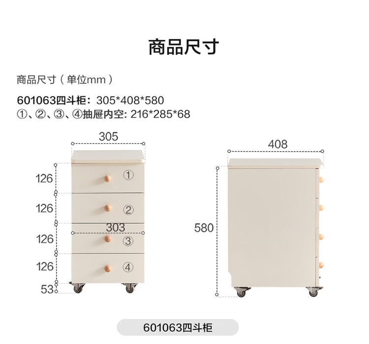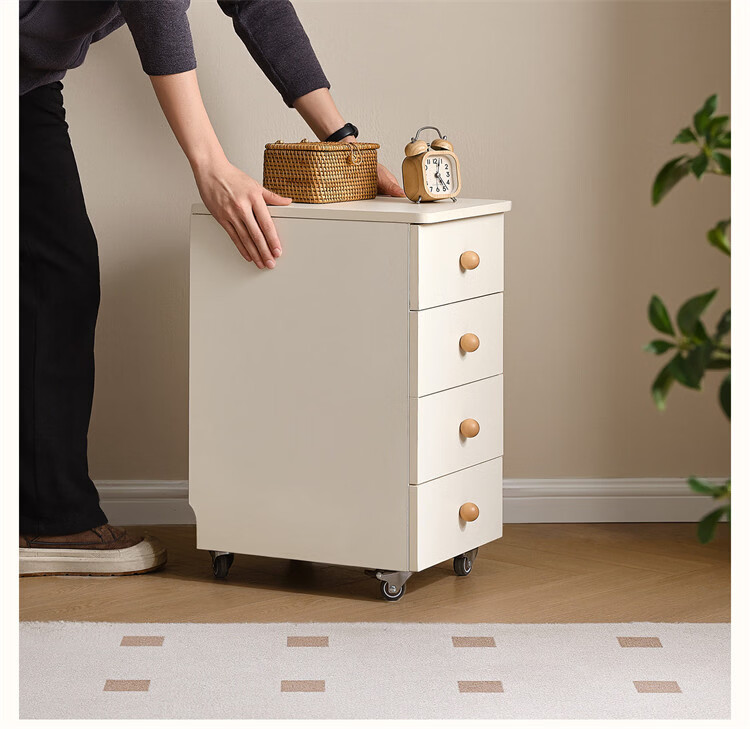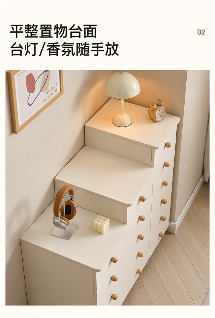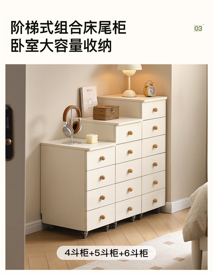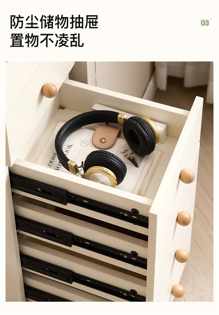 全友家居奶油风法式复古斗柜家用卧室储物收纳柜床尾柜客厅沙发边柜 【米白】储物柜