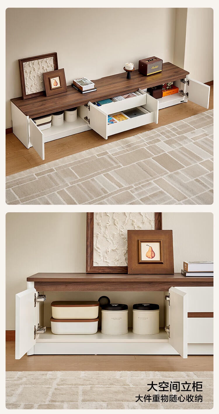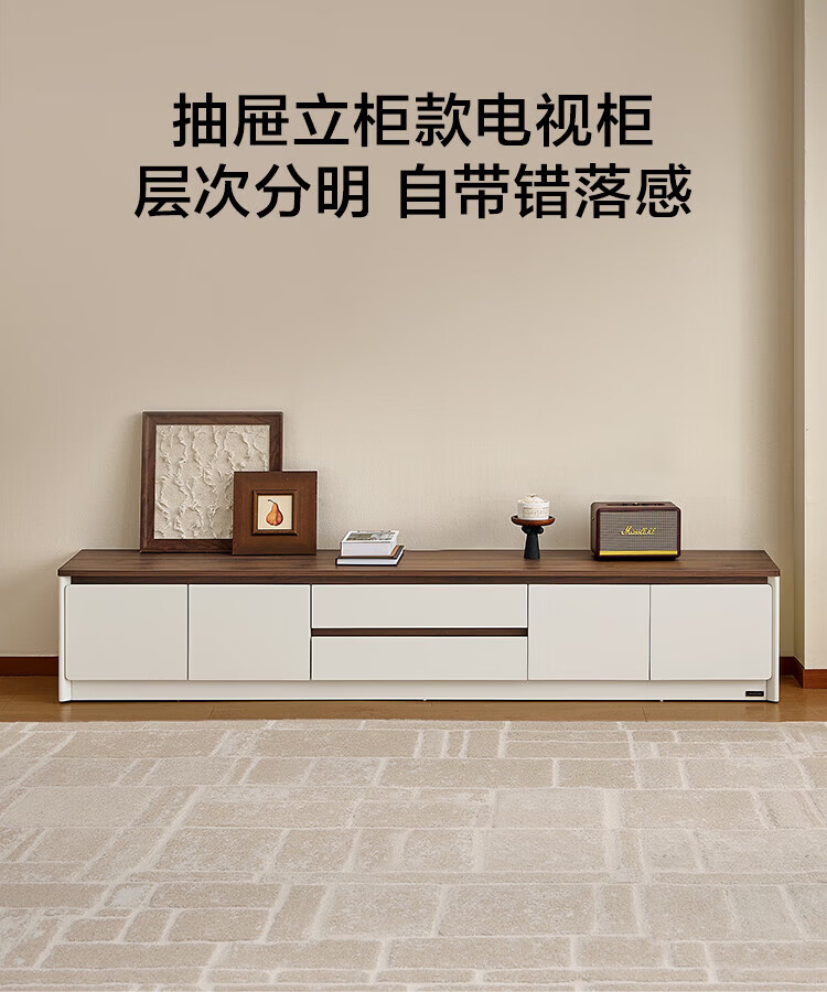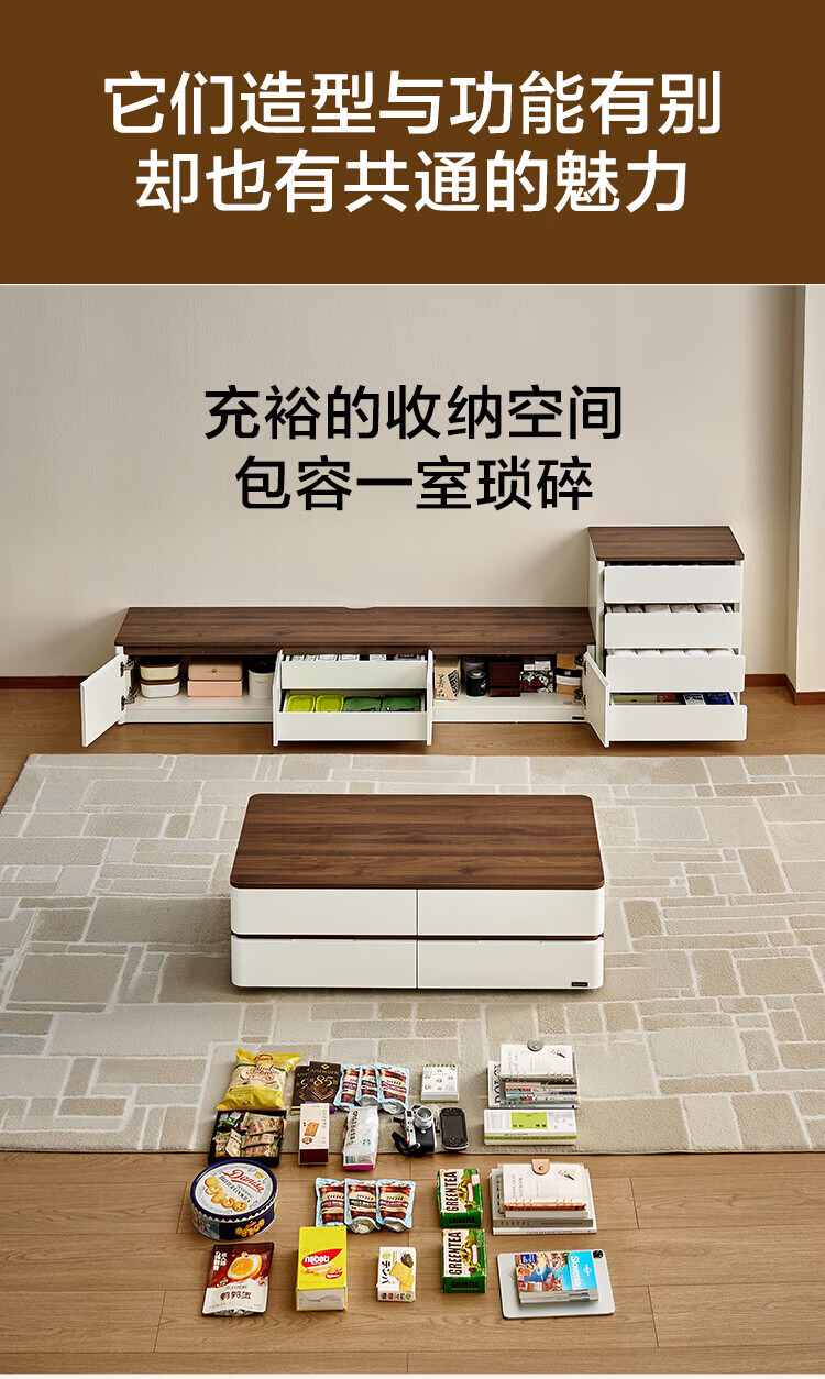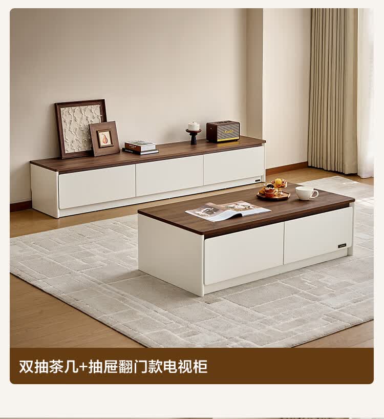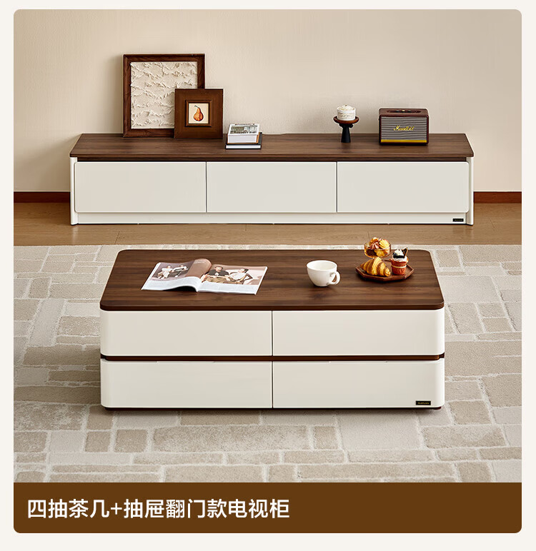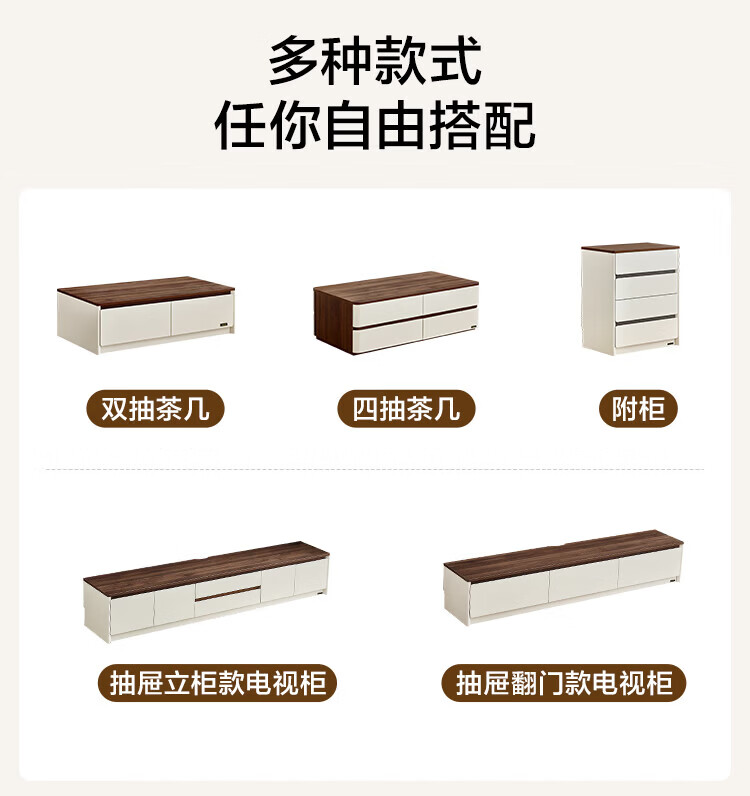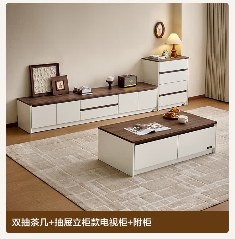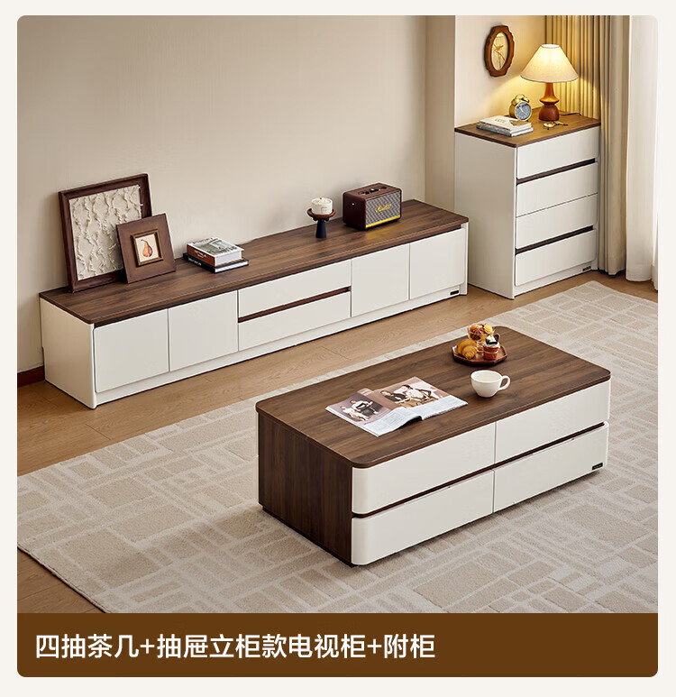 全友家居现代简约风茶几电视柜组合套装家用客厅2026新款收纳储物家具 抽屉立柜款电视柜+附柜+双抽茶几