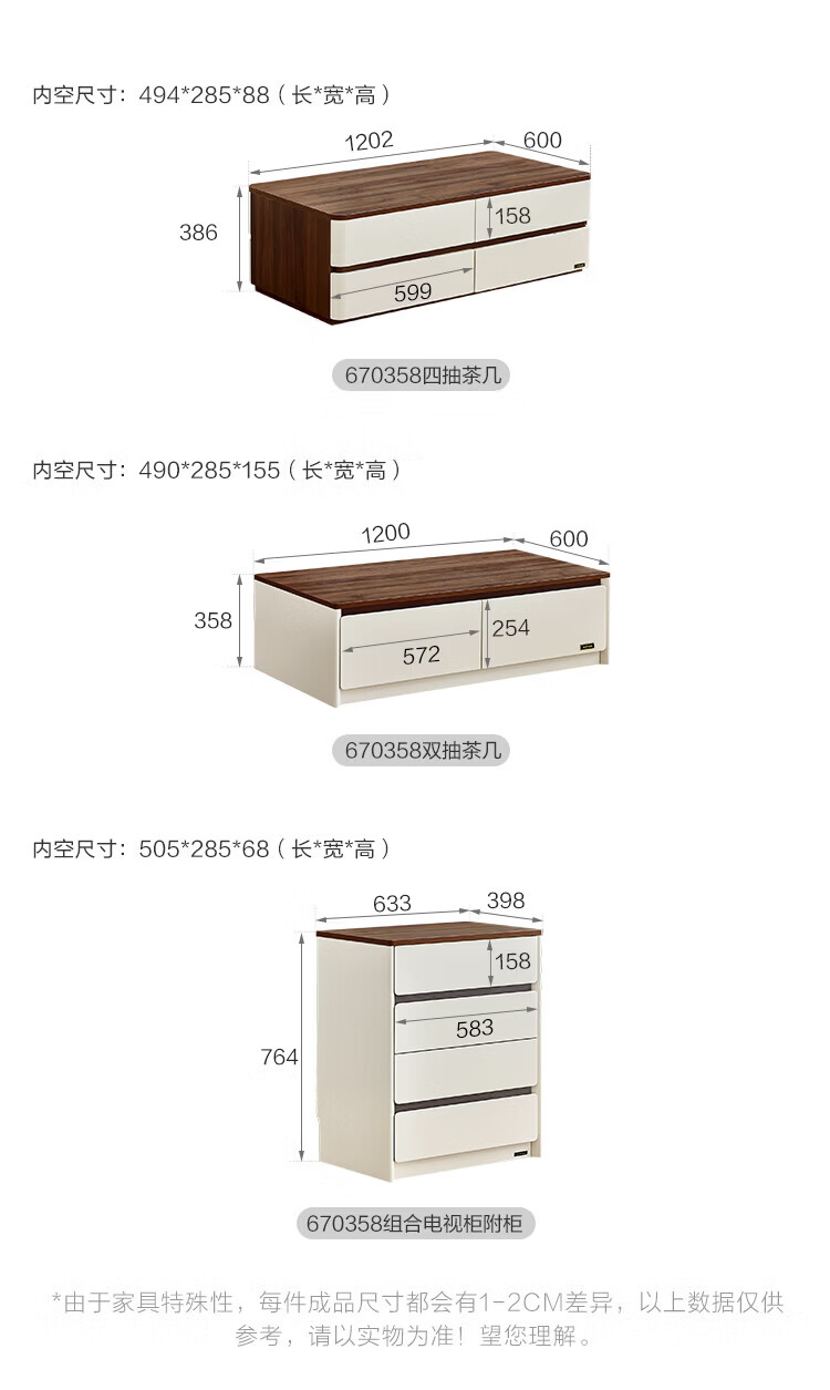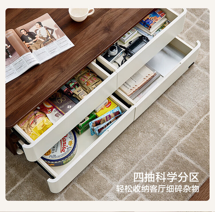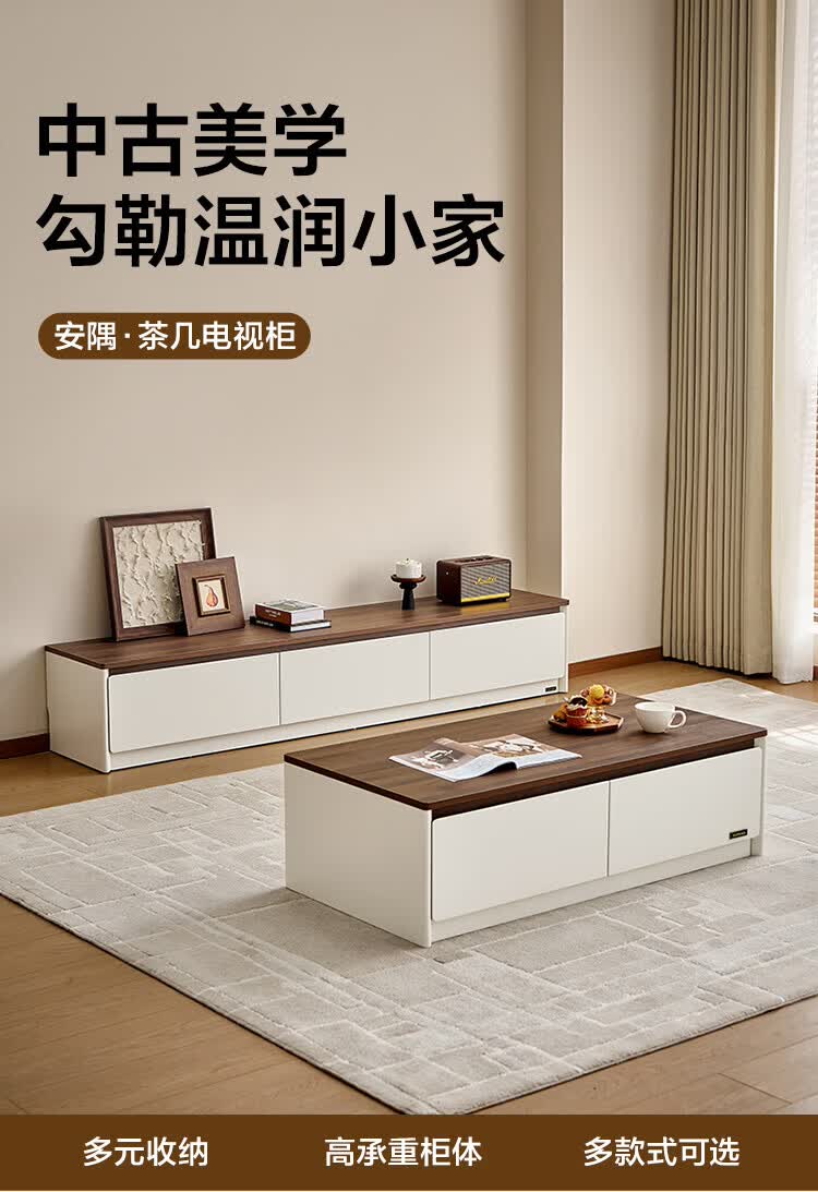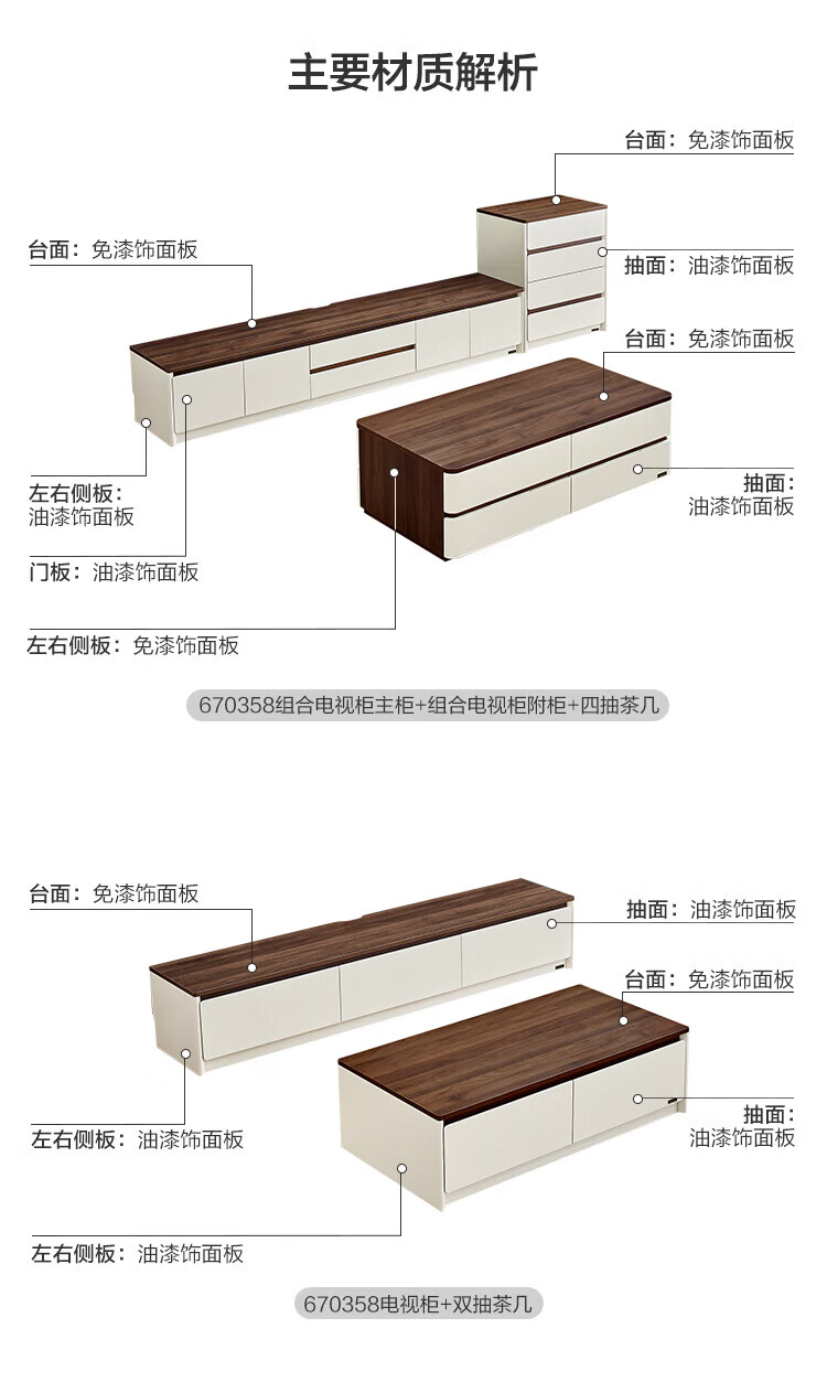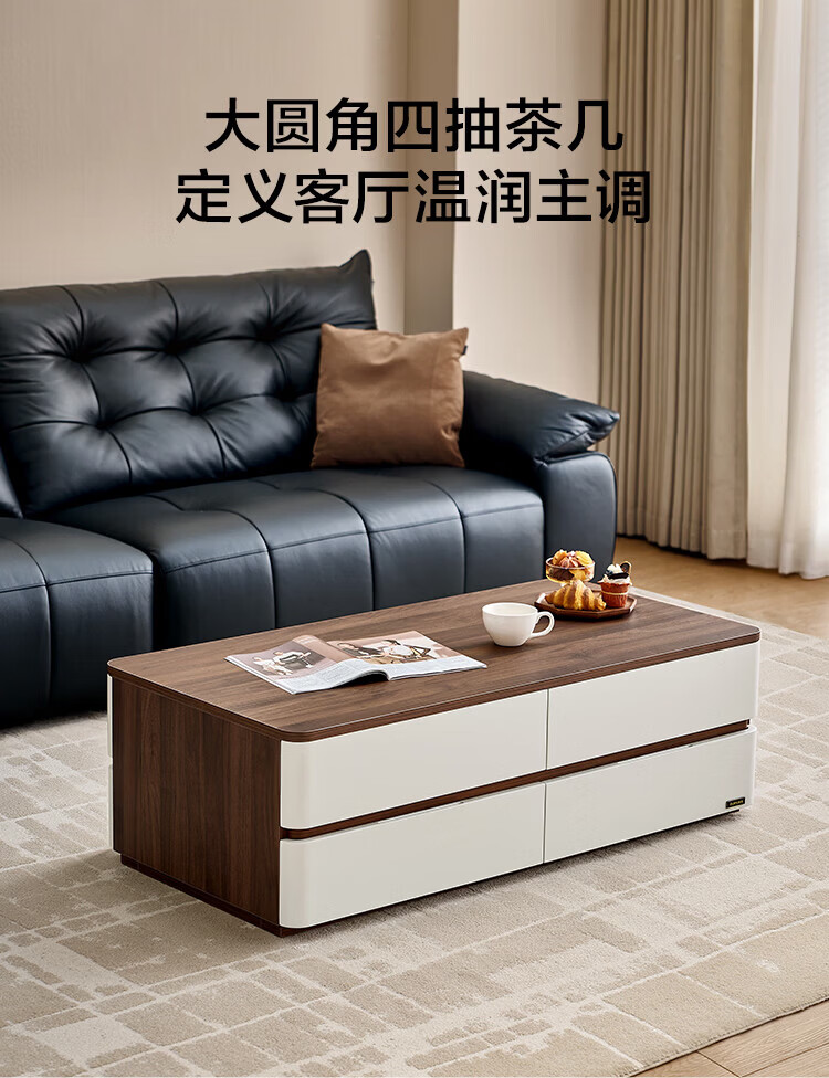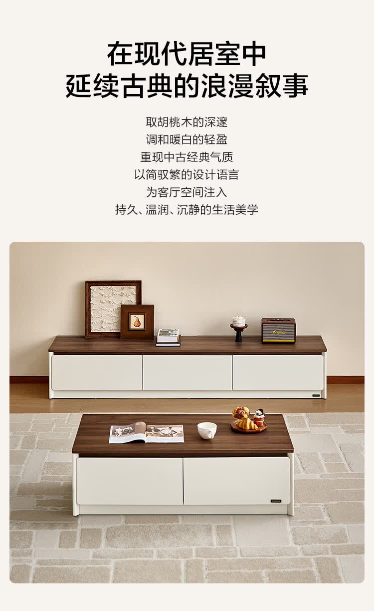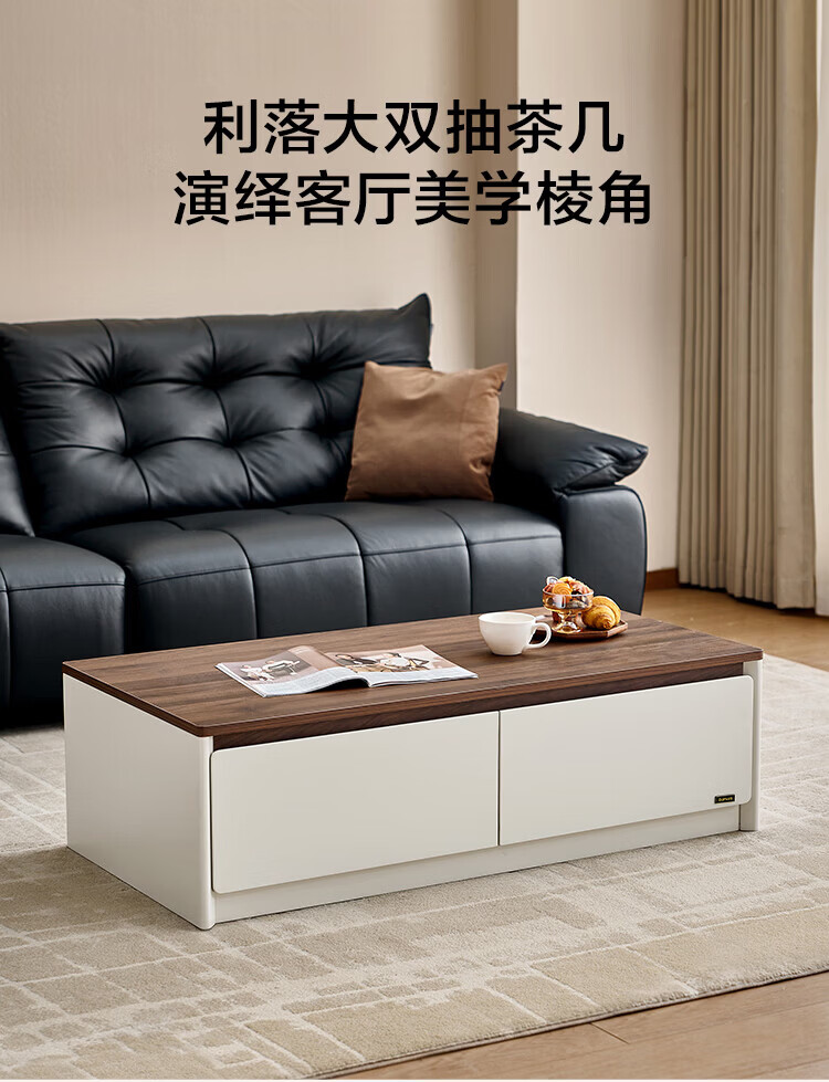全友家居现代简约风茶几电视柜组合套装家用客厅2026新款收纳储物家具 抽屉立柜款电视柜+附柜+双抽茶几