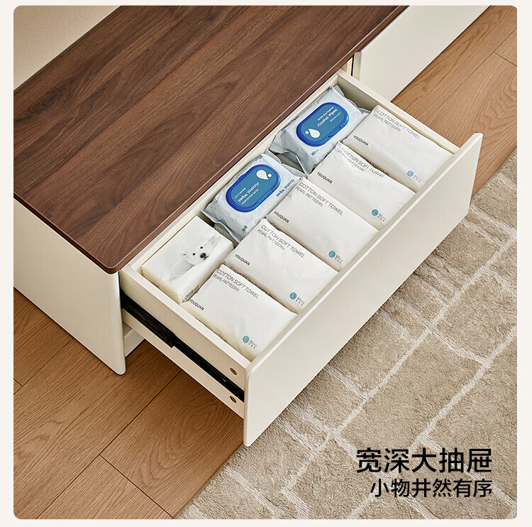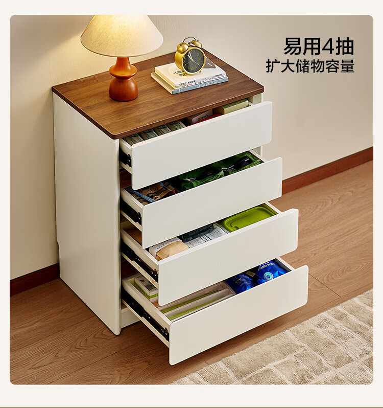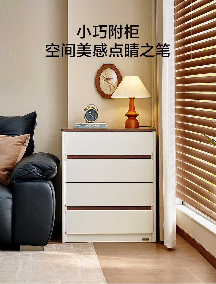 全友家居奶油风法式复古斗柜家用卧室储物收纳柜床尾柜客厅沙发边柜 【米白】储物柜