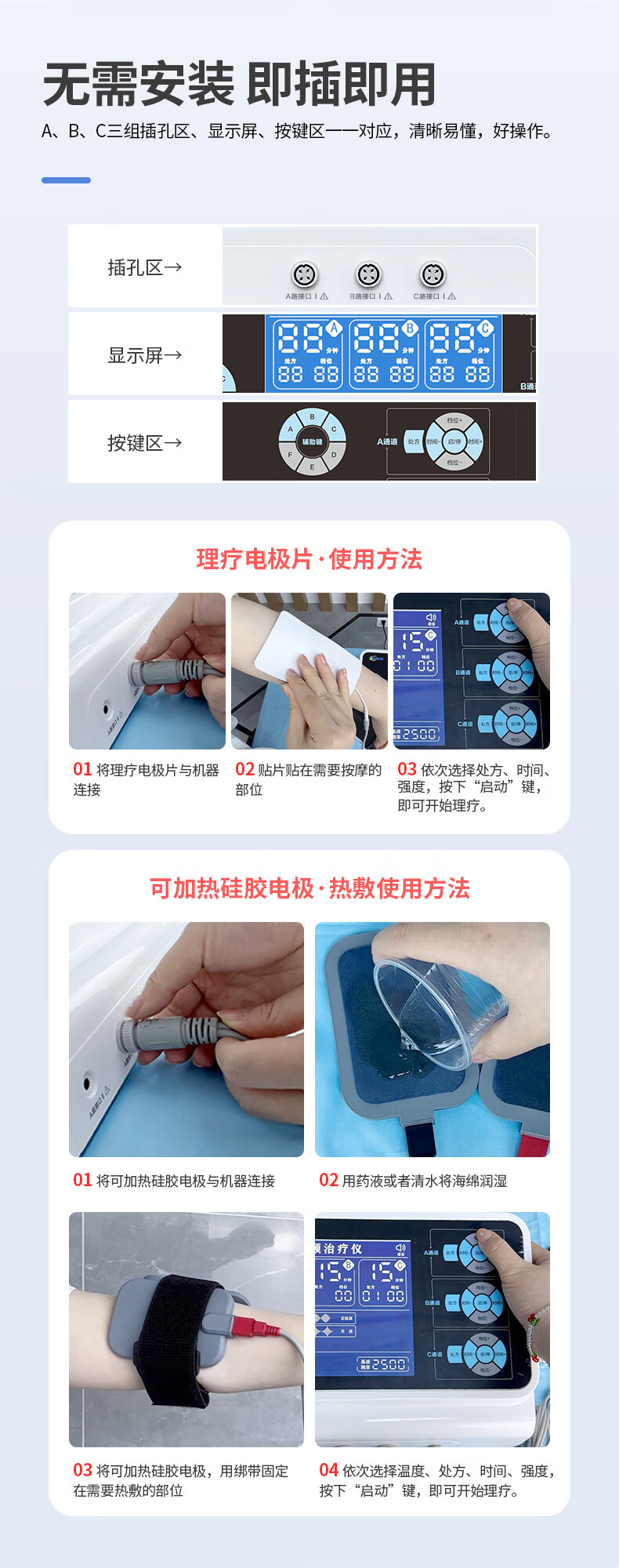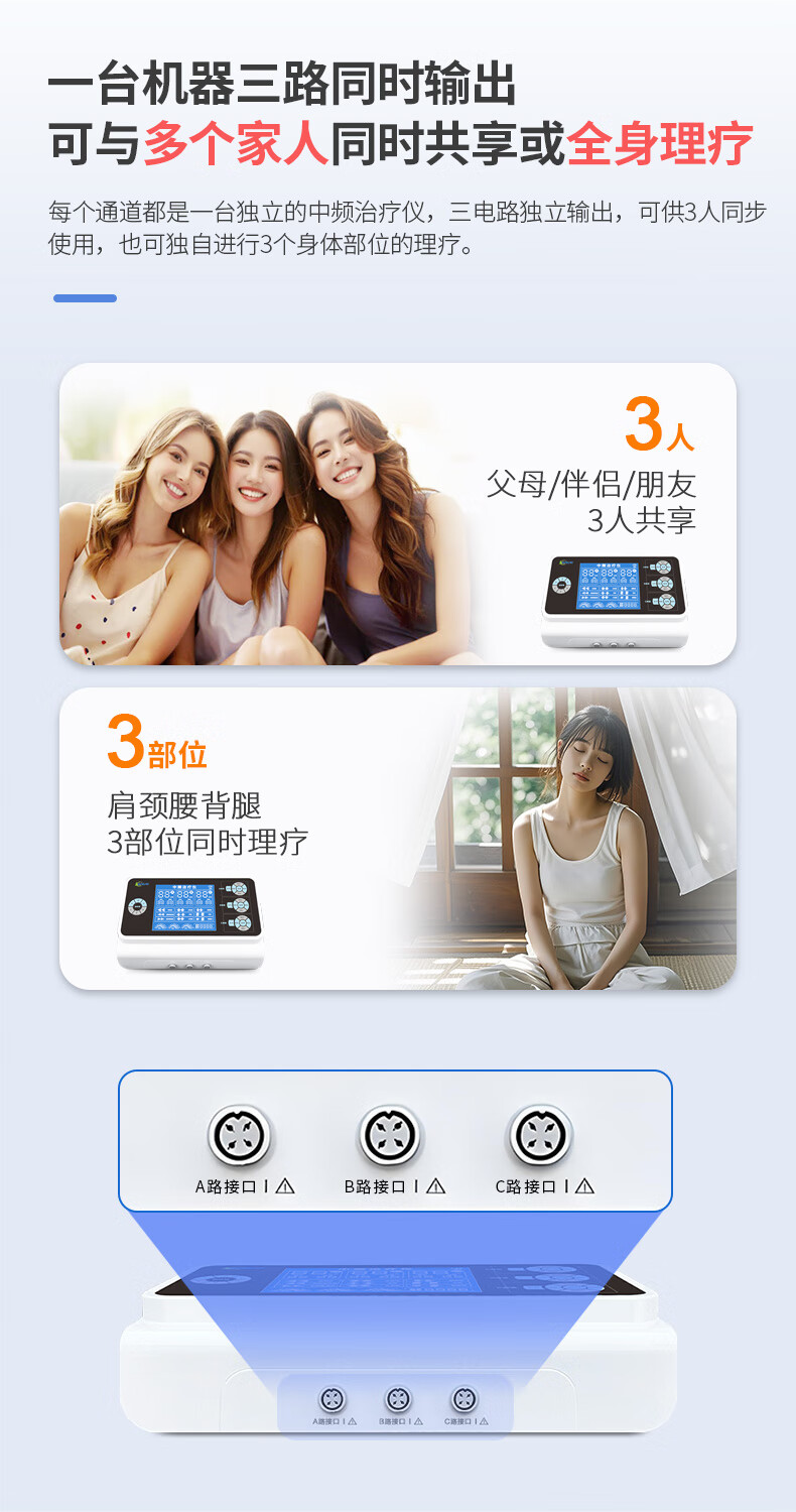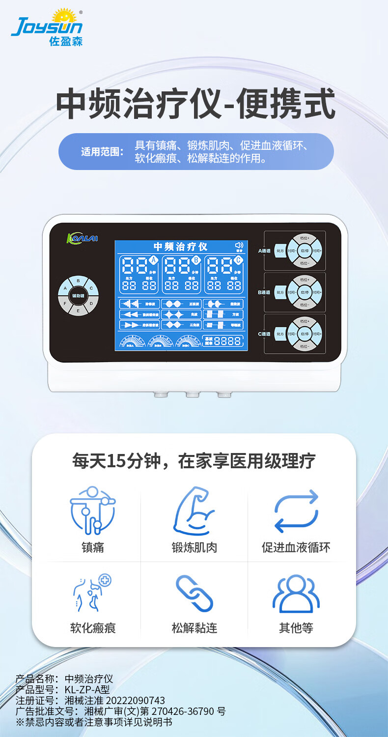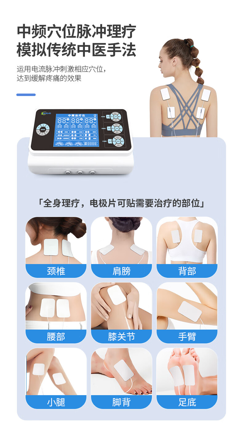 佐盈森电脑中频脉冲电治疗仪医院电疗仪电极贴片家用镇痛煅练肌肉按摩仪 三通道透热医用款橡胶电极片+自粘贴片(哪疼贴哪)
