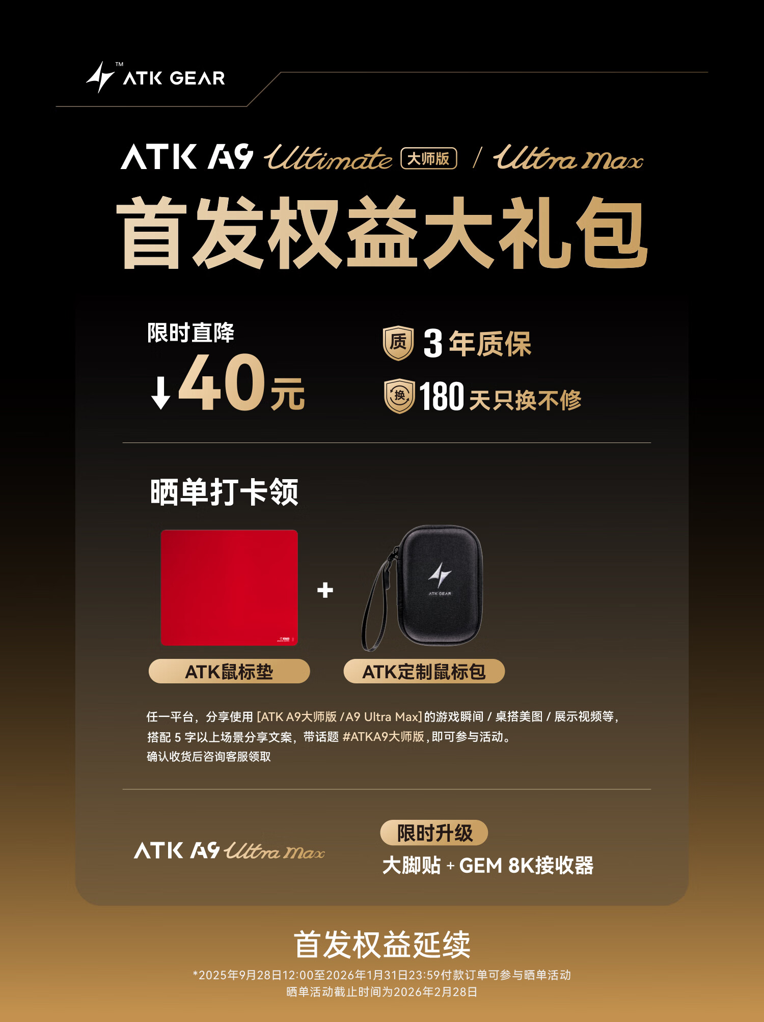ATK蜻蜓A9无线鼠标电竞游戏办公鼠标 有线/2.4G双模连接轻量化对称极简工学 A9UltraMax黑色