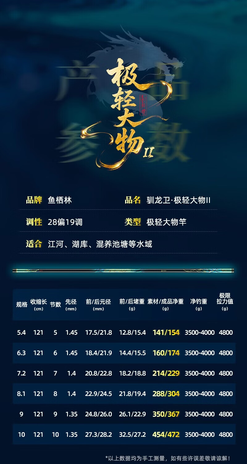鱼栖林极轻大物二代鱼竿台钓竿新款野钓鱼竿大物竿手竿超硬超轻鲢鳙杆 7.2m 极轻大物二代