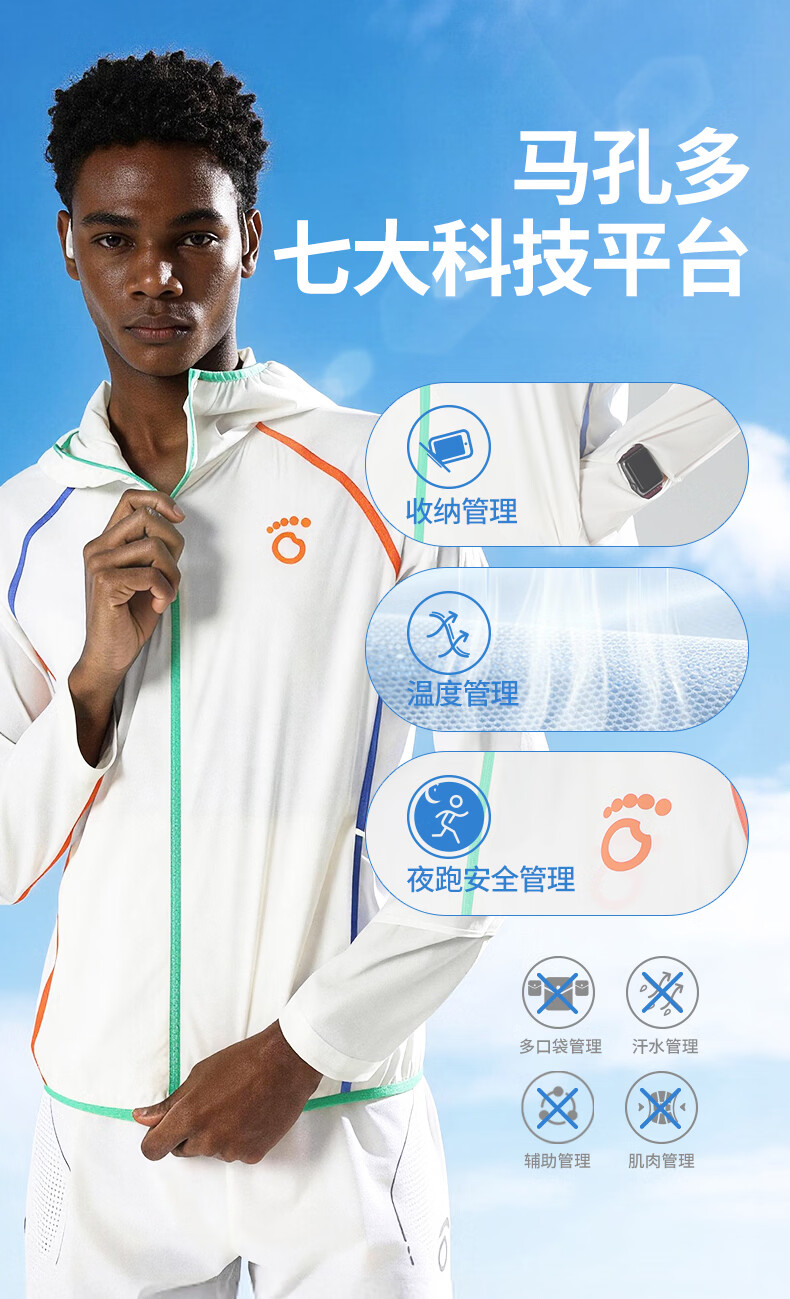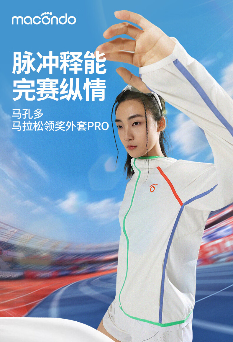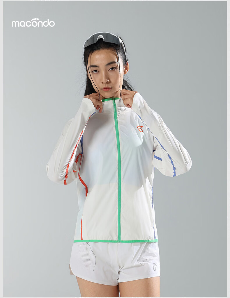 马孔多(macondo)马孔多 | 脉冲PRO 专业跑步外套马拉松领奖外套透气遮热防晒连帽 白色 女款 L 【男125-140/女115-130斤】