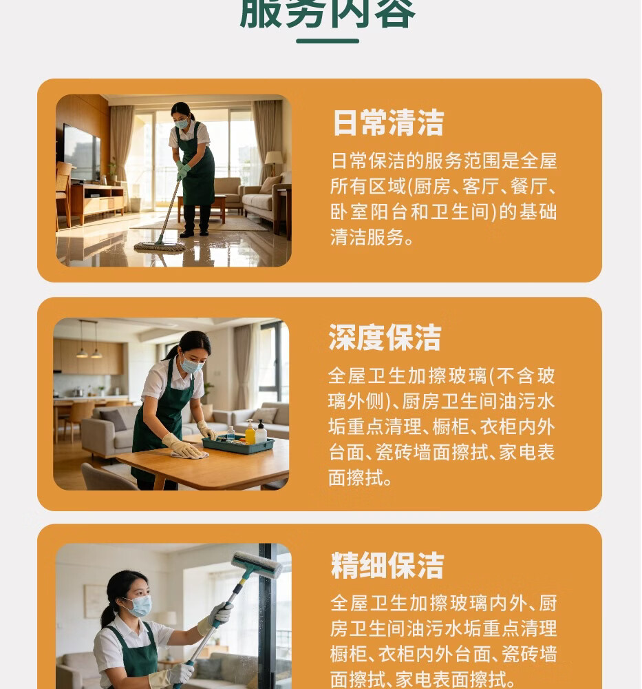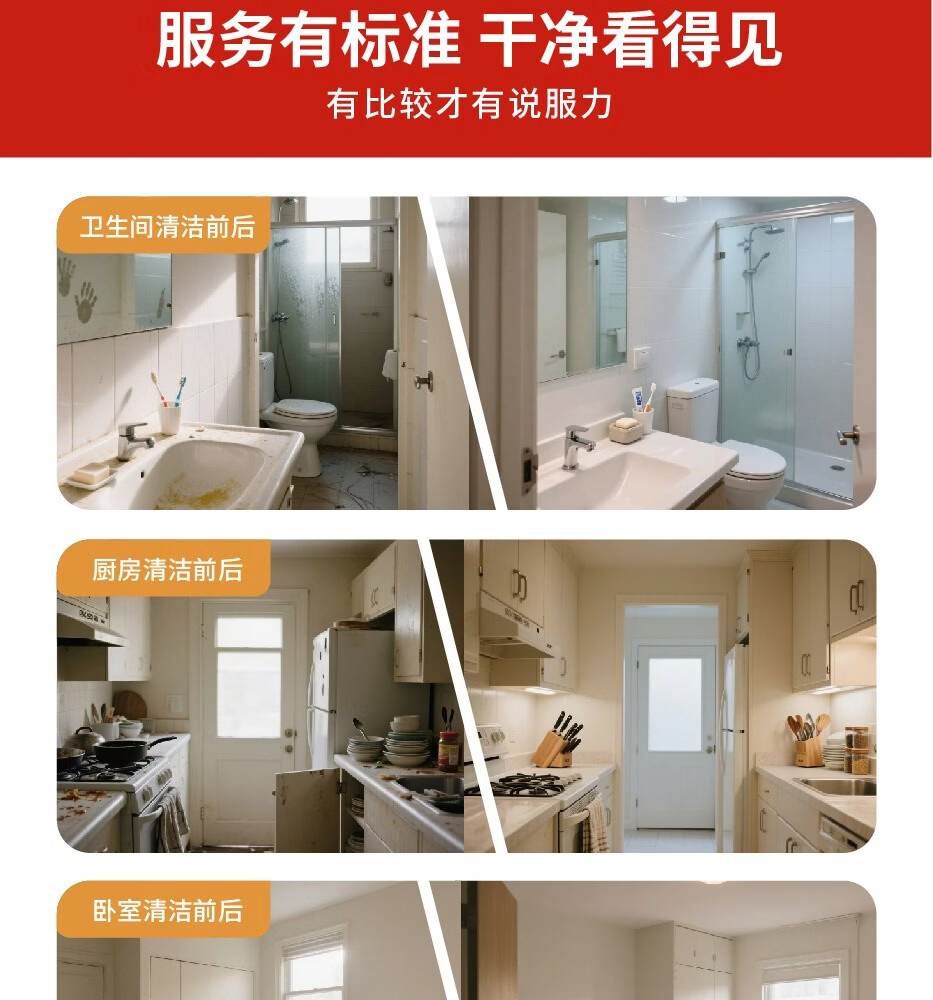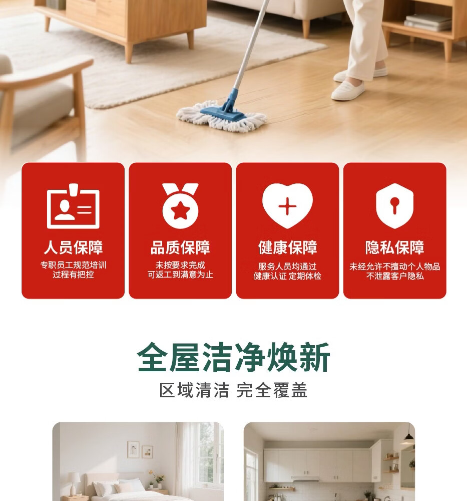 快速上门同城家政保洁服务 深度保洁 开荒保洁 全屋清洁 厨房清洁卫生间除垢 精细擦窗 自营保障 不满意重做 日常保洁4小时