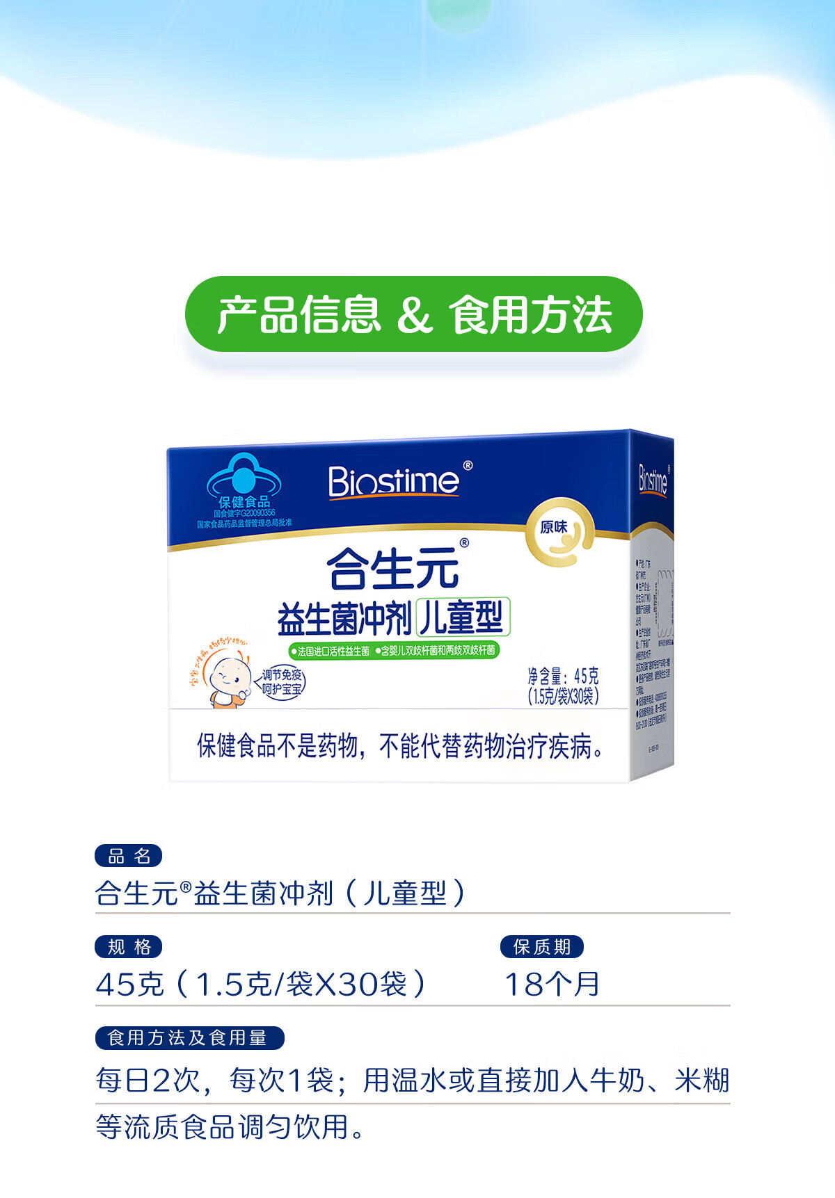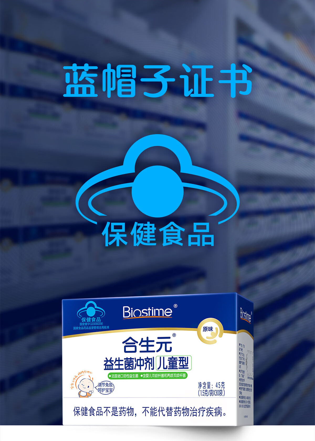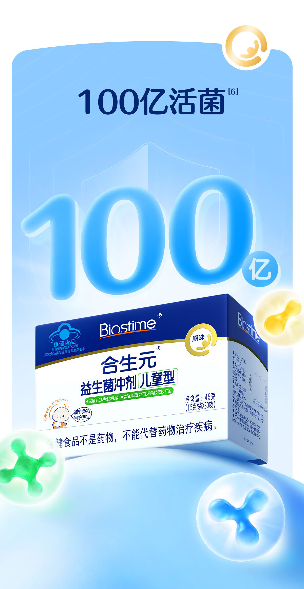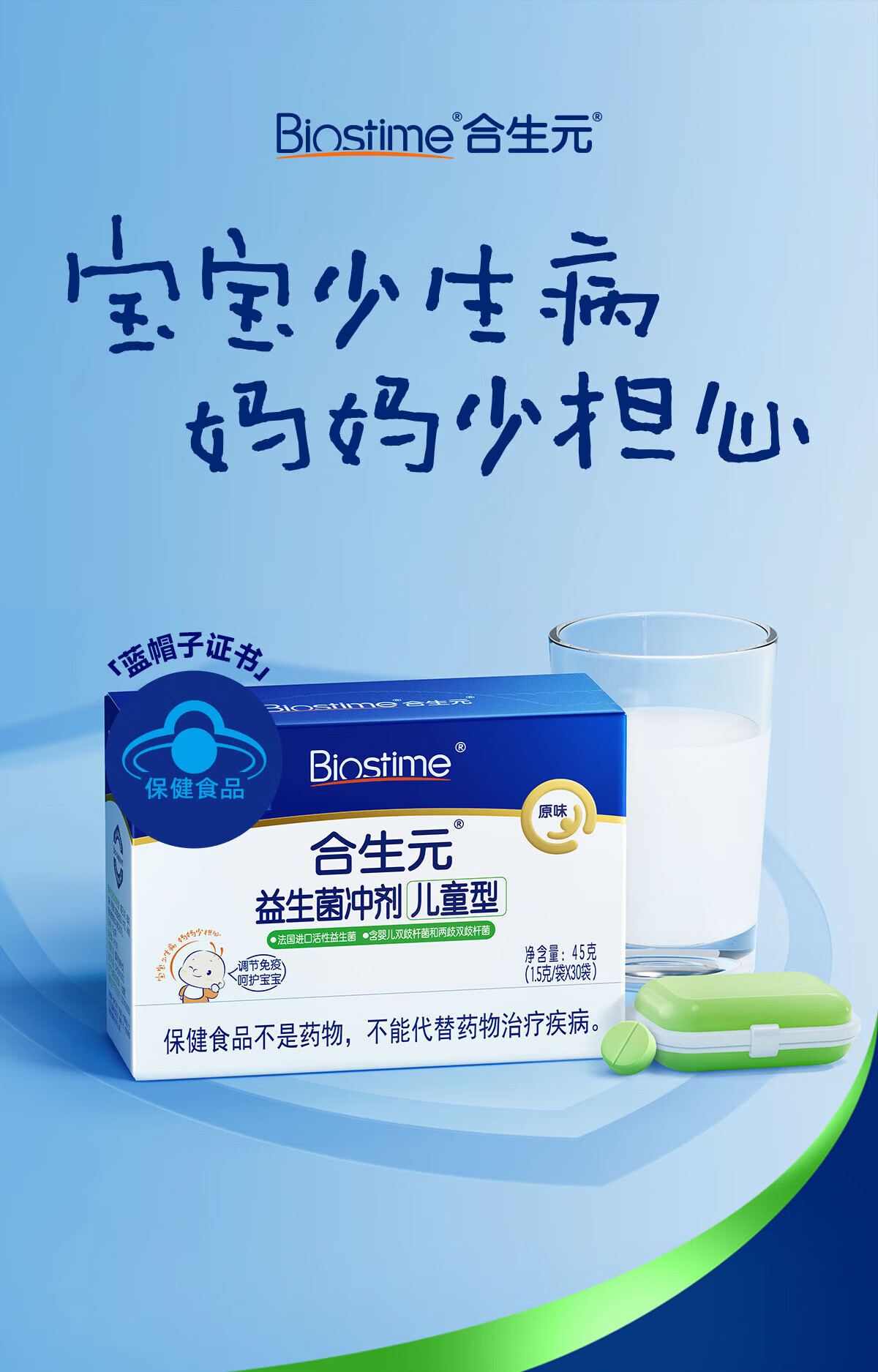 合生元(BIOSTIME)益生菌婴幼儿儿童 原味小蓝帽 调理肠胃脾胃虚弱增强免疫力 【药房同款】原味 30袋*1盒