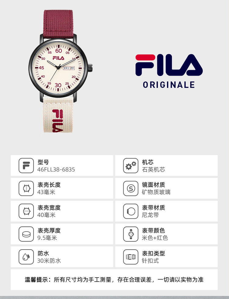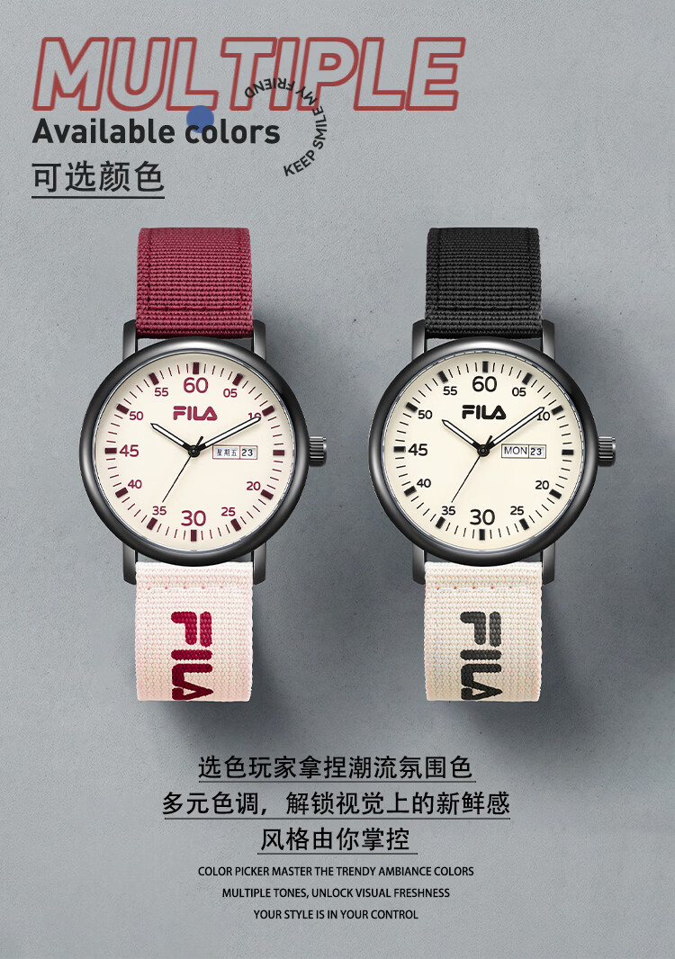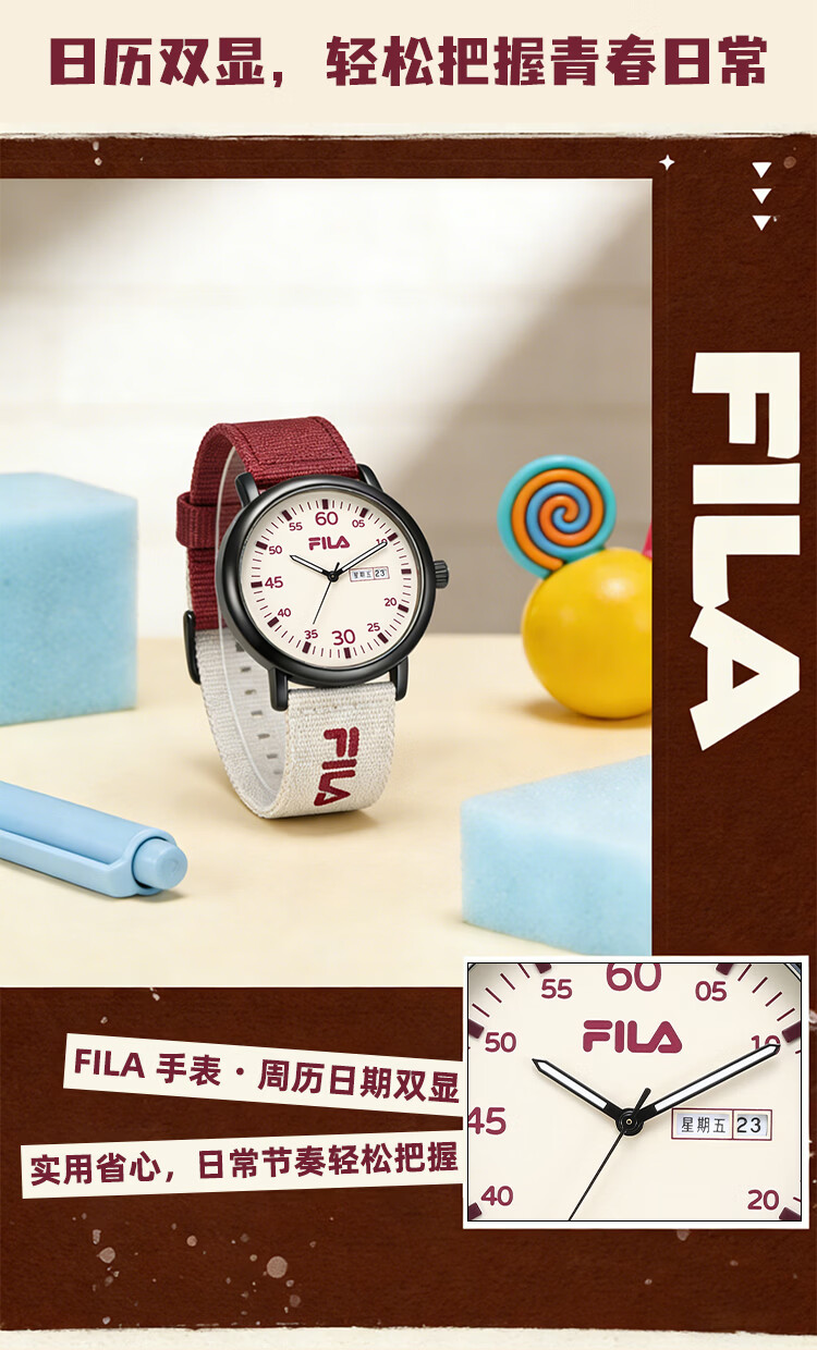斐乐(FILA)手表女款学生帆布带学生手表运动女孩初高中生考试手表6835-001