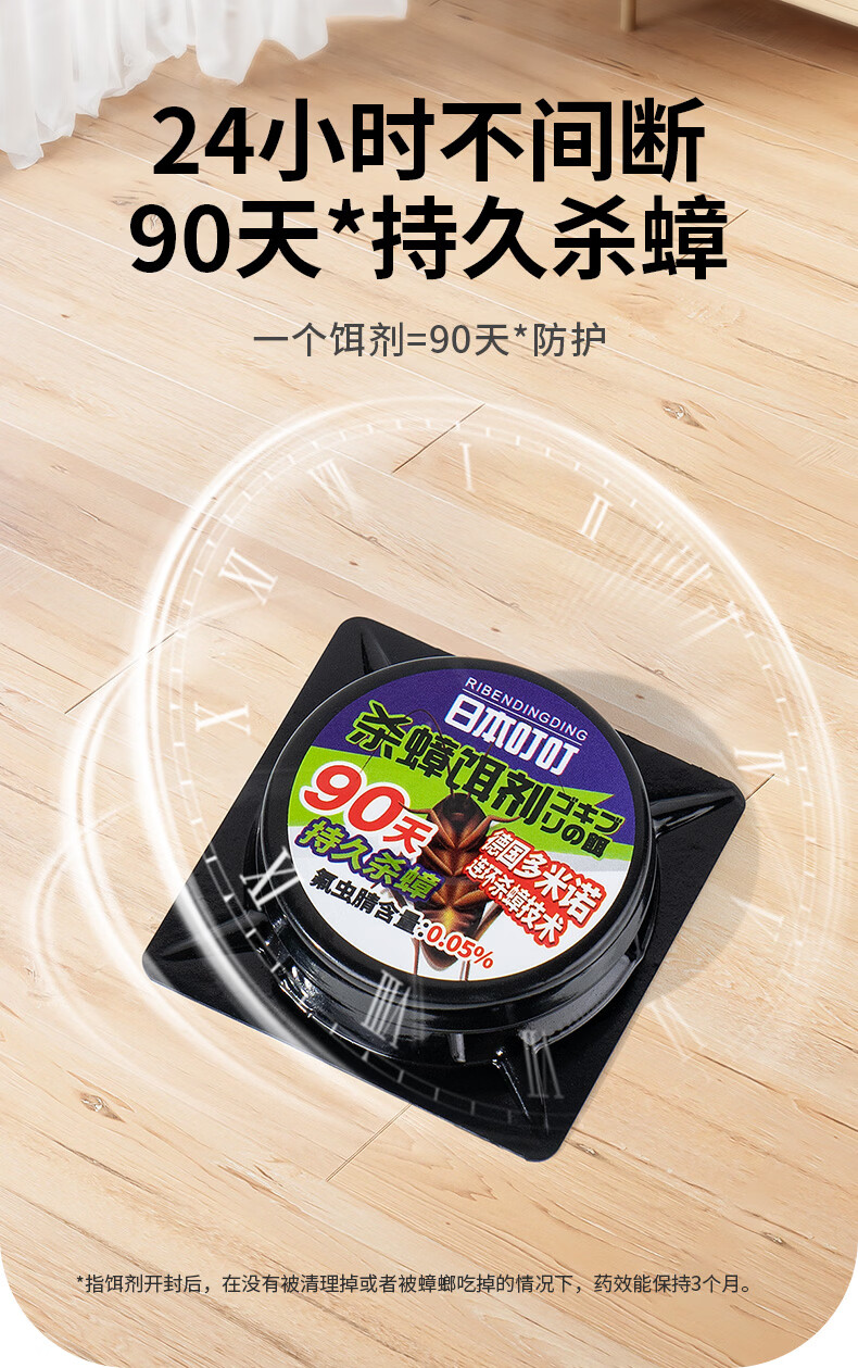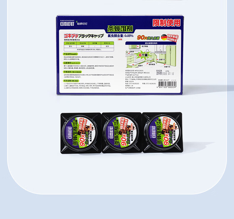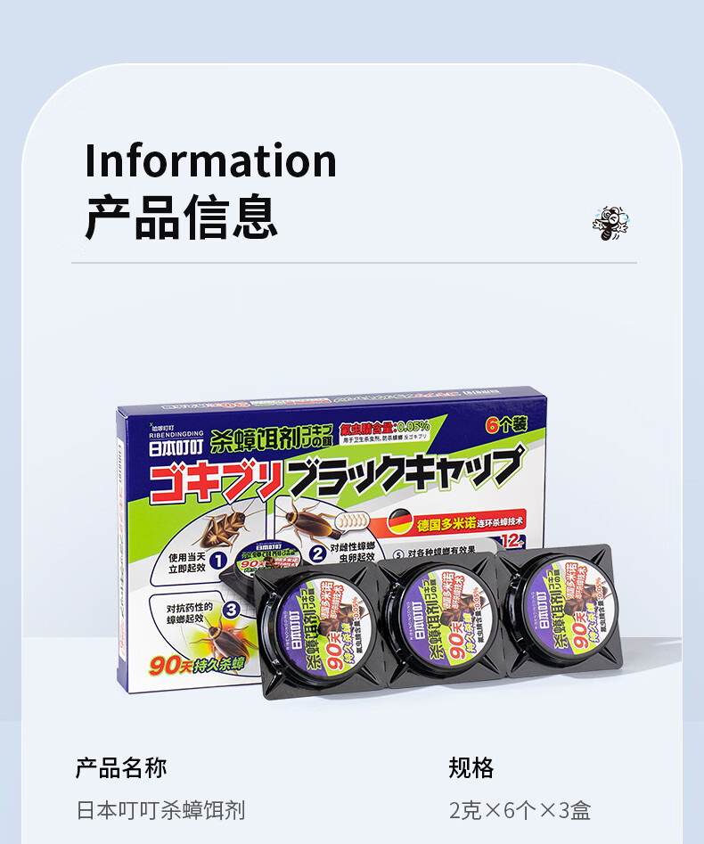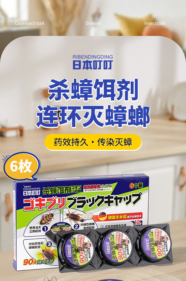 日本叮叮蟑螂药杀虫剂杀蟑胶饵 家用厨房卧室全窝端杀蟑螂诱饵神器6枚*3盒