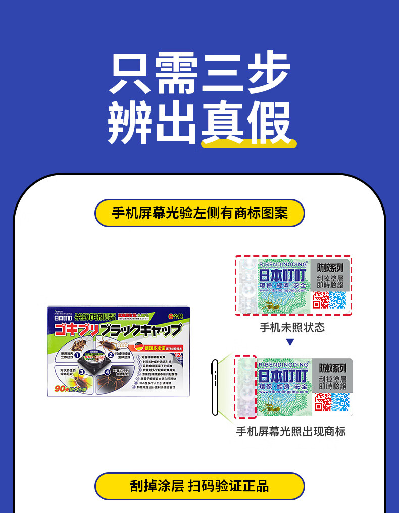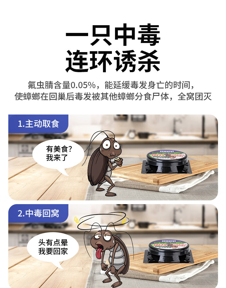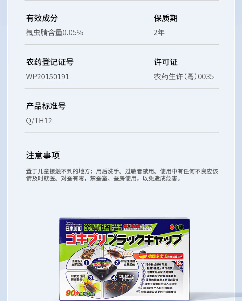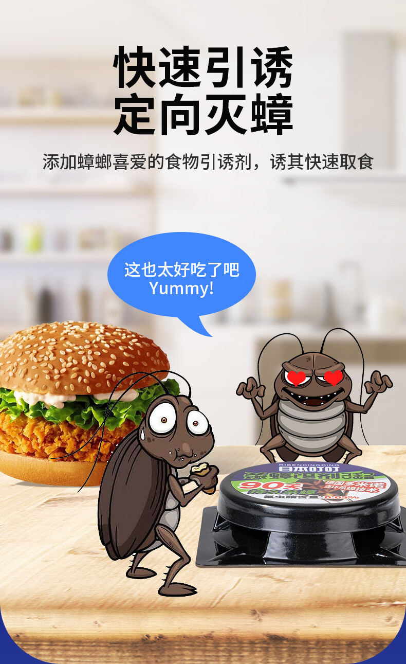 日本叮叮蟑螂药杀虫剂杀蟑胶饵 家用厨房卧室全窝端杀蟑螂诱饵神器6枚*3盒