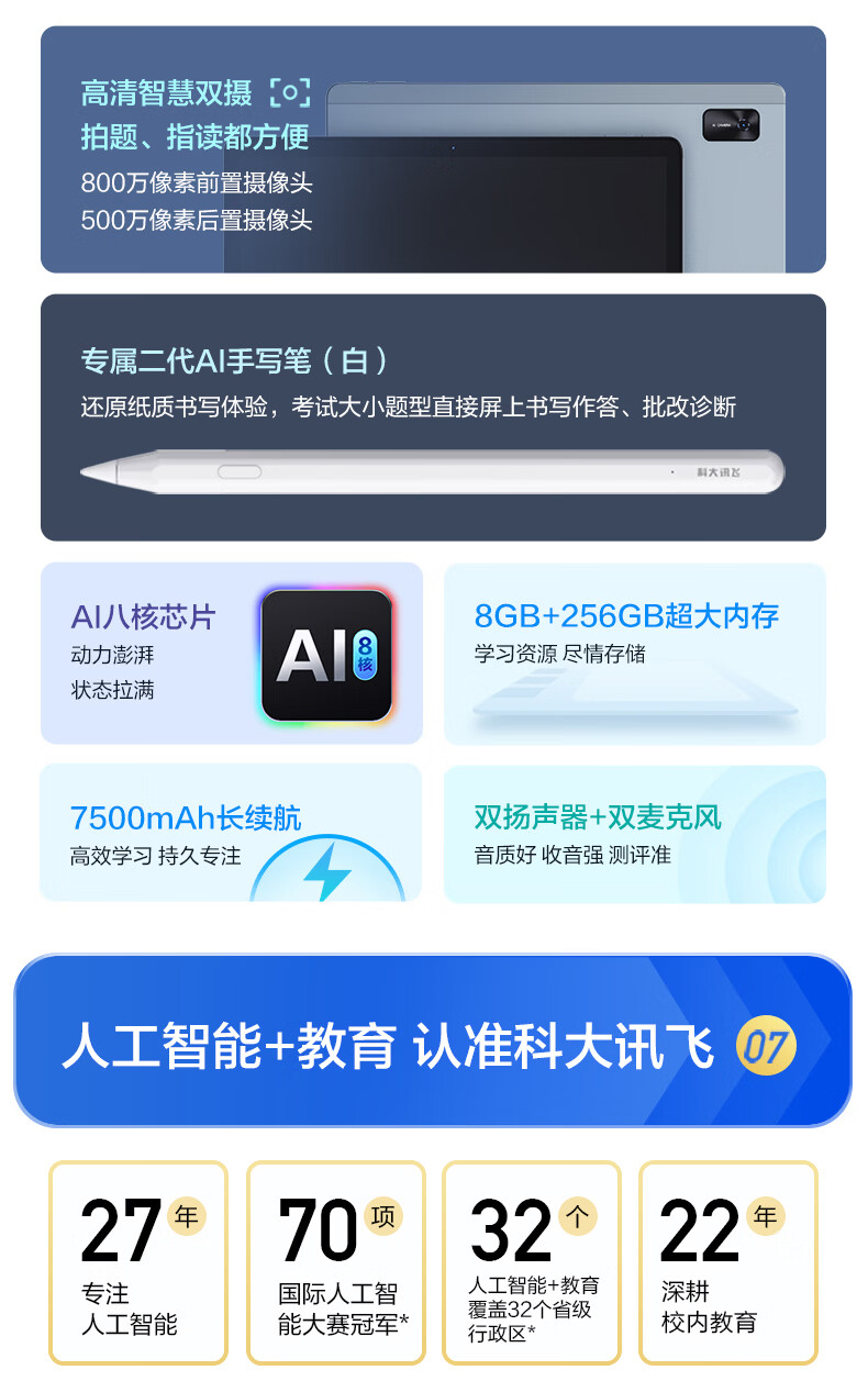 科大讯飞AI学习机S30 Turbo 8+256G【国补500元】AI 1对1精准学 护眼 中高考同源技术 KET口语模拟考