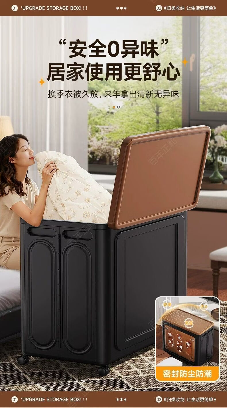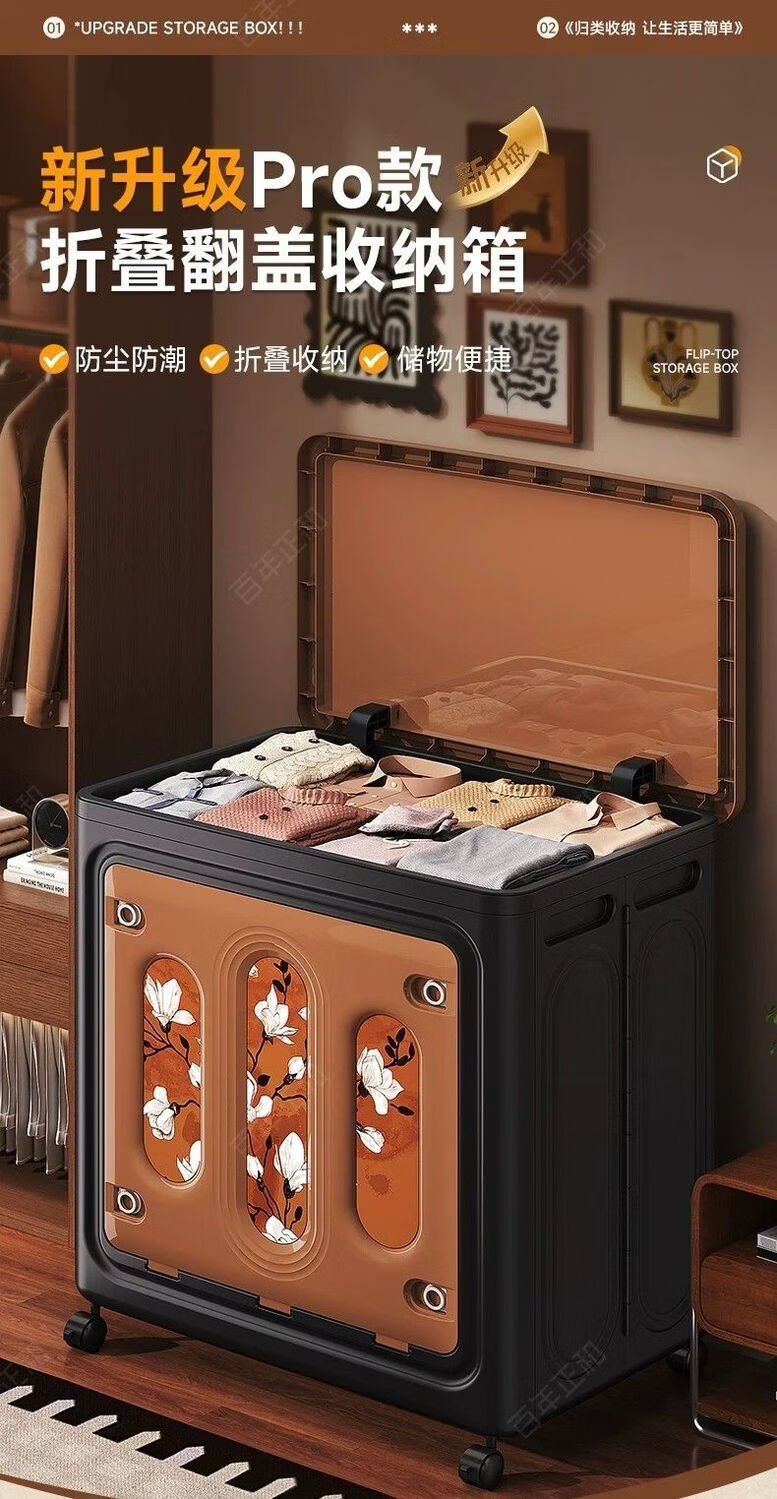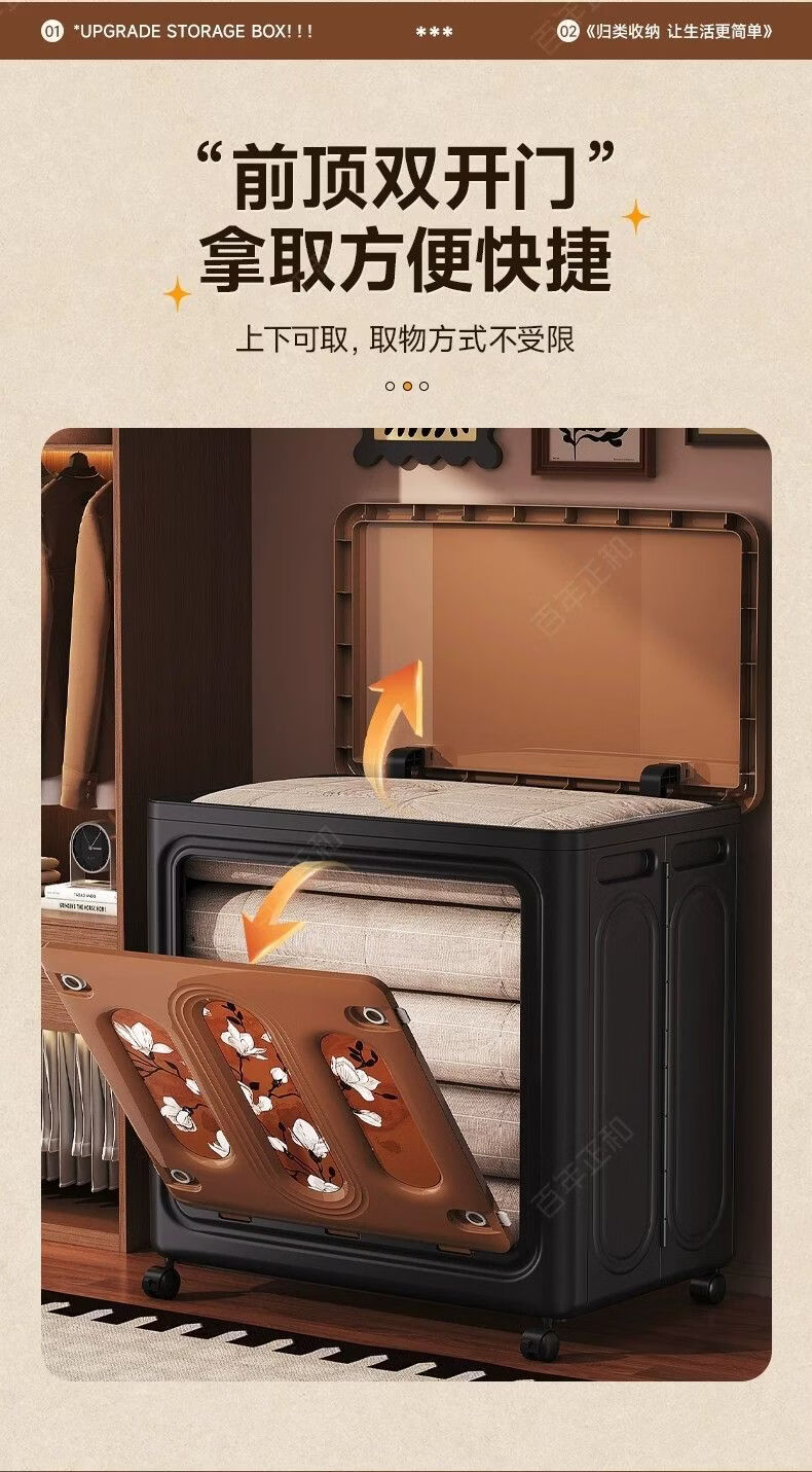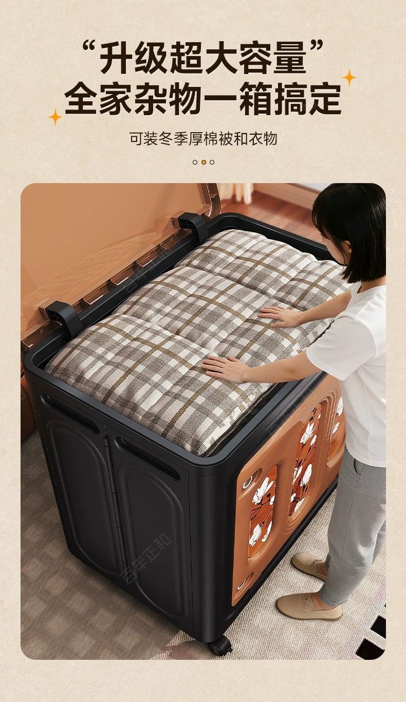 水天一方新中式收纳柜大容量翻盖收纳箱卧室客厅储物箱衣服衣物被子折叠箱 260L超大容量【加厚折叠式】