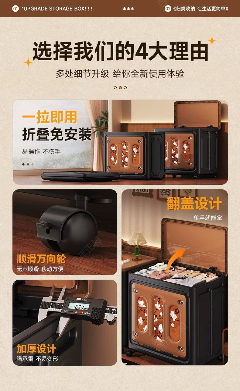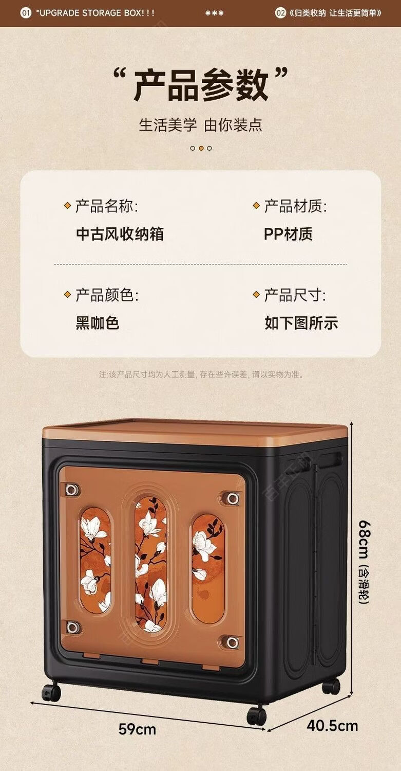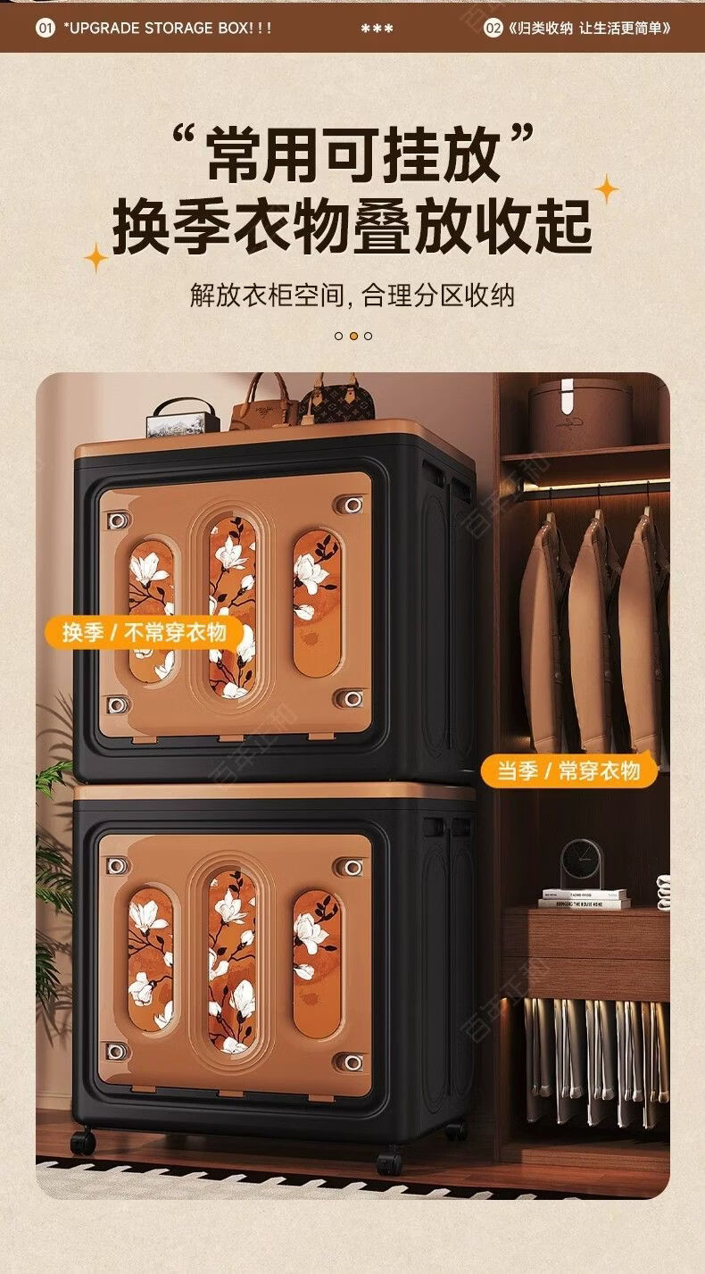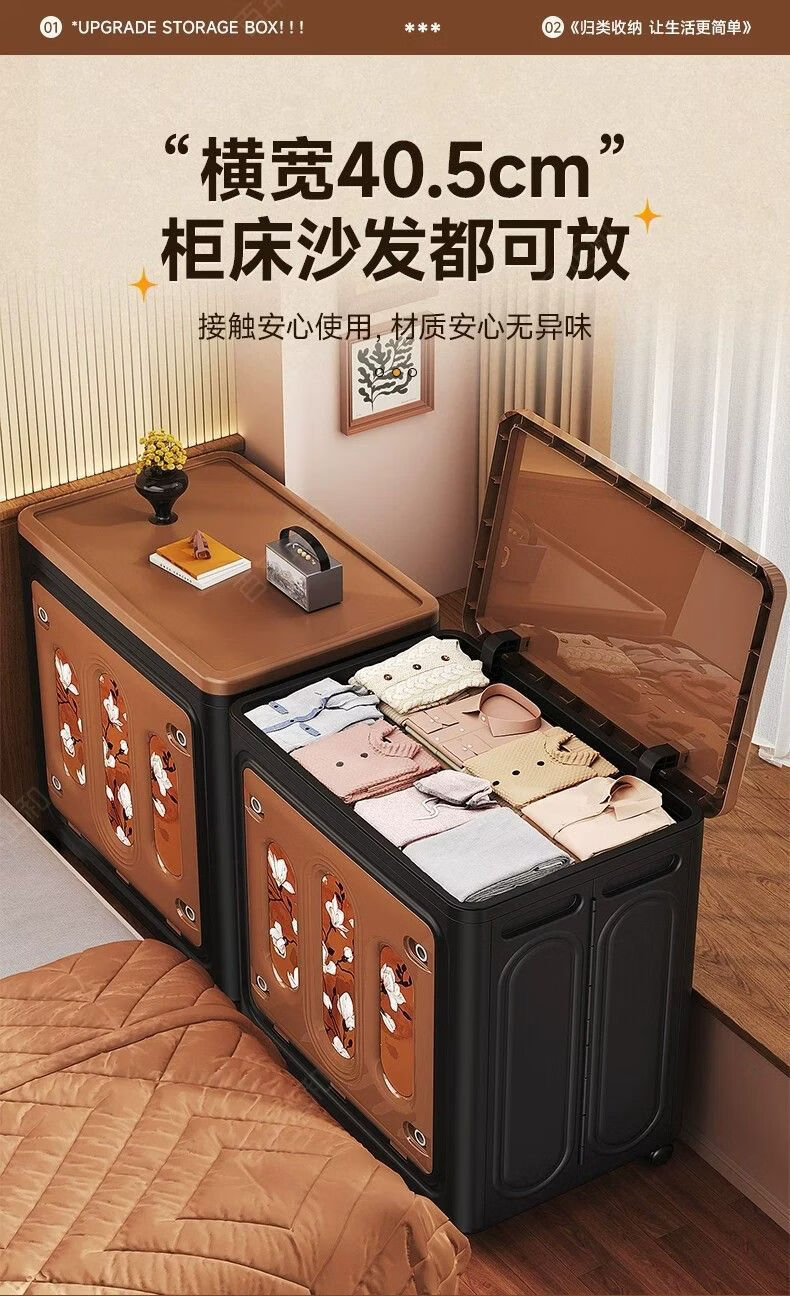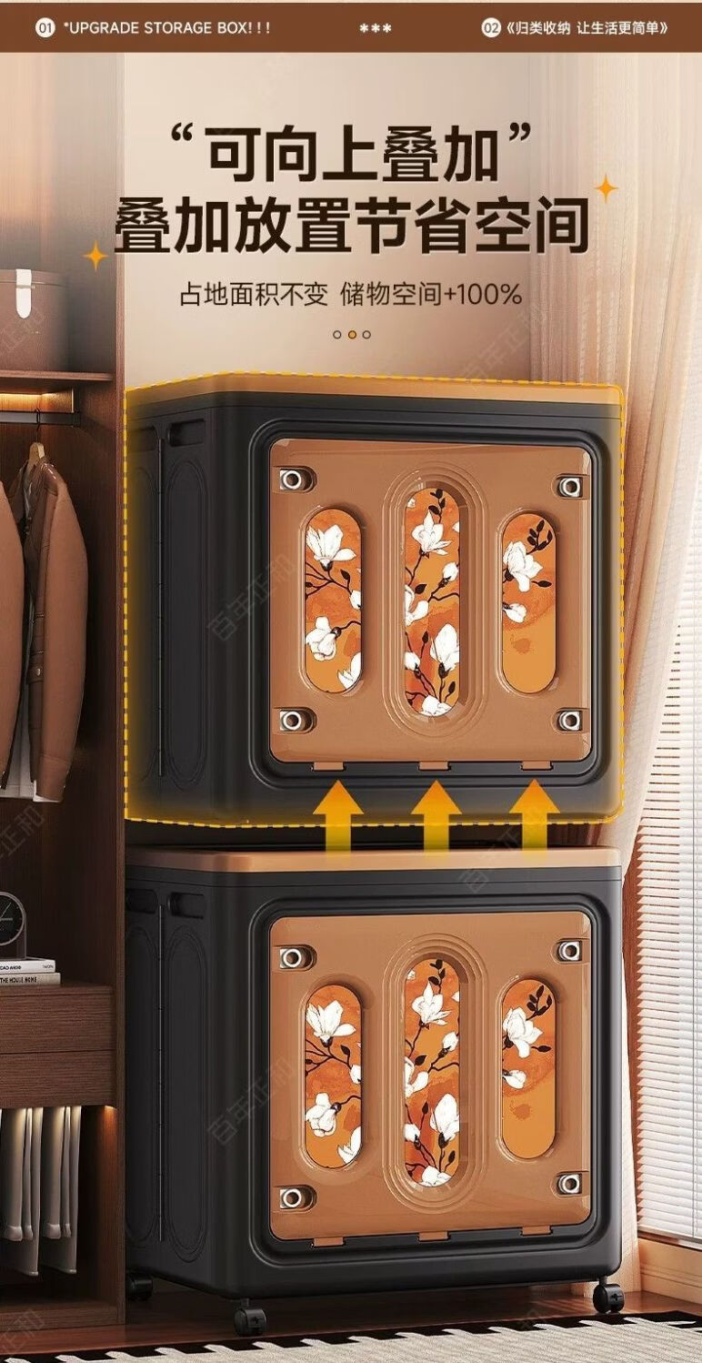 水天一方新中式收纳柜大容量翻盖收纳箱卧室客厅储物箱衣服衣物被子折叠箱 260L超大容量【加厚折叠式】