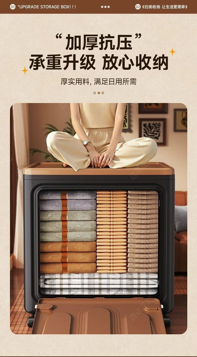 享乐屋可水洗百纳箱大号加厚衣服收纳箱布艺整理棉被大容量透明防霉防潮 6个装 新疆棉面料 5.0MM钢架 升级抗菌款 66升 50*40*33cm