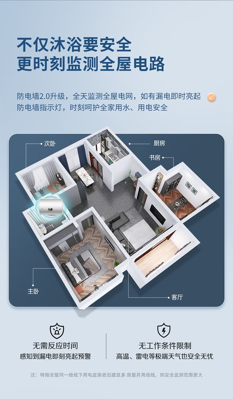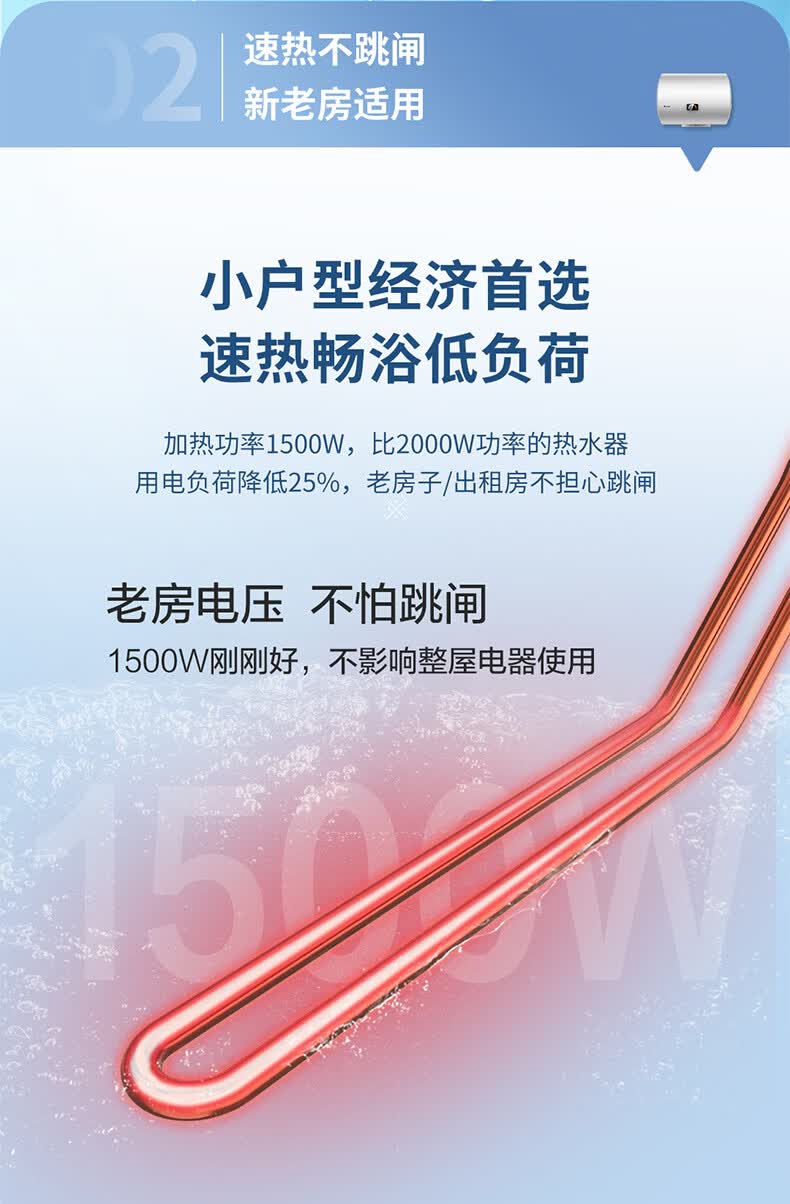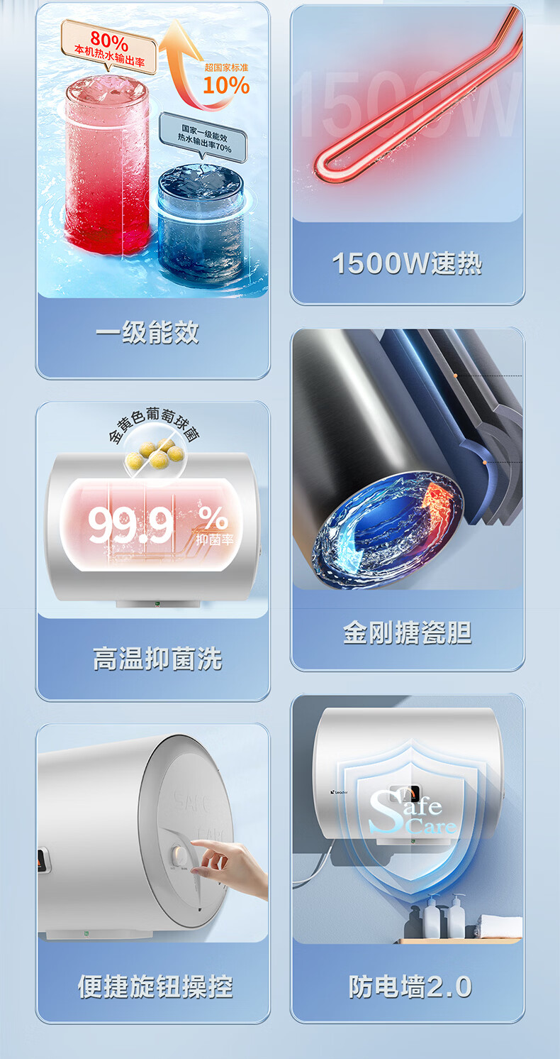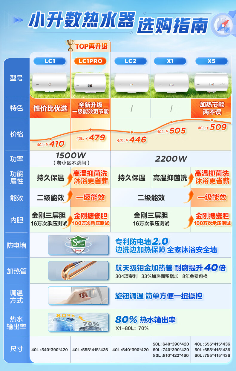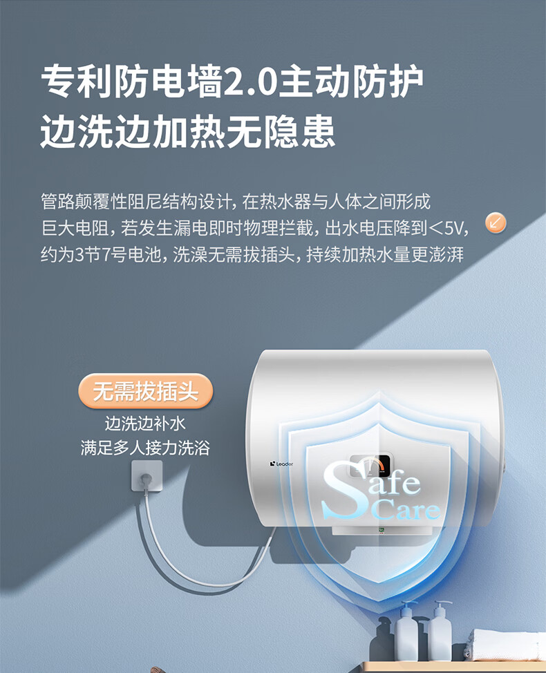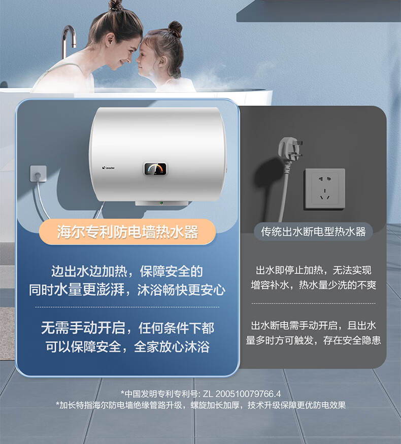 统帅(Leader)海尔出品热水器电热水器LC1/LC2家用40升储水式卫生间洗澡小户型租房首选专利防电墙上门安装 40L 1500W 小户型优选LC行业第一