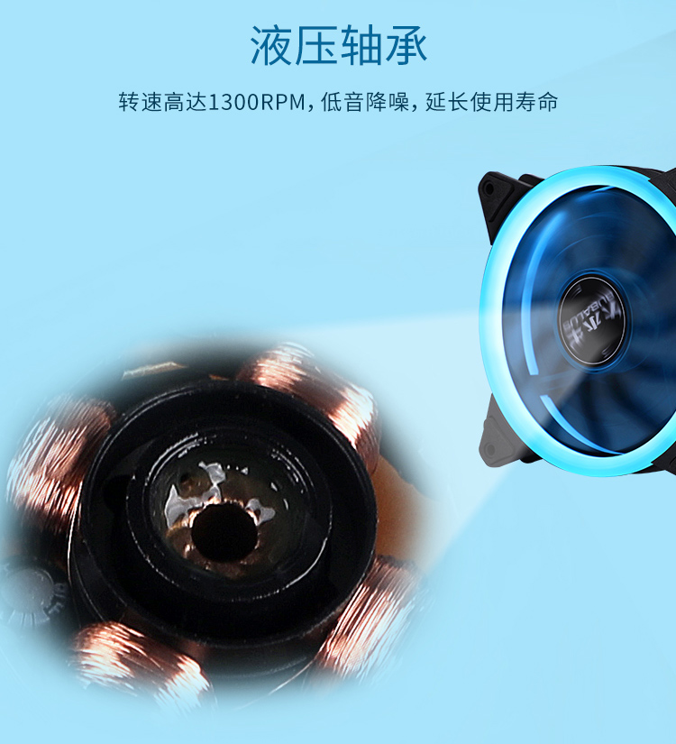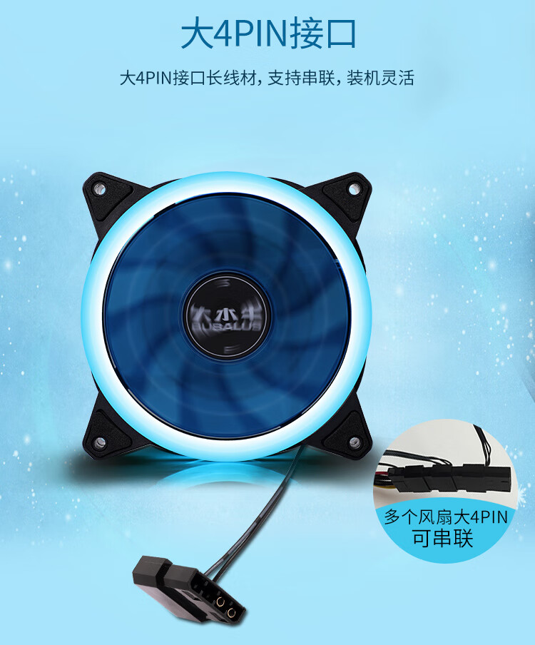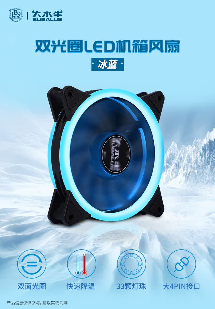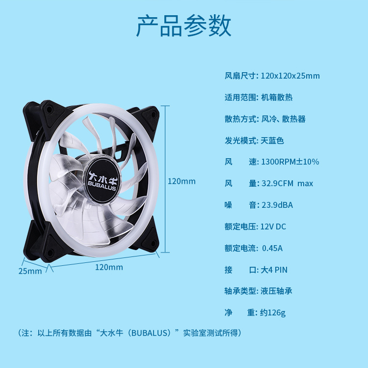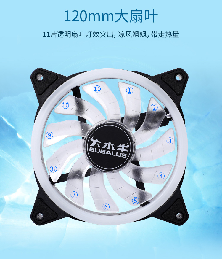大水牛(BUBALUS)冰蓝 12CM机箱风扇(冷色蓝光/风冷散热/液压轴承/电脑风扇/大4P接口串联)