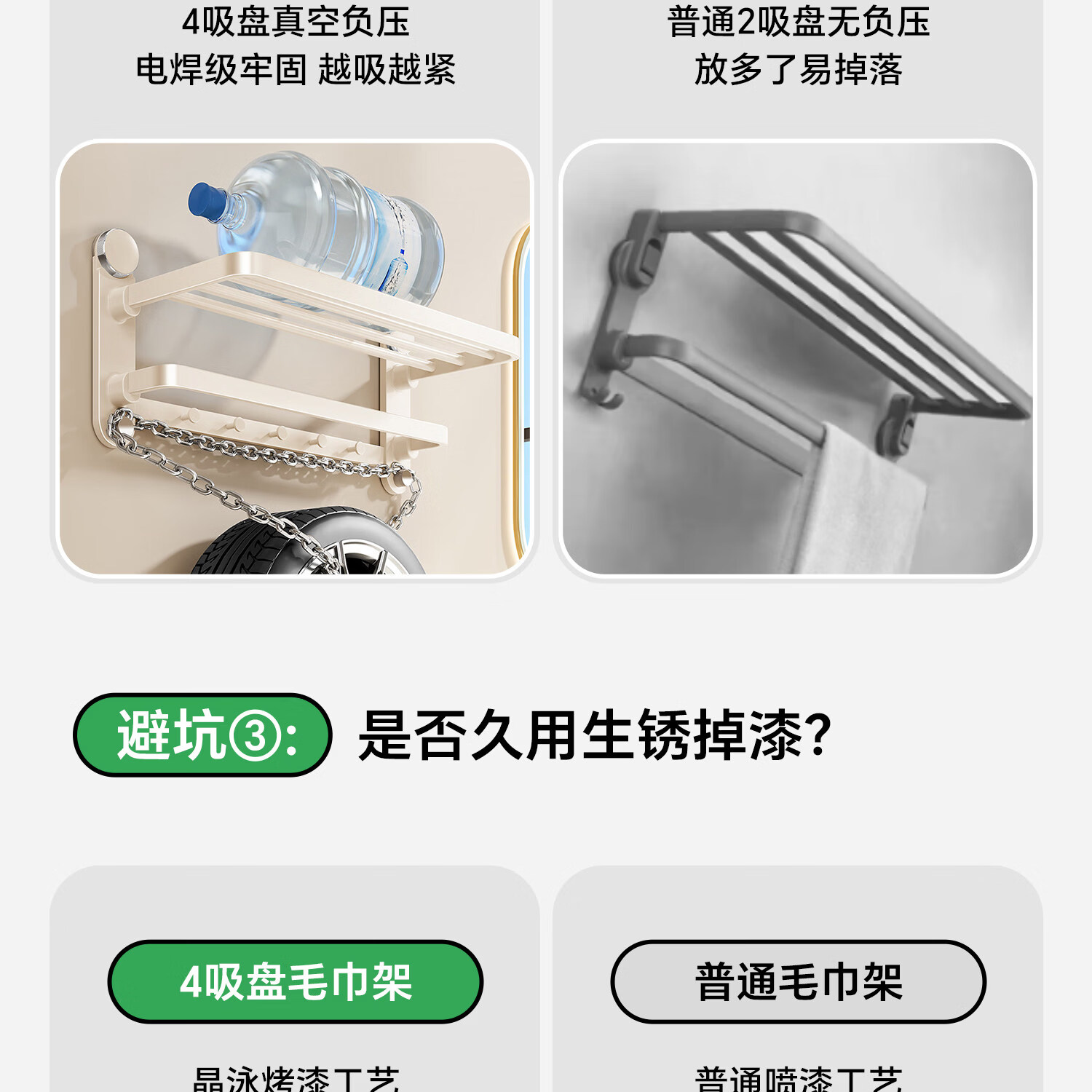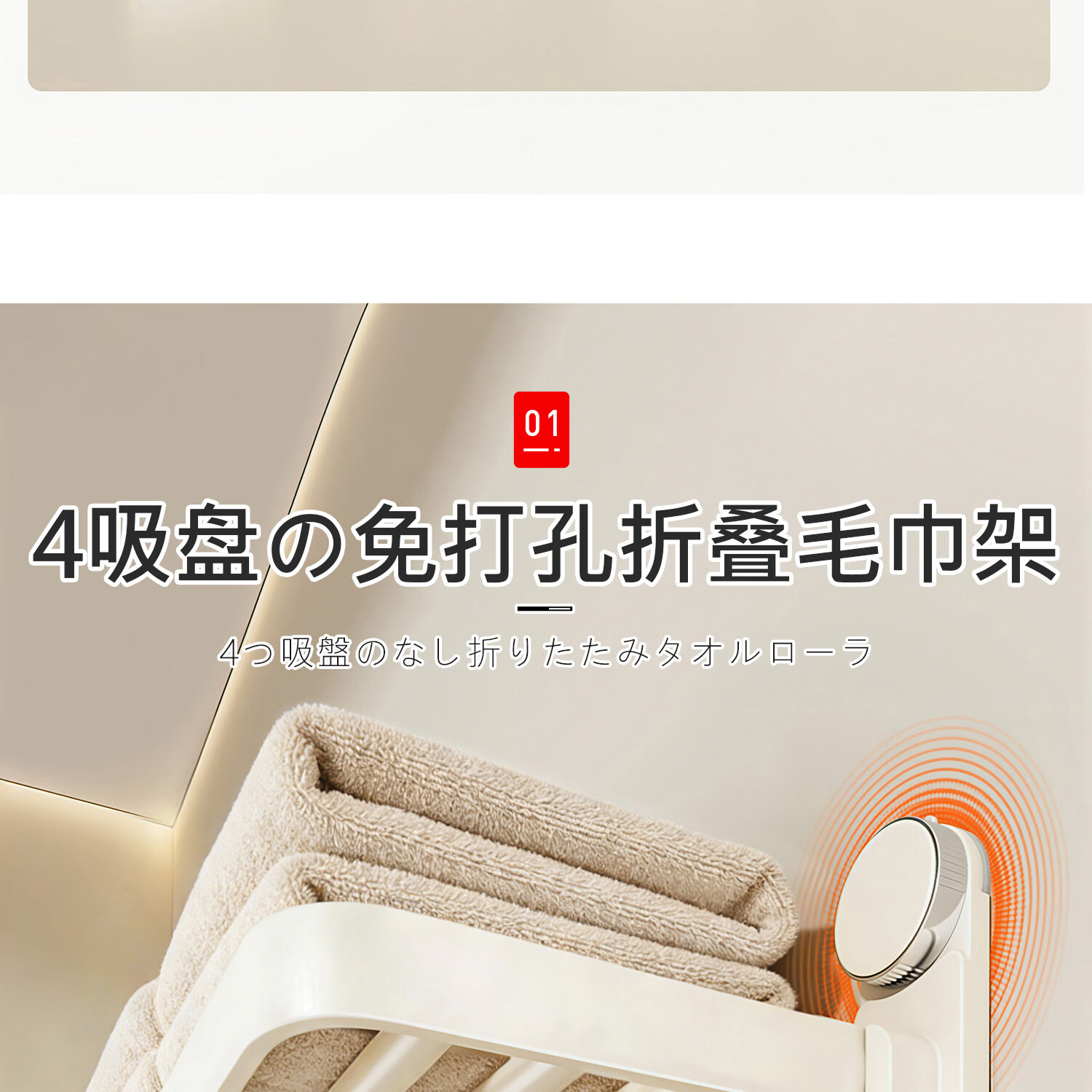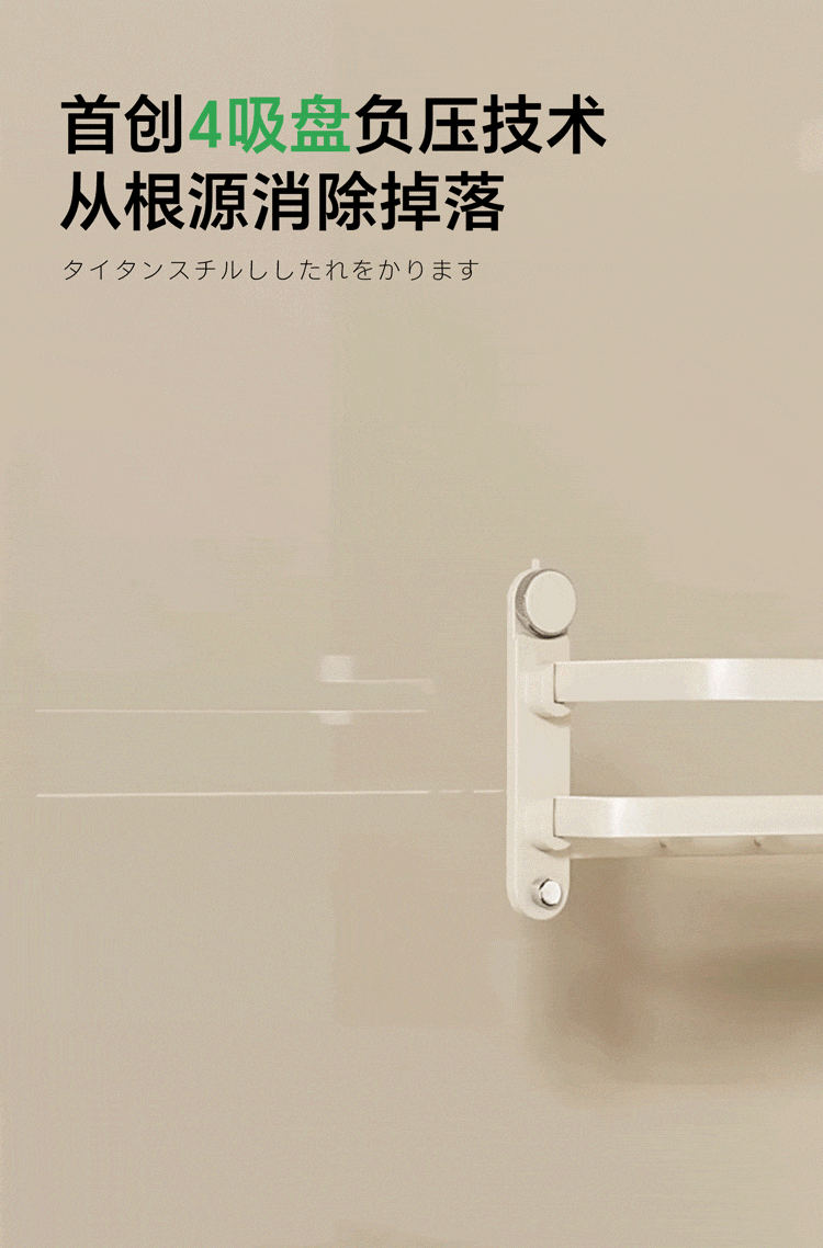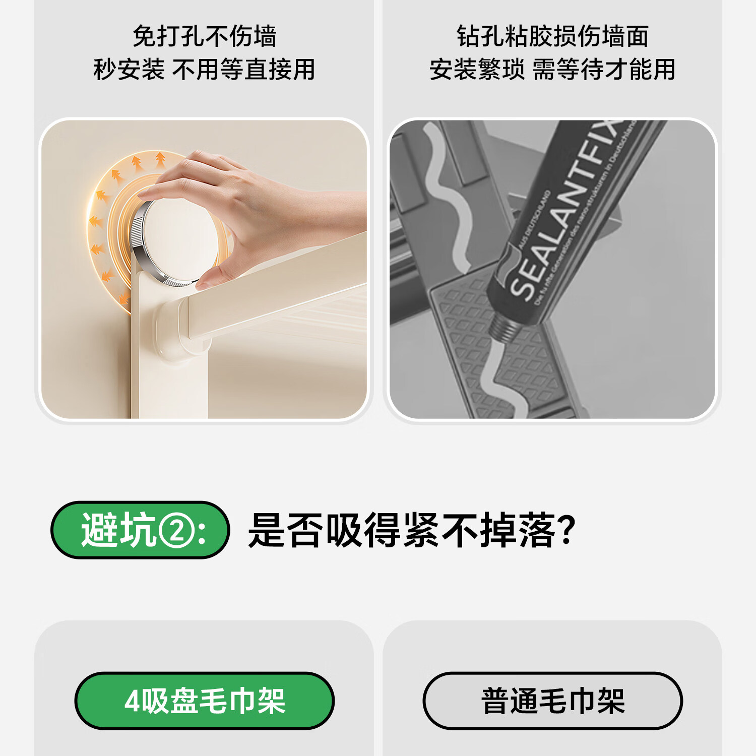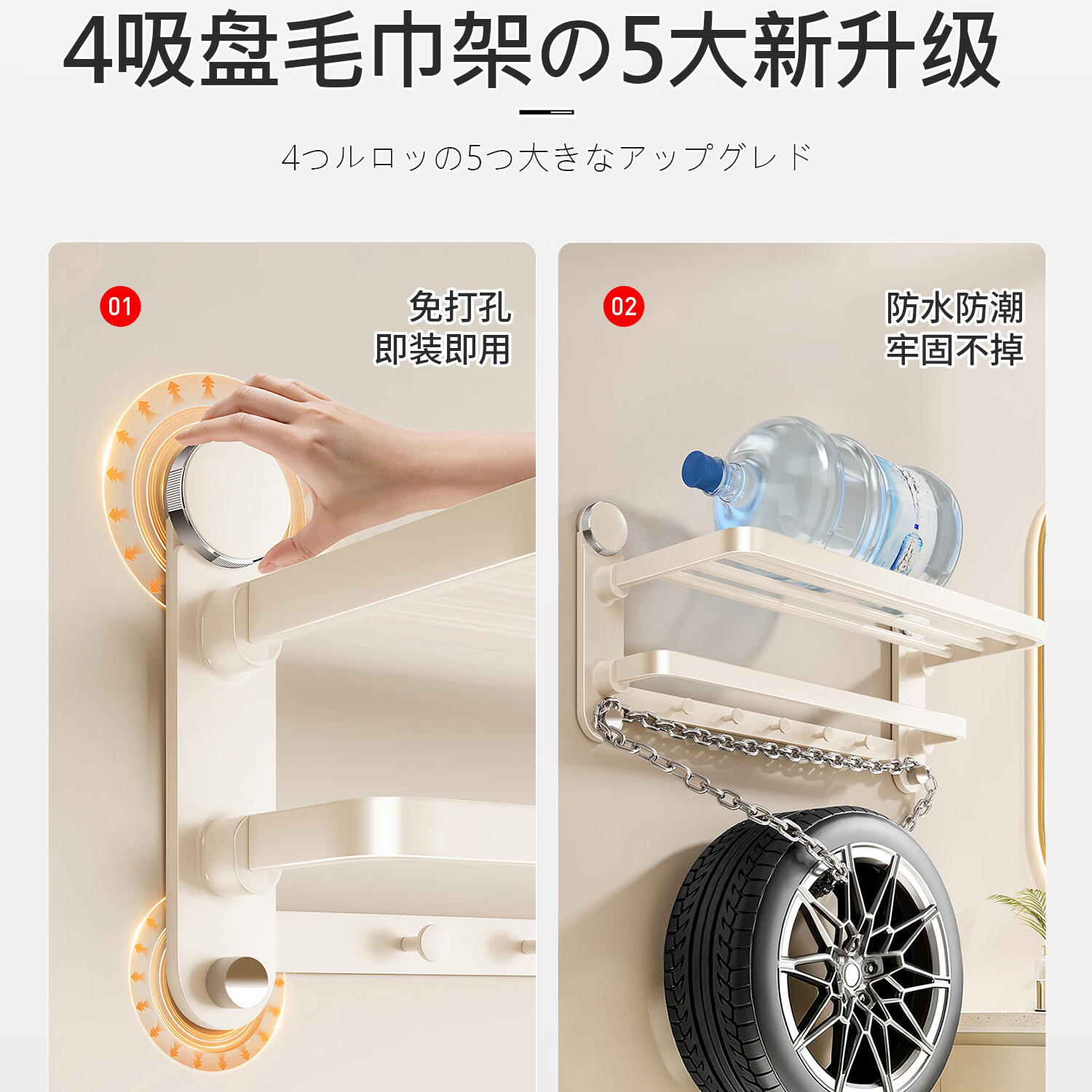 吱凡日本吸盘毛巾架卫生间免打孔浴室置物架浴巾架挂钩杆厕所收纳架子 【双折叠4吸盘】枪灰-40cm【承重40斤掉落包赔】
