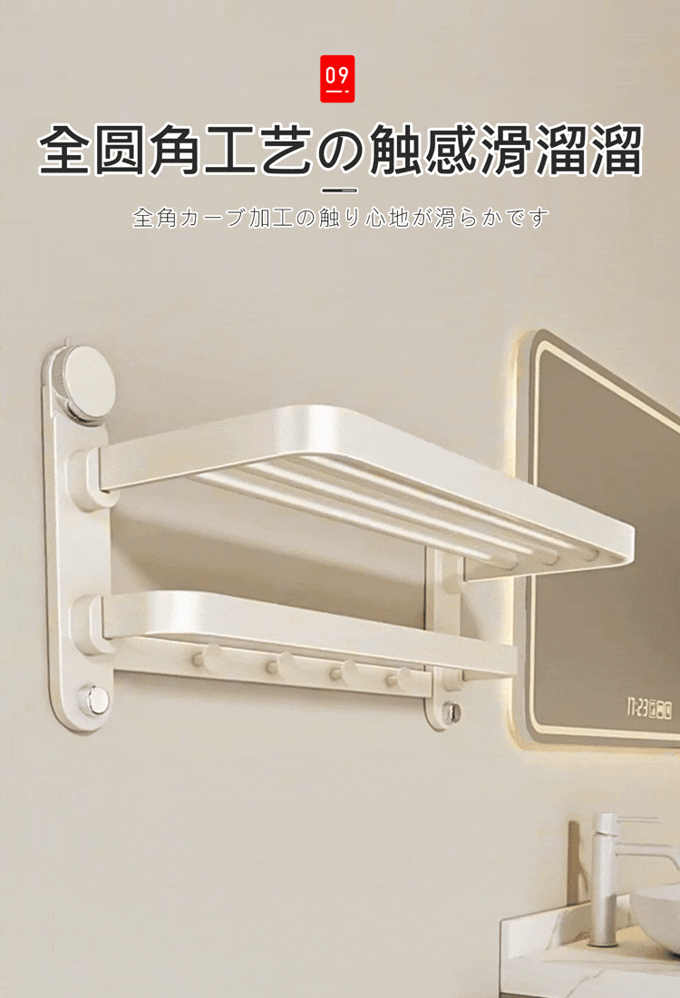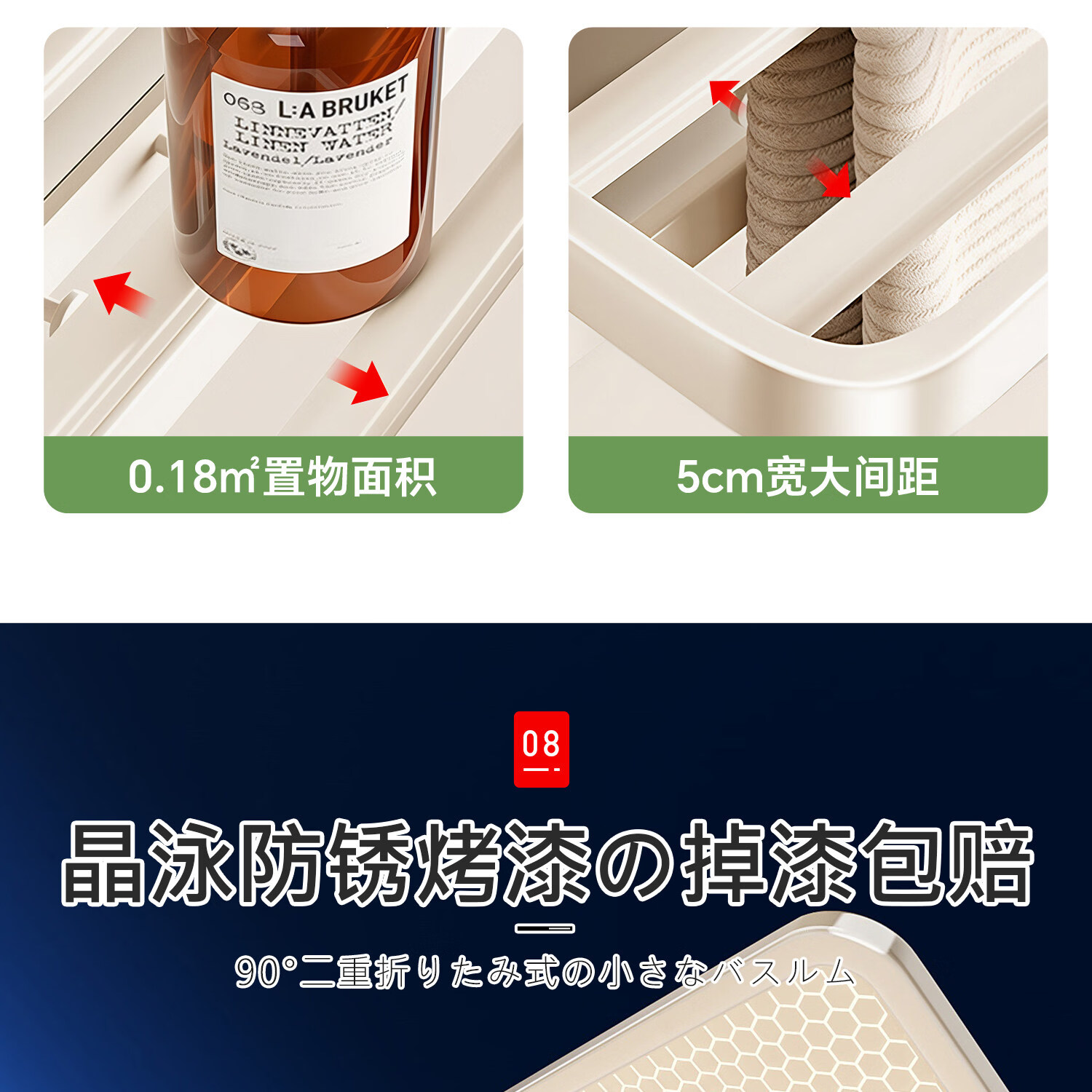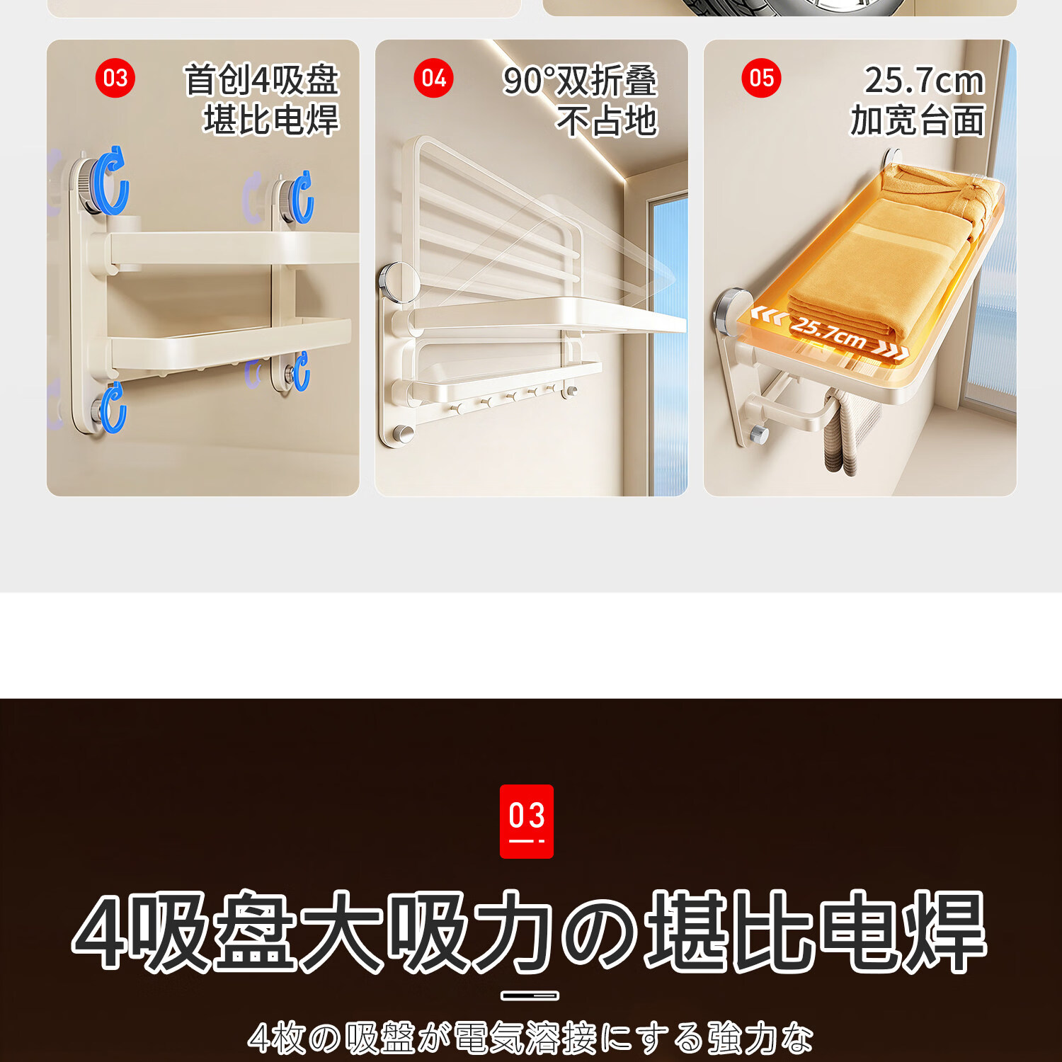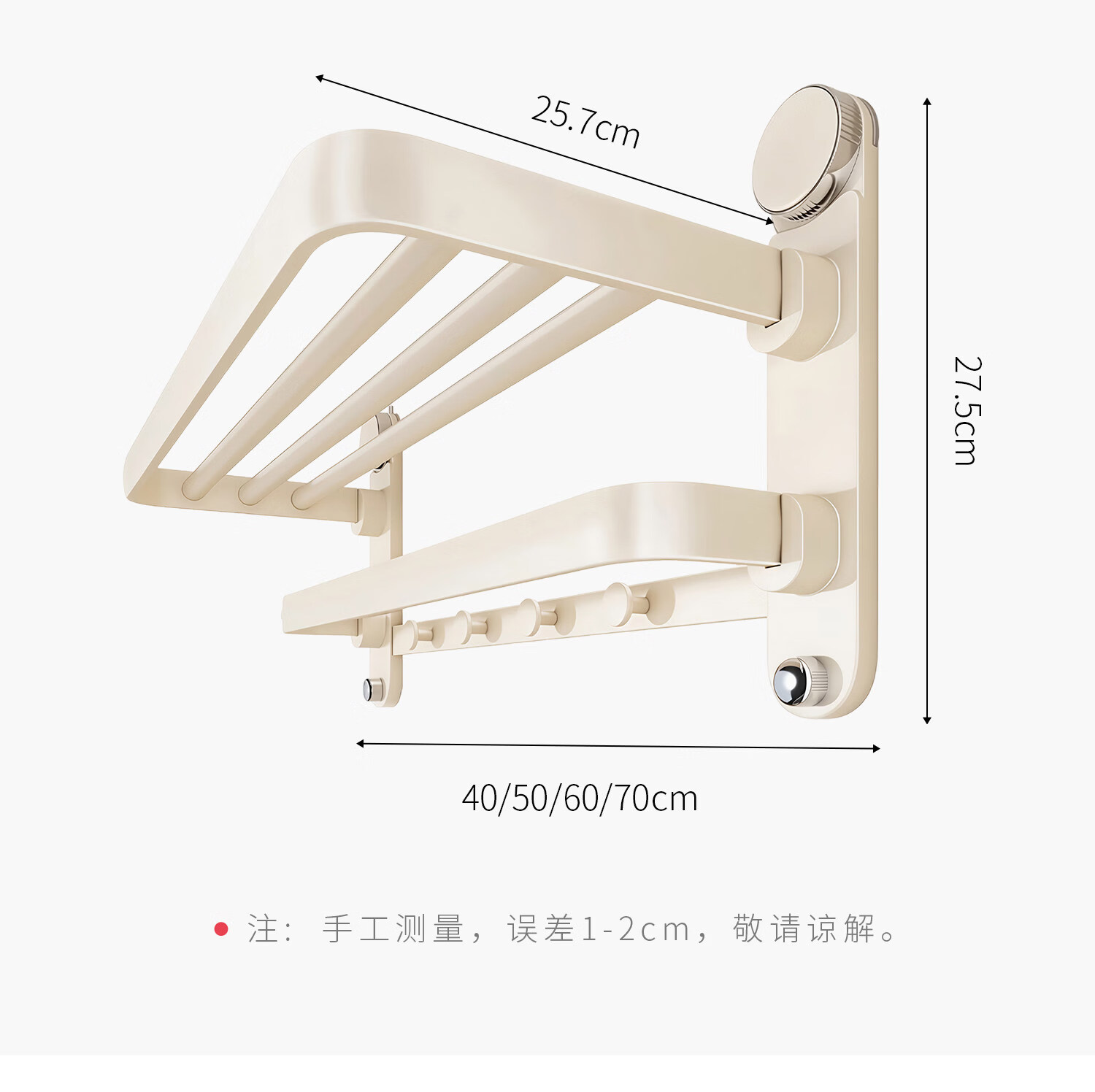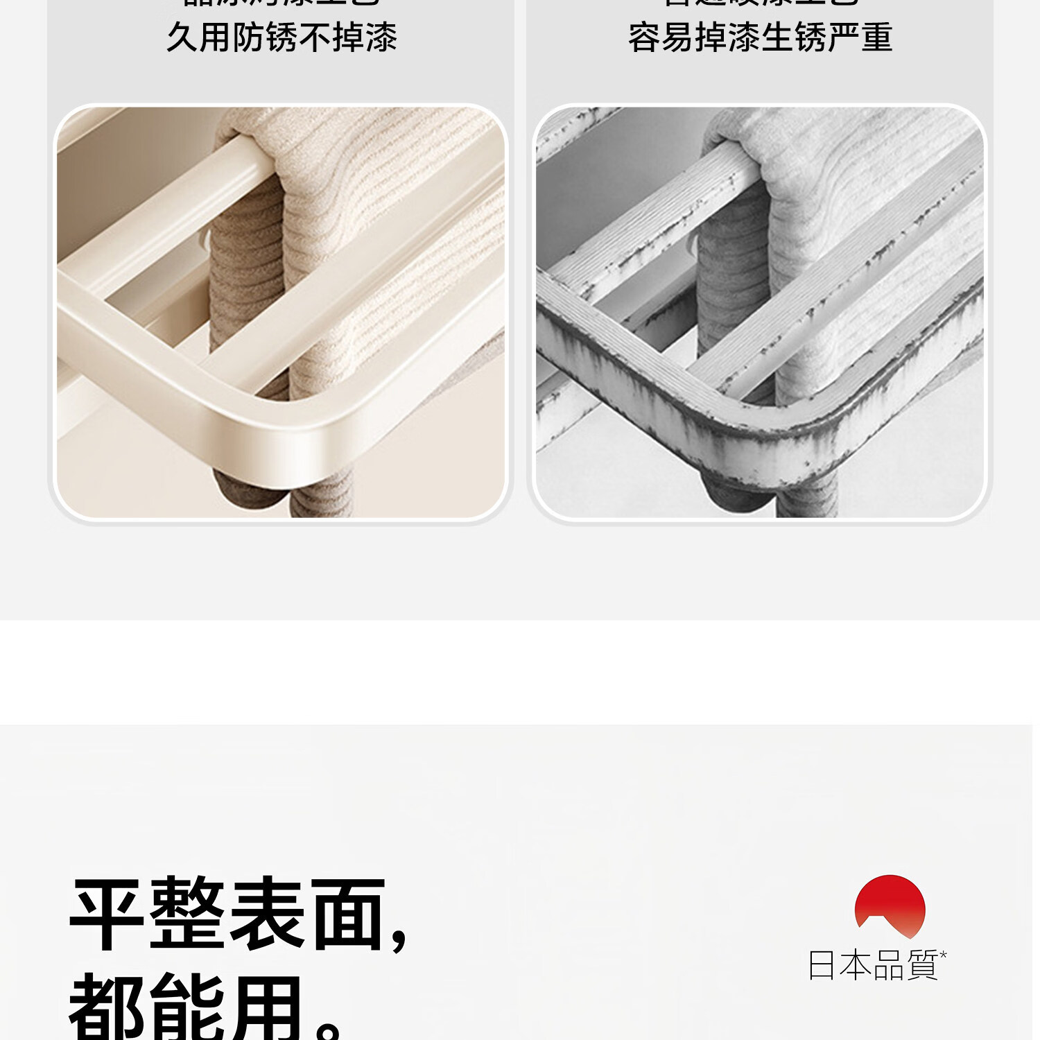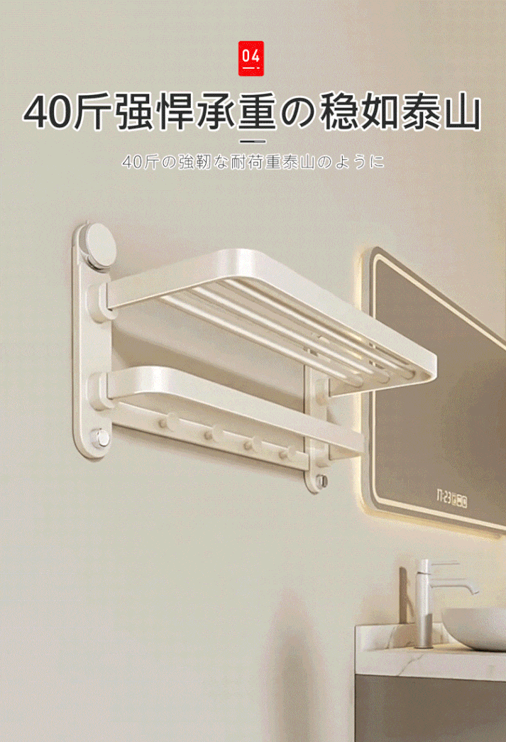 吱凡日本吸盘毛巾架卫生间免打孔浴室置物架浴巾架挂钩杆厕所收纳架子 【双折叠4吸盘】枪灰-40cm【承重40斤掉落包赔】