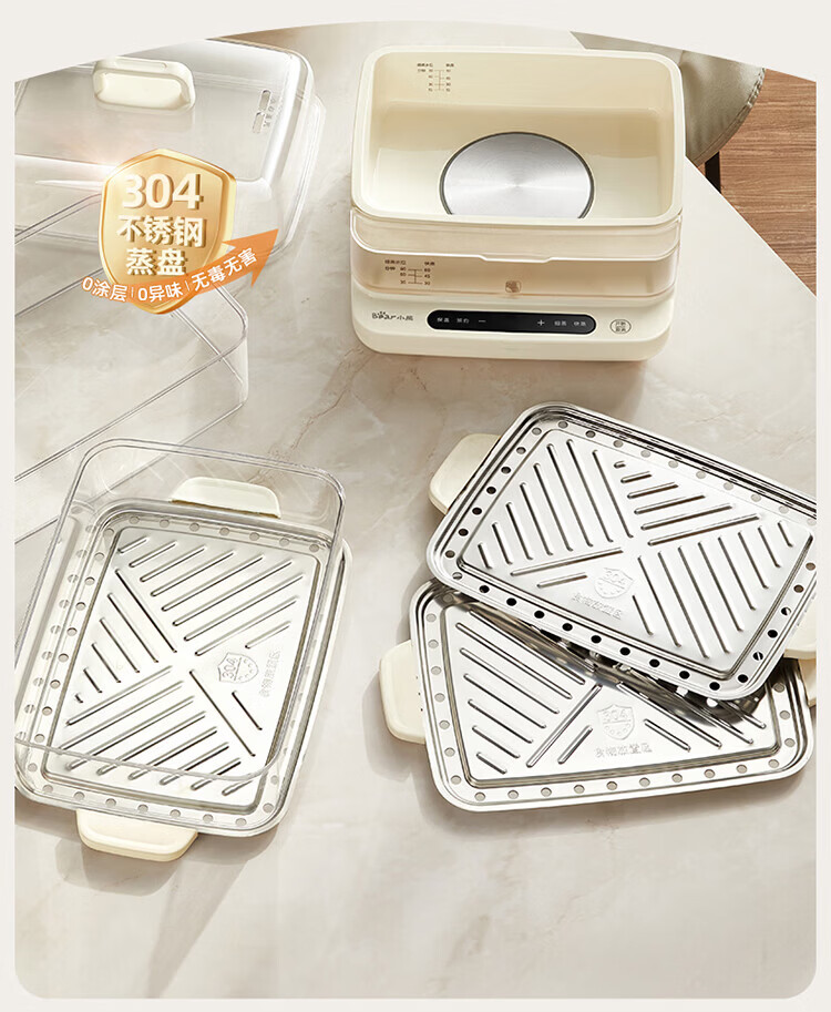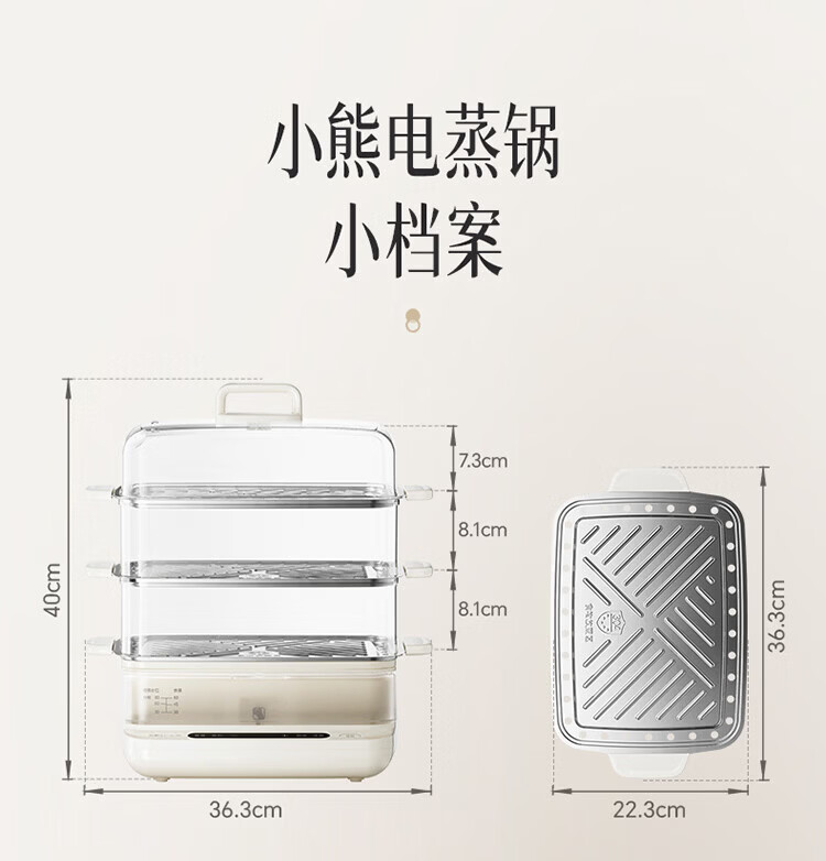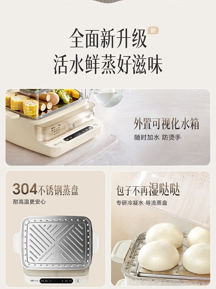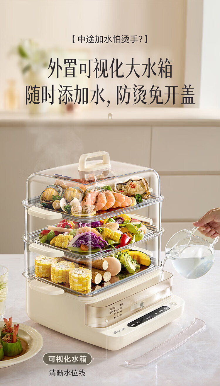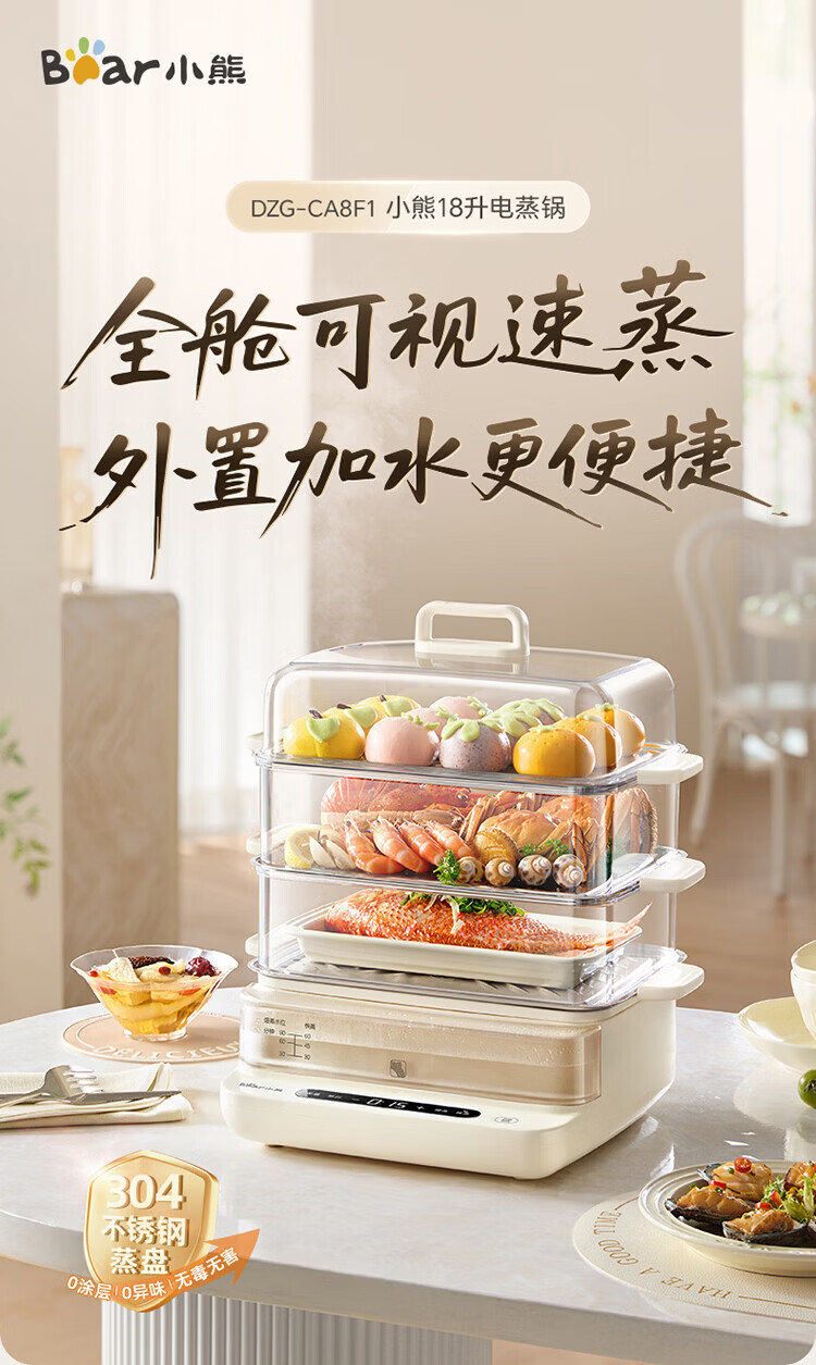 小熊(Bear)电蒸锅 蒸锅家用3-4人 18L三层大容量可视外加水箱 不锈钢蒸片多功能多用途 DZG-CA8F1