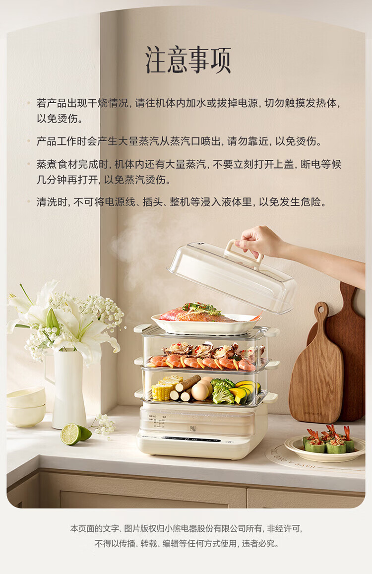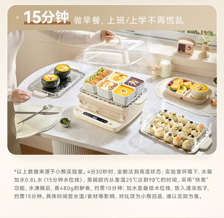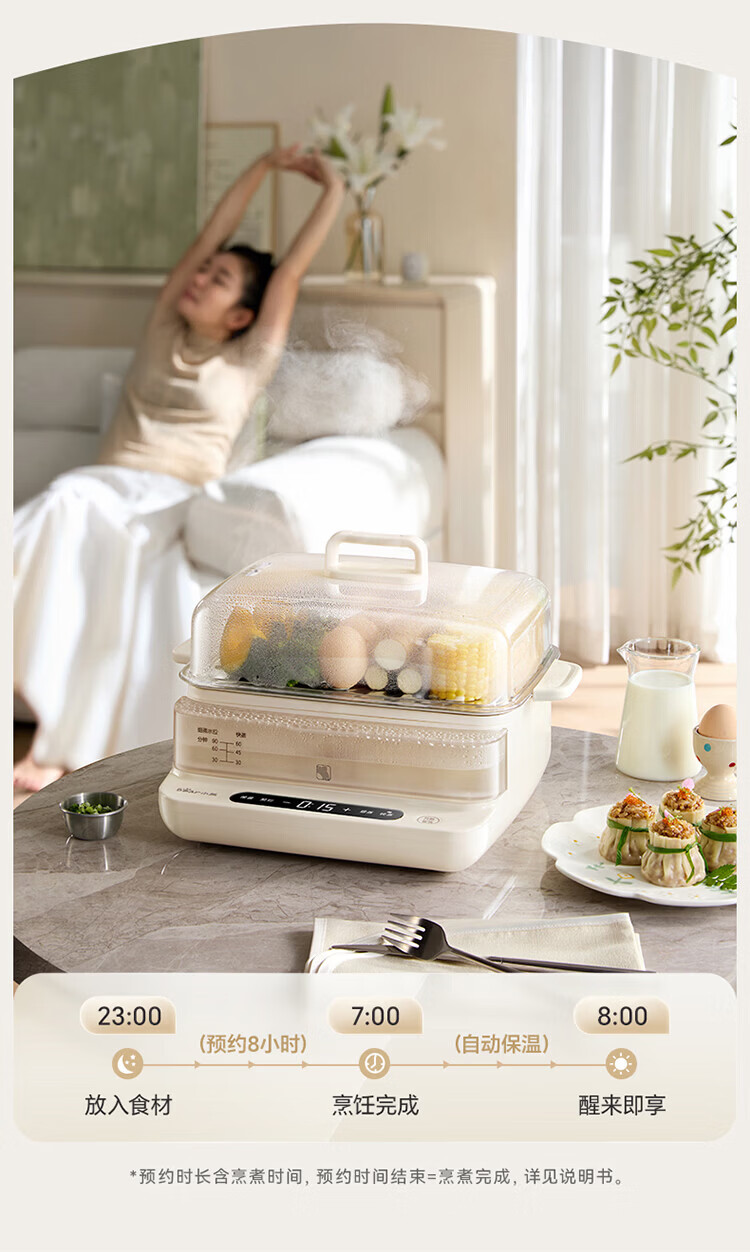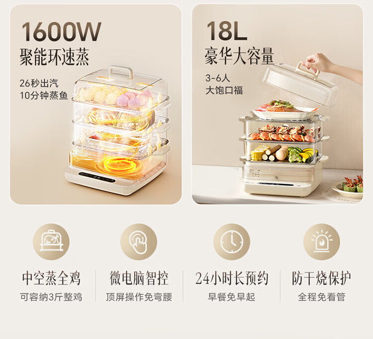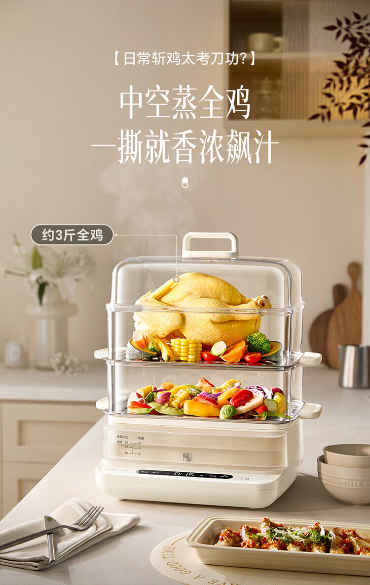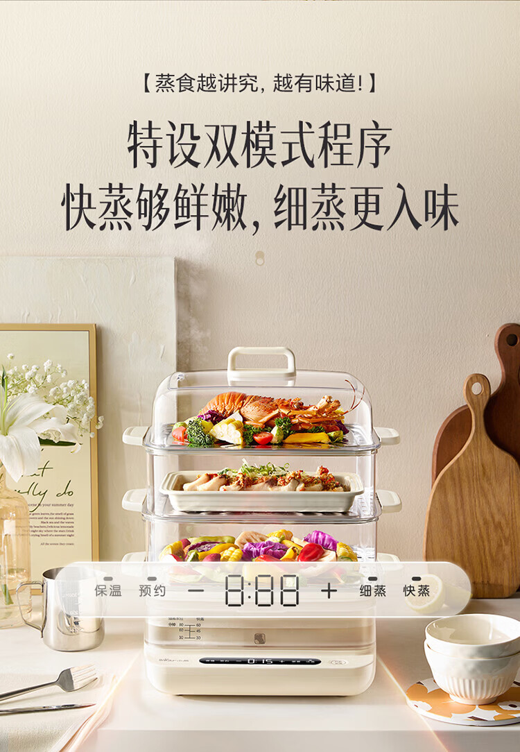 小熊(Bear)电蒸锅 蒸锅家用3-4人 18L三层大容量可视外加水箱 不锈钢蒸片多功能多用途 DZG-CA8F1