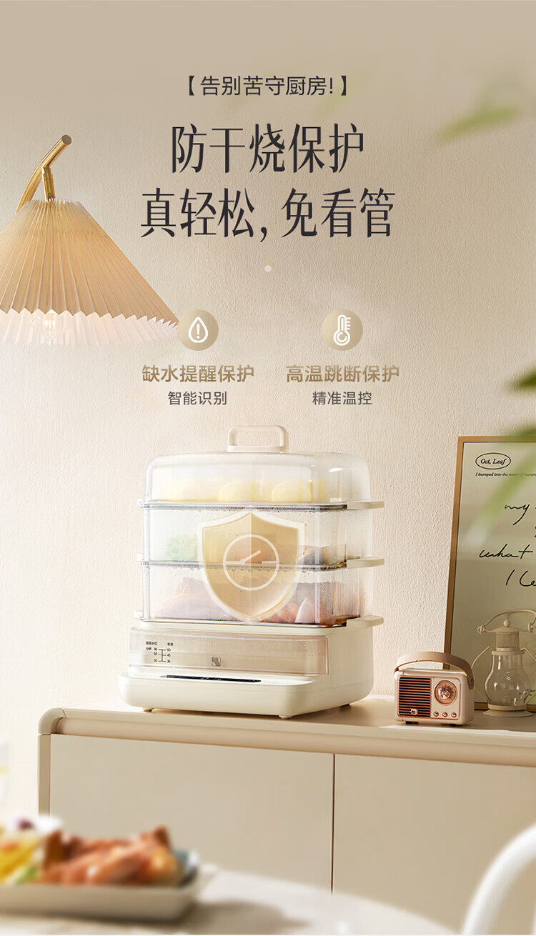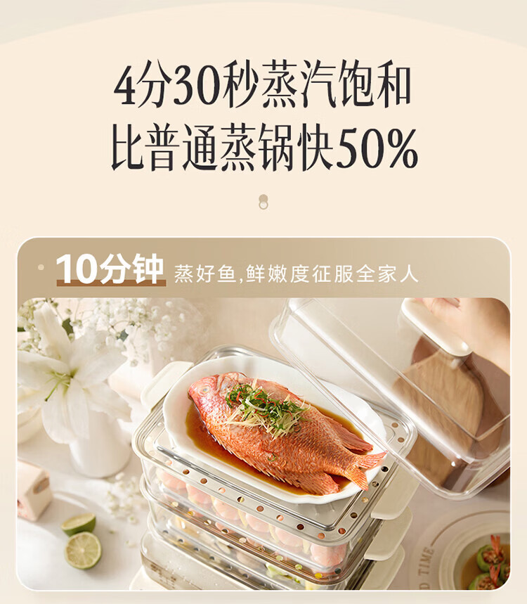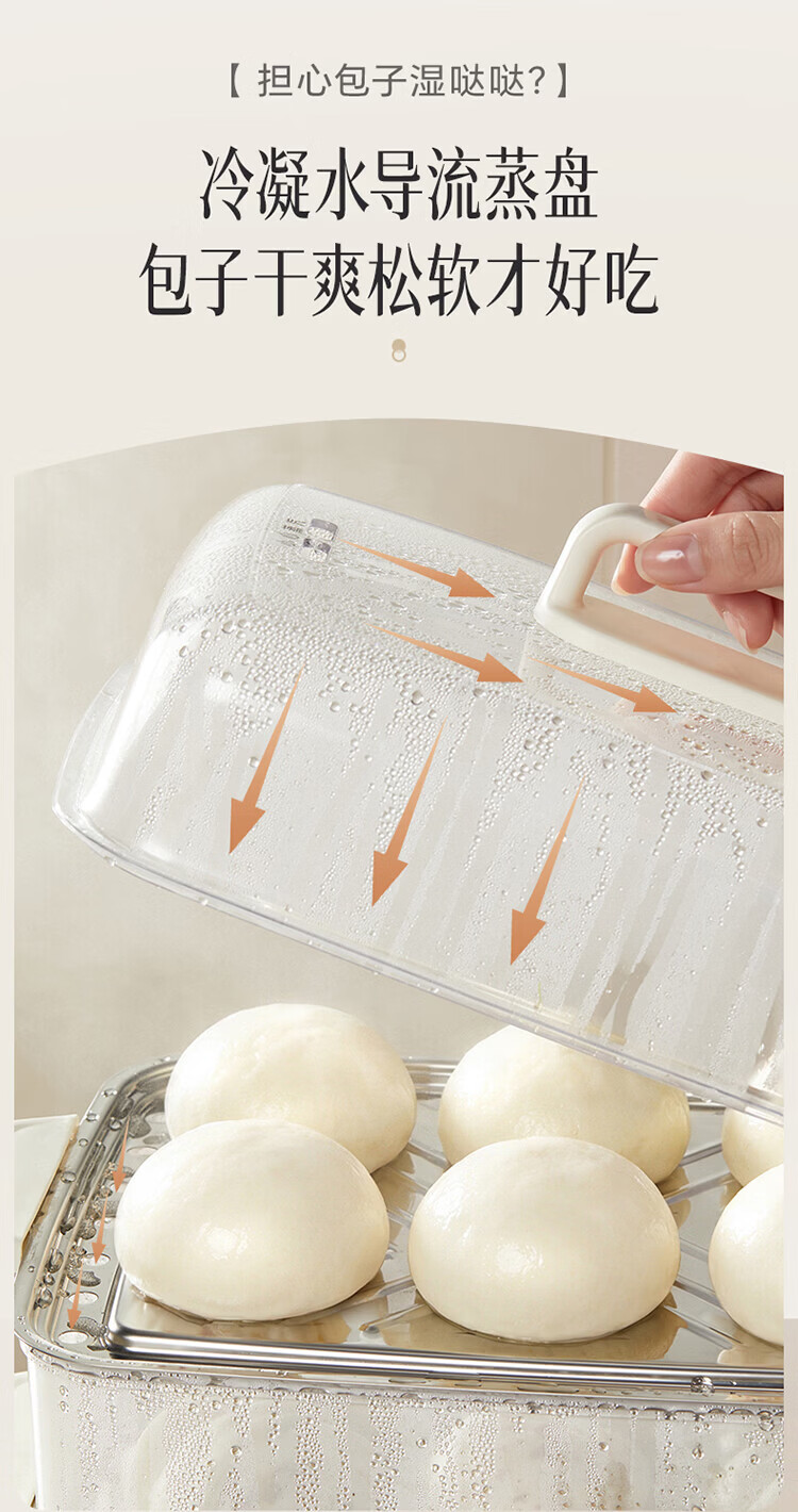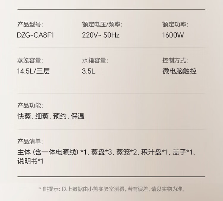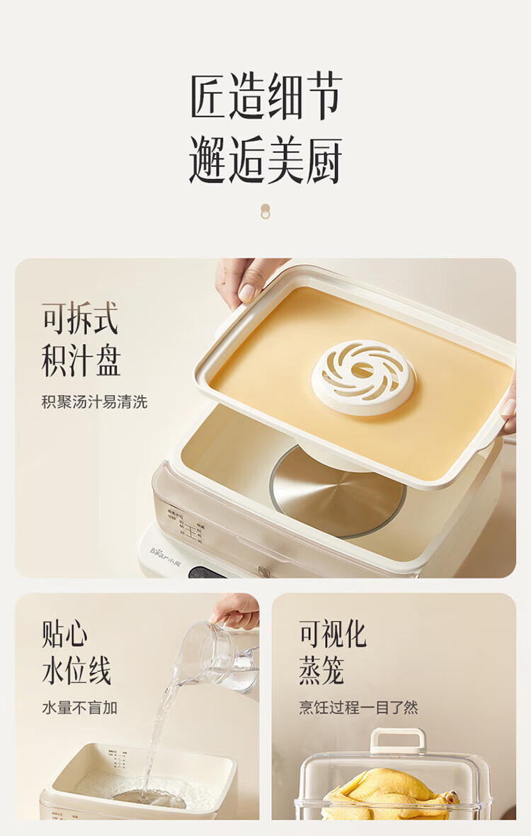小熊(Bear)电蒸锅 蒸锅家用3-4人 18L三层大容量可视外加水箱 不锈钢蒸片多功能多用途 DZG-CA8F1