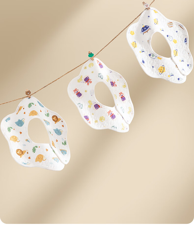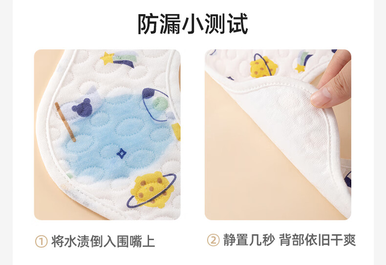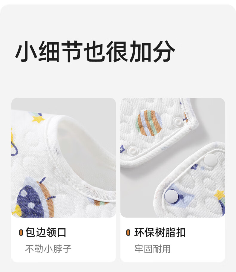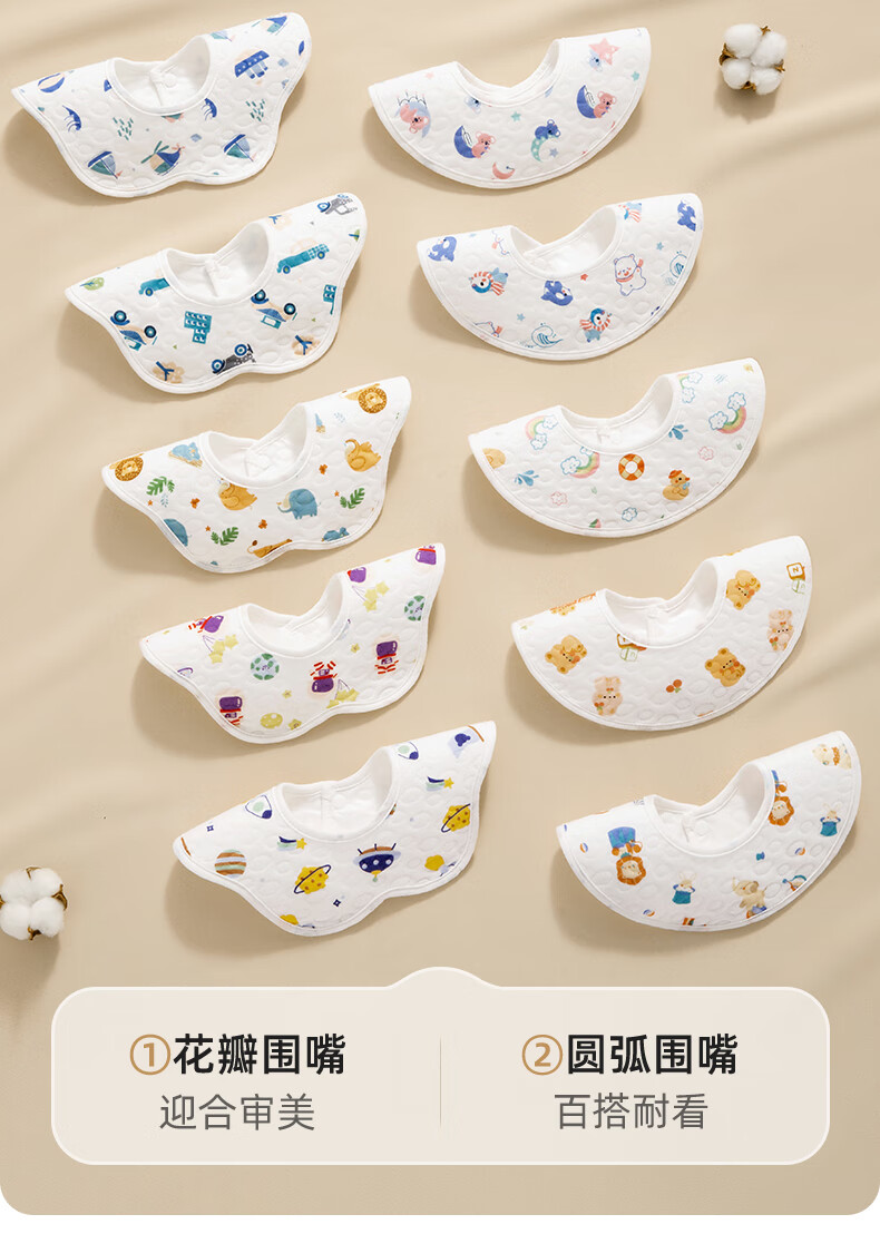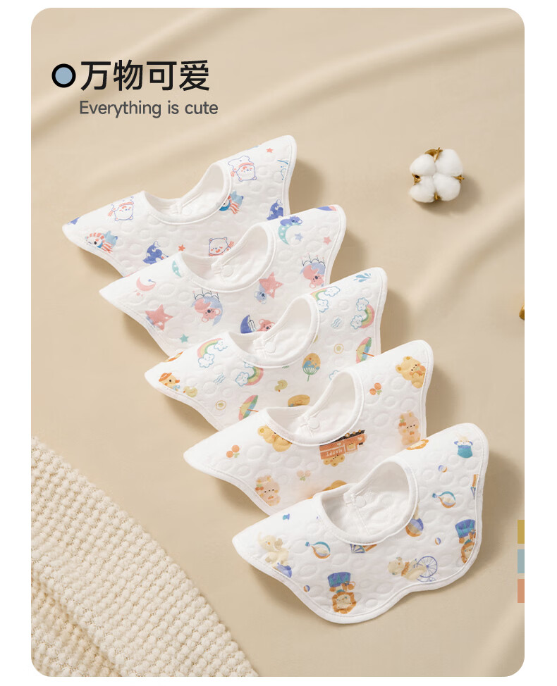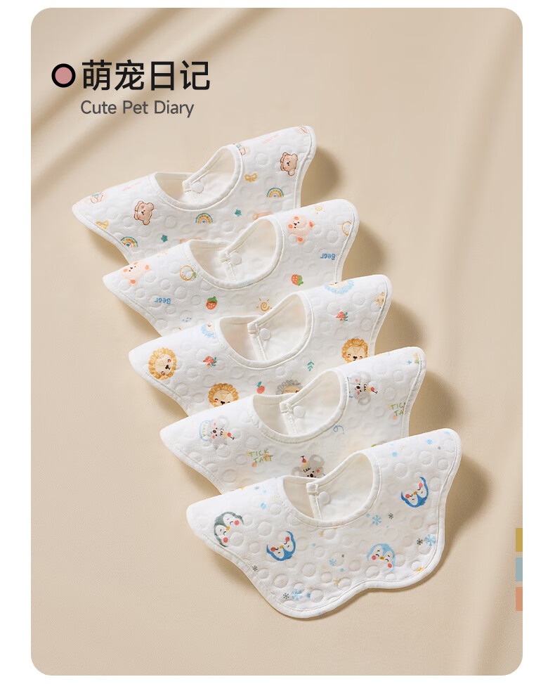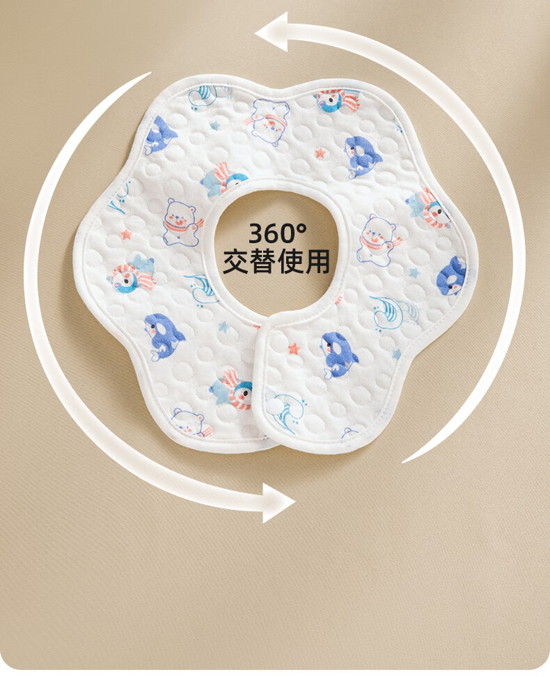 贝肽斯婴儿围嘴新生儿防水围兜亲肤透气360度旋转吃饭宝宝口水巾 5条装