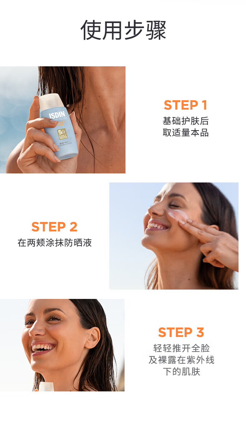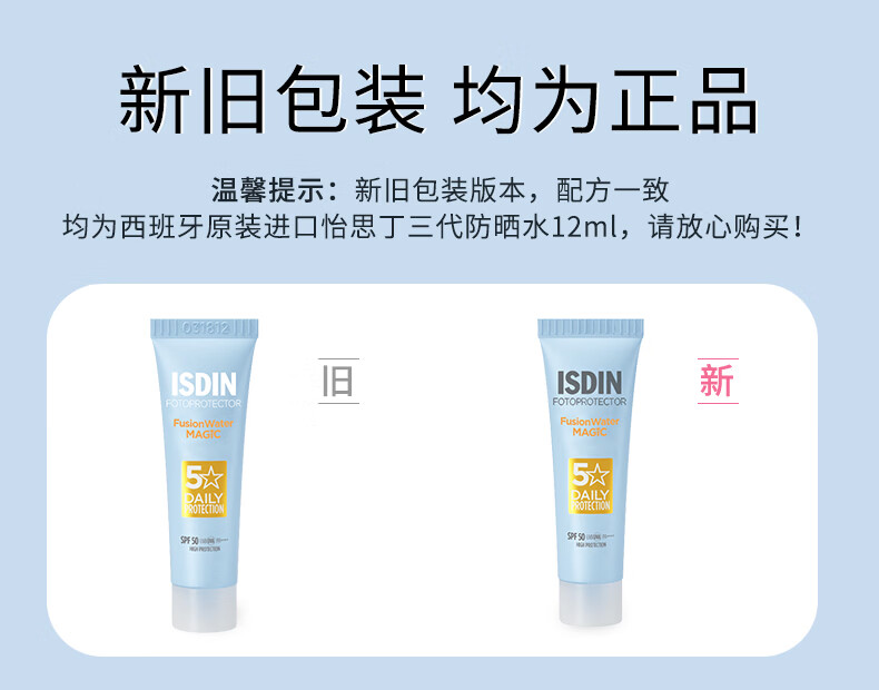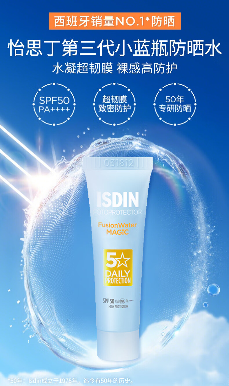 怡思丁(ISDIN)水感防晒霜隔离12ml*3 SPF50西班牙进口面部女男士户外防晒旅行