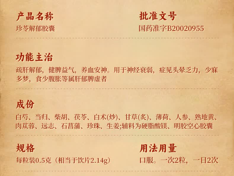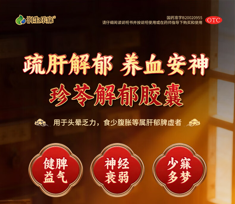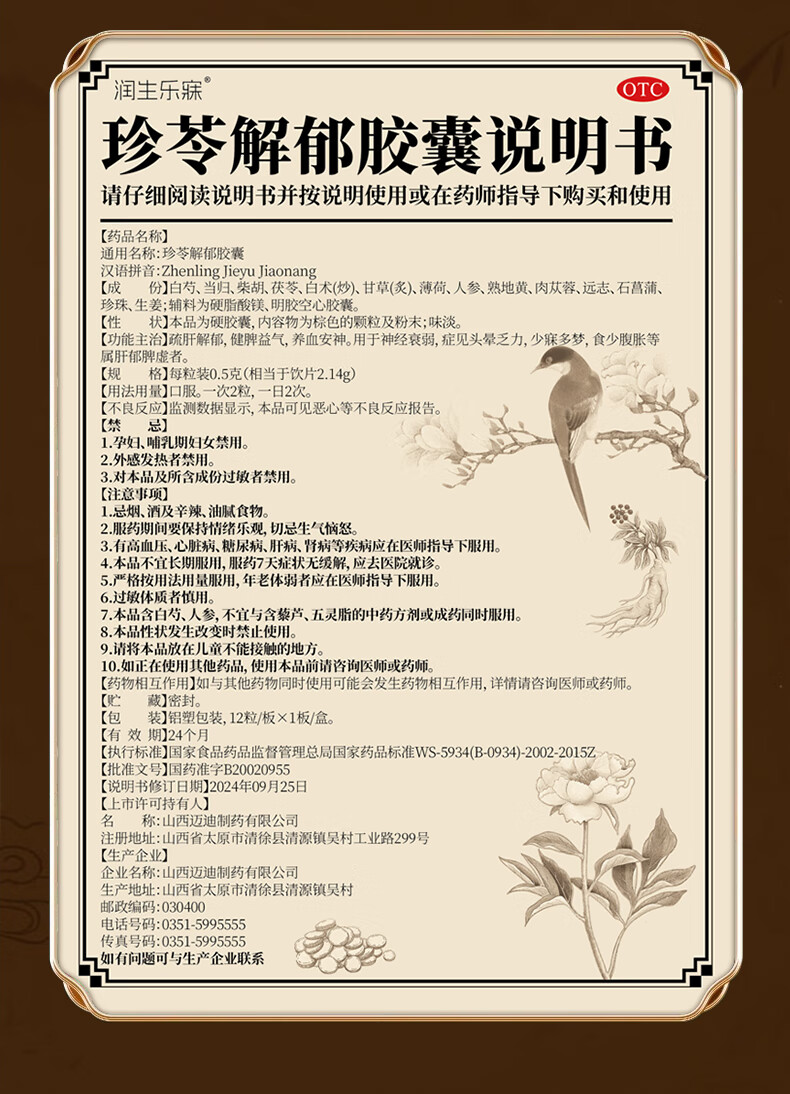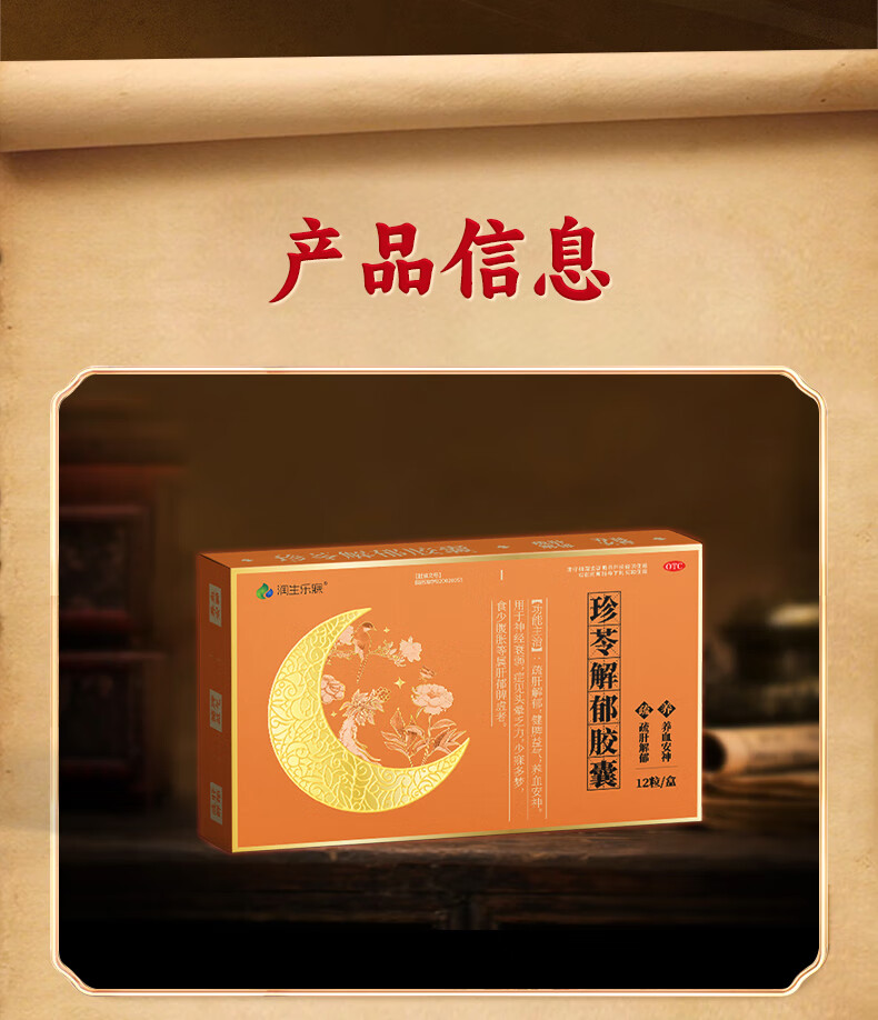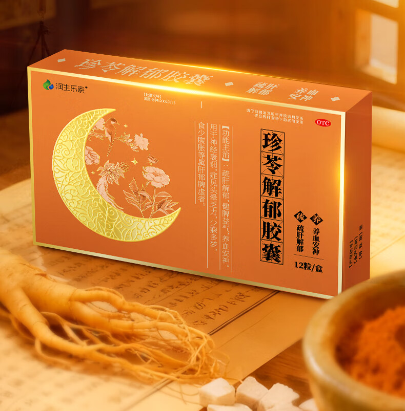 [润生乐寐]珍苓解郁胶囊 0.5g*12粒 5盒装 疏肝解郁胶囊功效安神改善失眠助睡眠胶囊多梦安神药成年人中老年珍岑官方正品 治疗病根低至66/盒