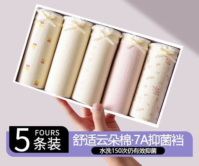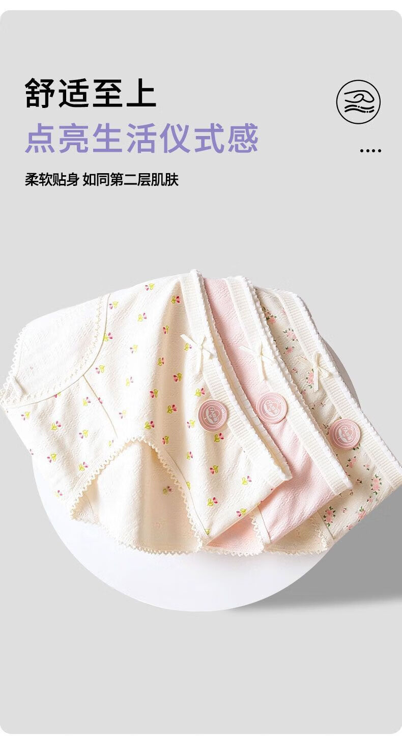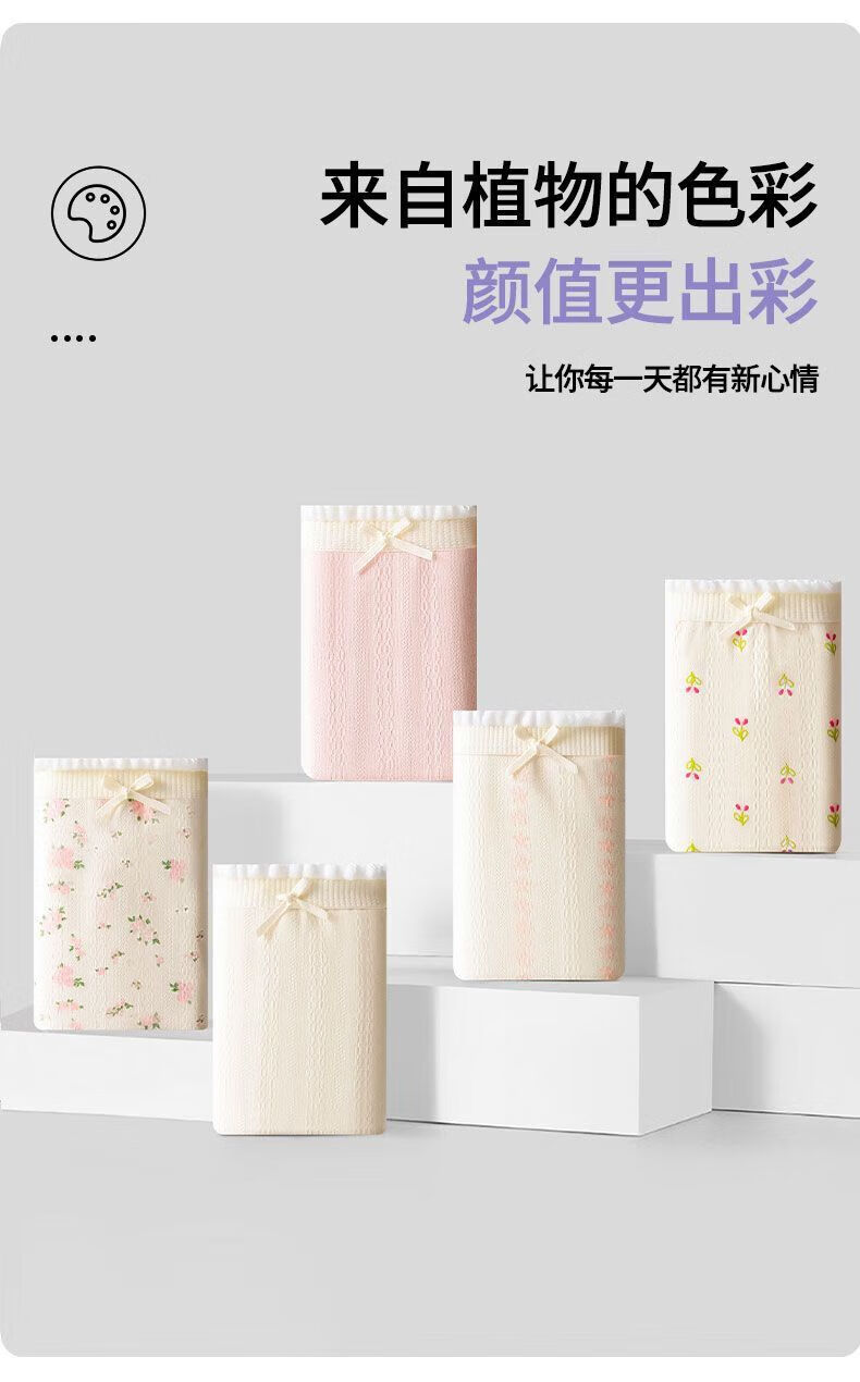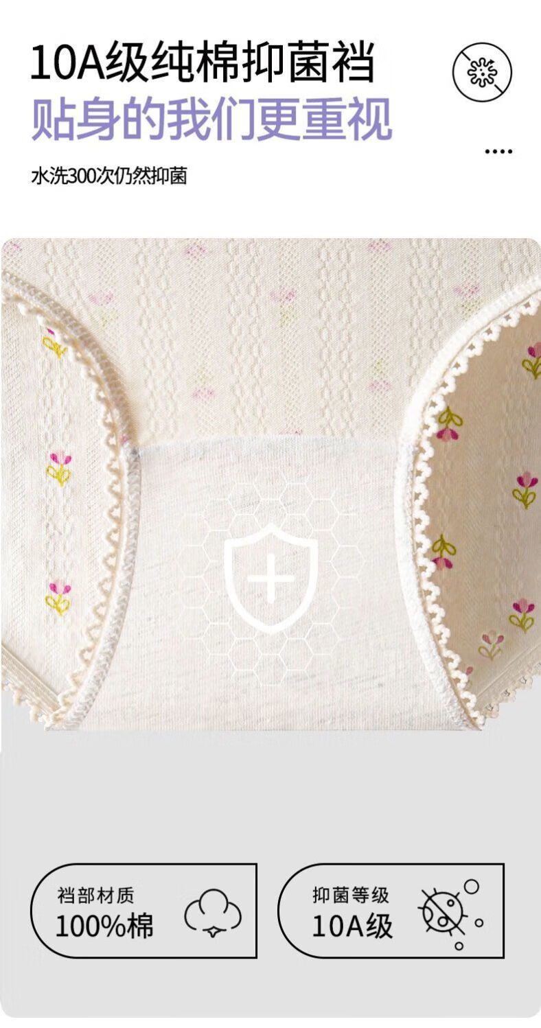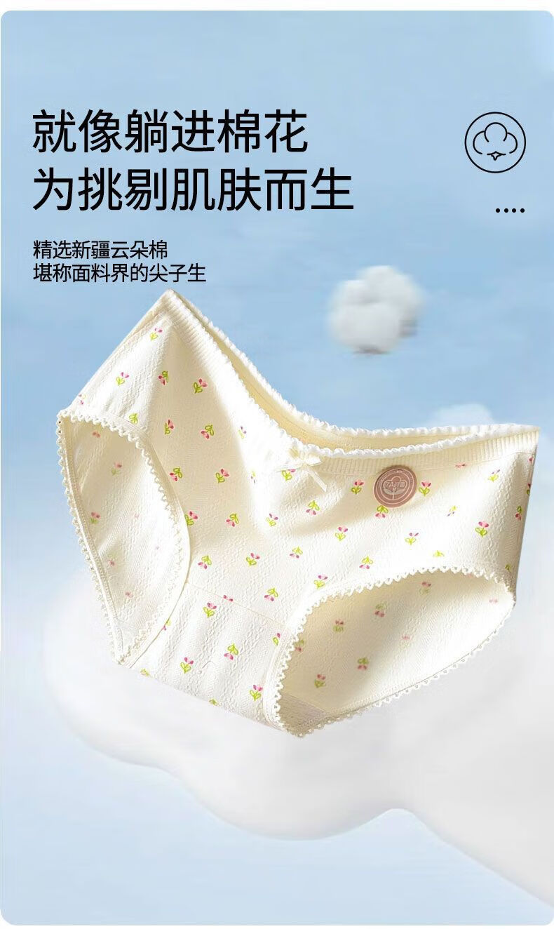 宜而爽纯棉花朵女士内裤7A抗菌新款透气三角提臀式底裤 2黄小花+2五角星+2黄大花+1粉色 7条 L (95-120斤)