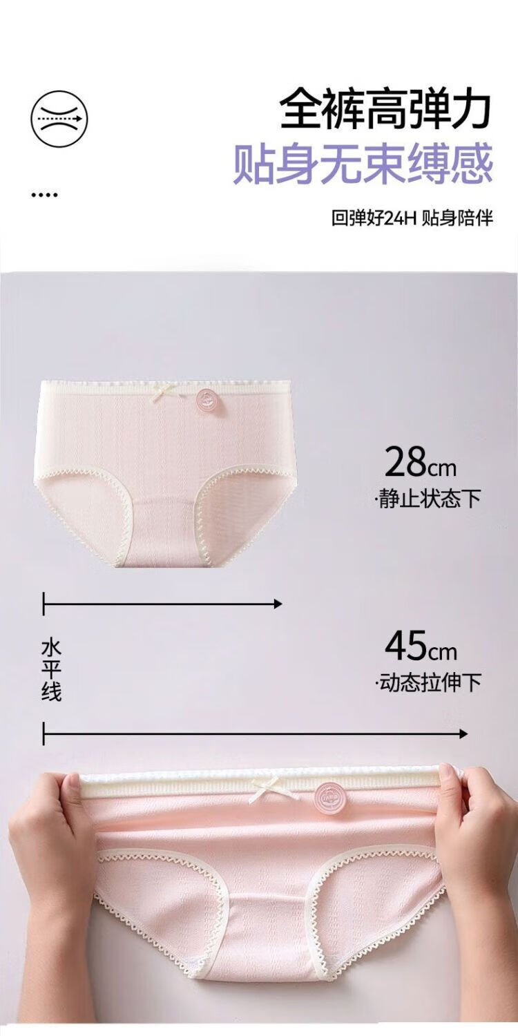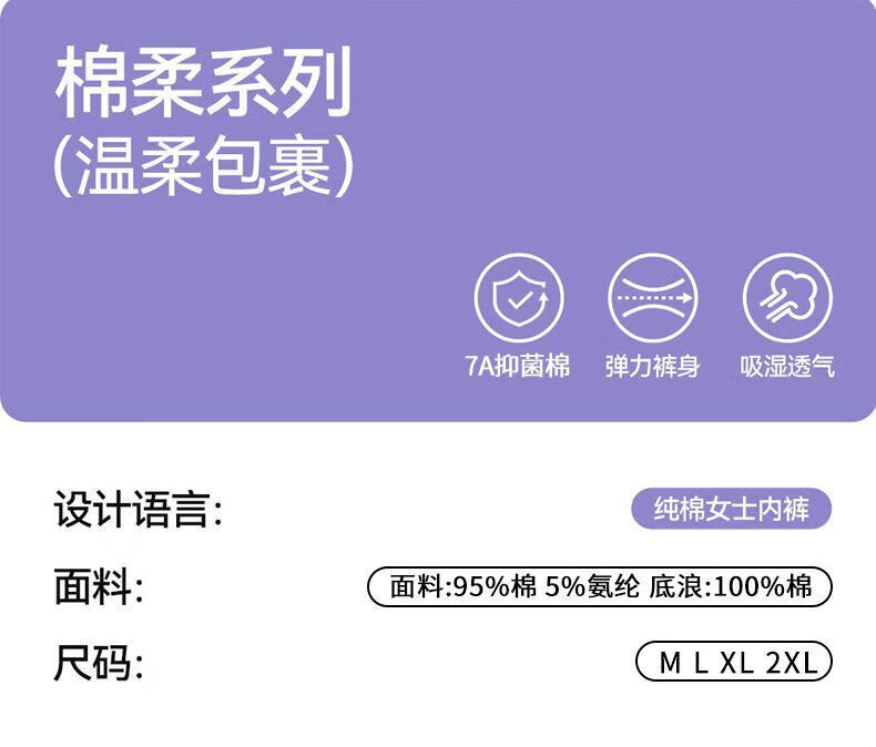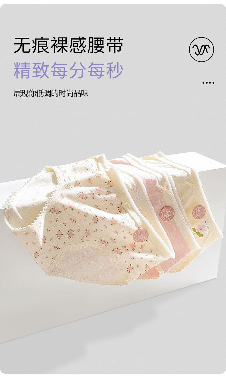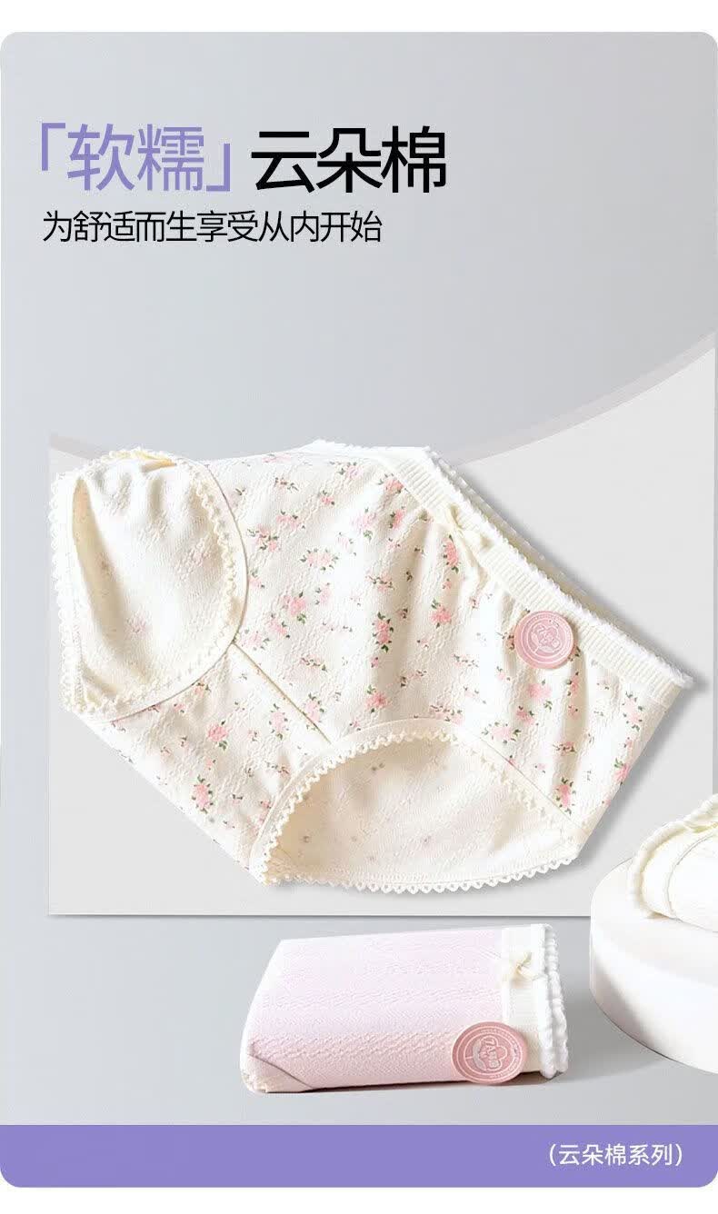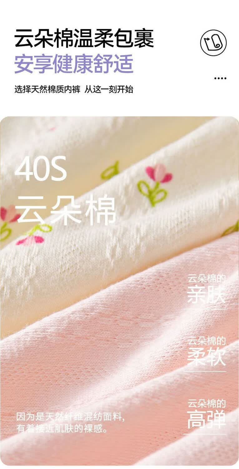 宜而爽纯棉花朵女士内裤7A抗菌新款透气三角提臀式底裤 2黄小花+2五角星+2黄大花+1粉色 7条 L (95-120斤)