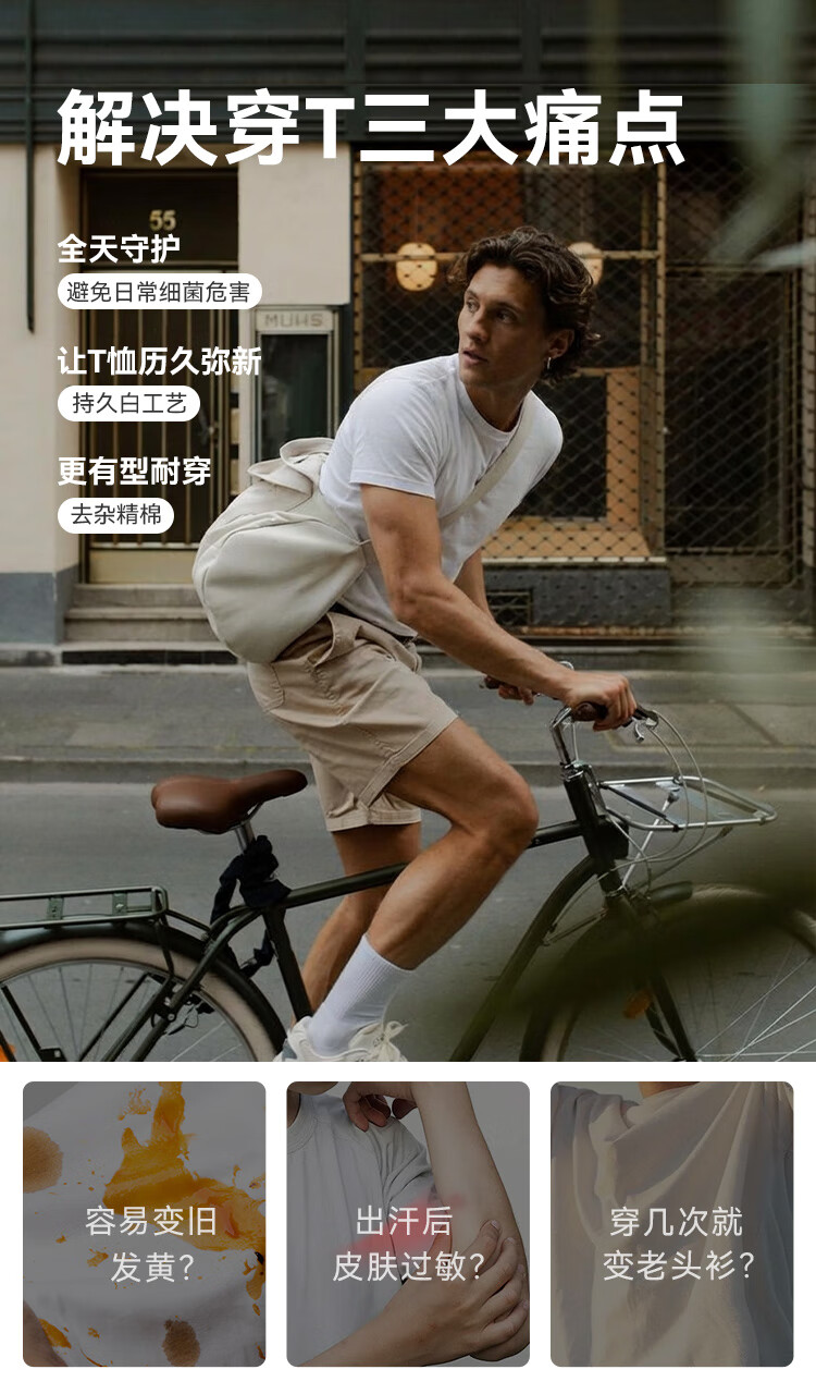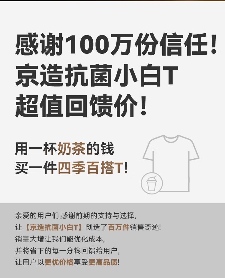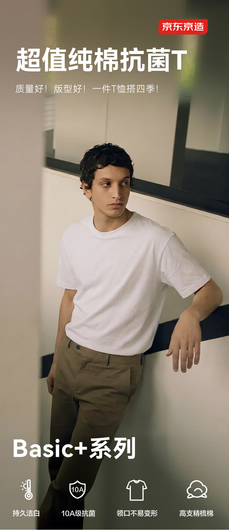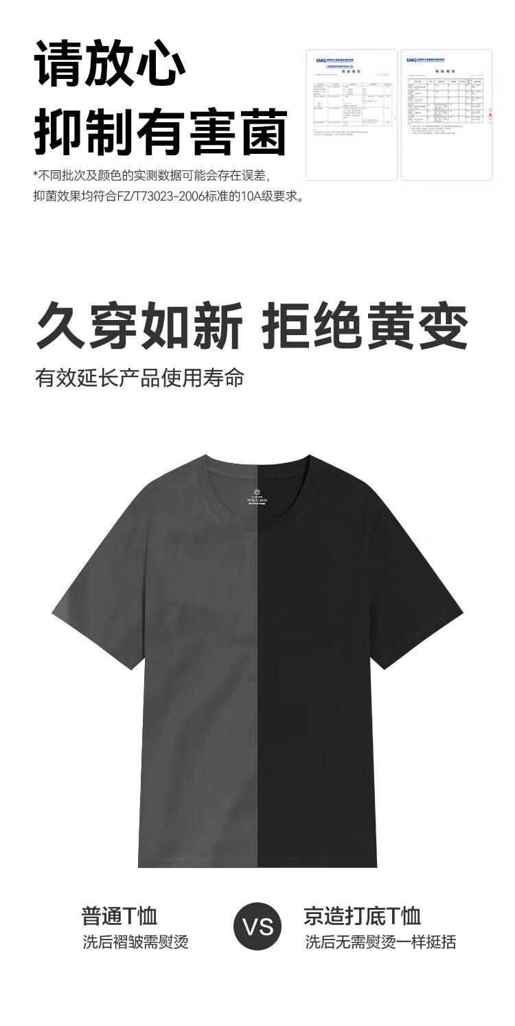 京东京造10A抗菌男士t恤短袖男女同款衣服男装春夏新款圆领打底内搭白2XL
