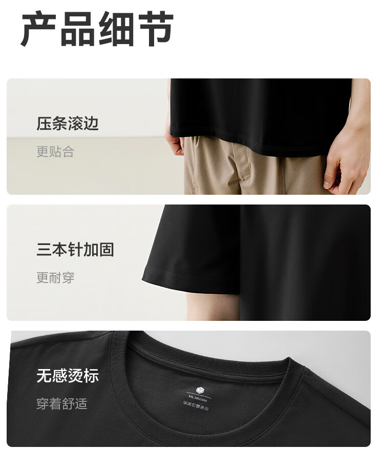 HLA海澜之家短袖T恤男冰爽棉撞色圆领凉感短袖男【安心品质】