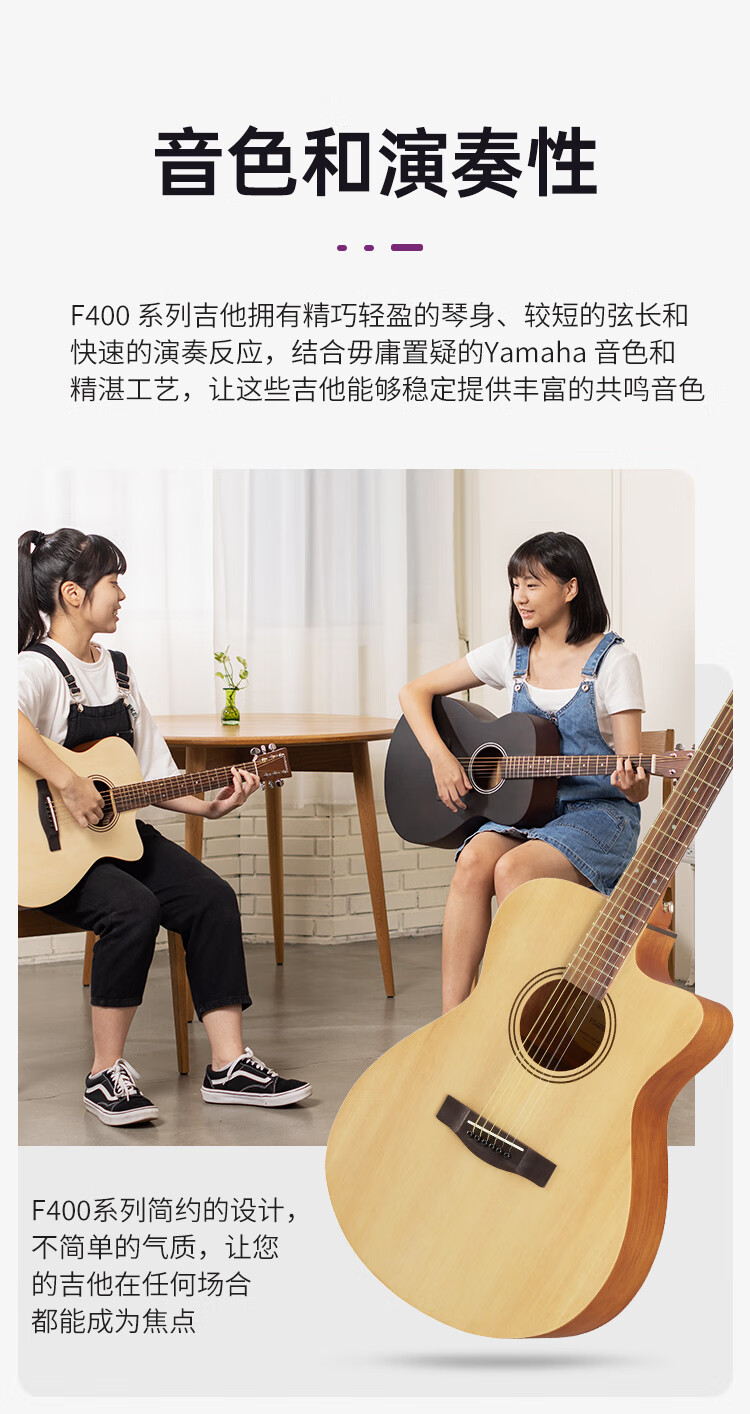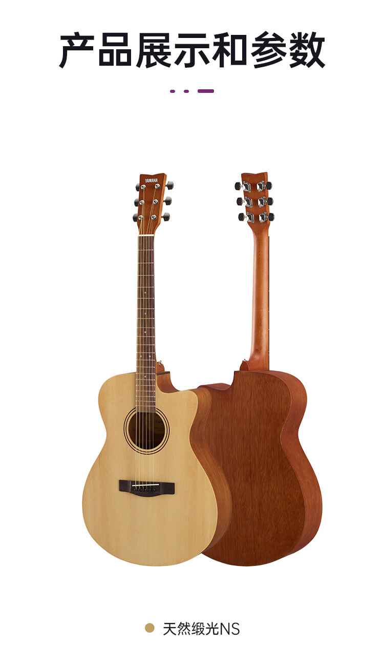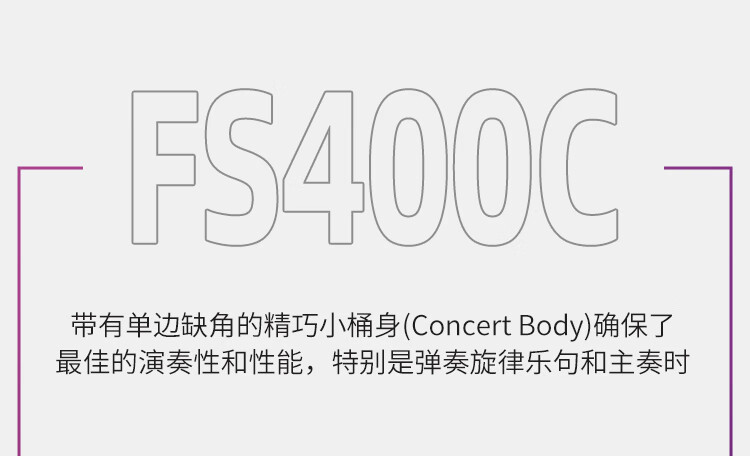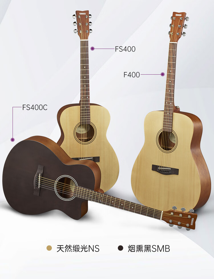 雅马哈(YAMAHA)FS400CSMB 原声款云杉木初学者入门民谣缺角吉他40英寸烟熏黑哑光