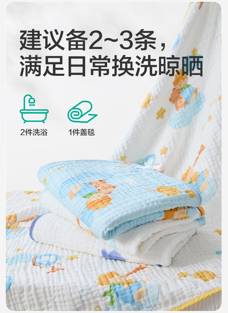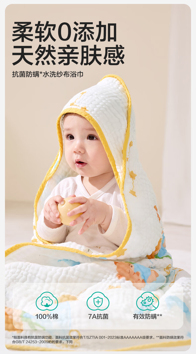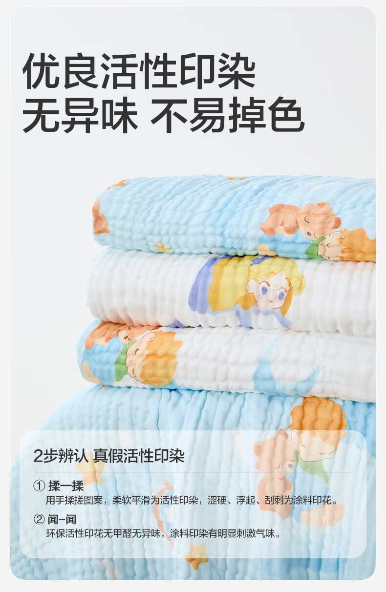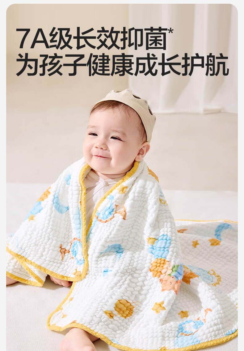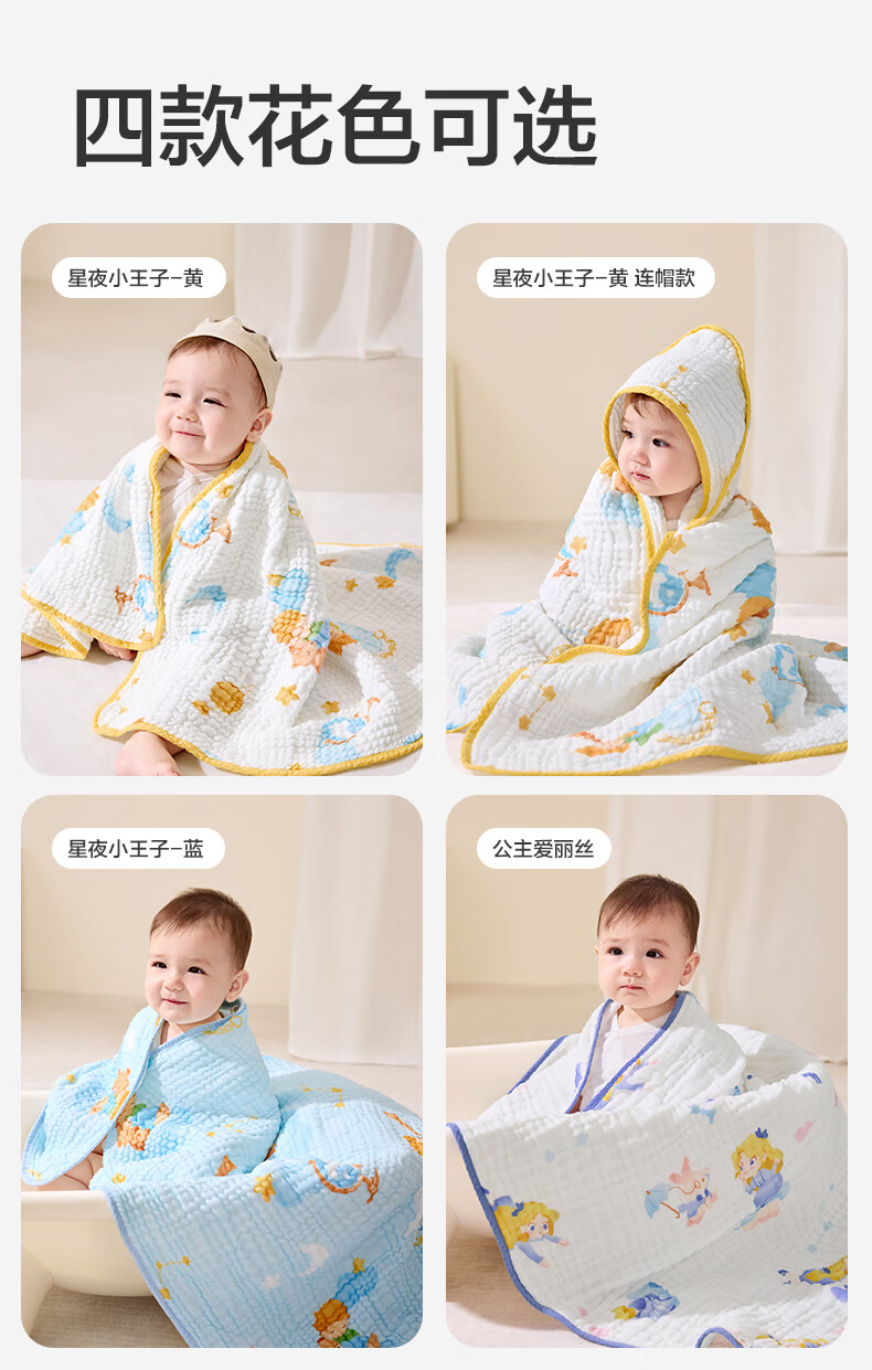 全棉时代婴儿浴巾纯棉纱布浴巾抗菌宝宝洗澡毛巾儿童盖毯 小王子-黄105cm