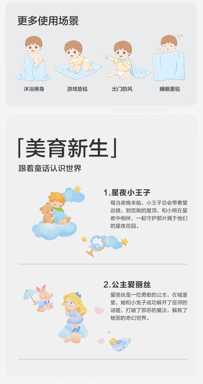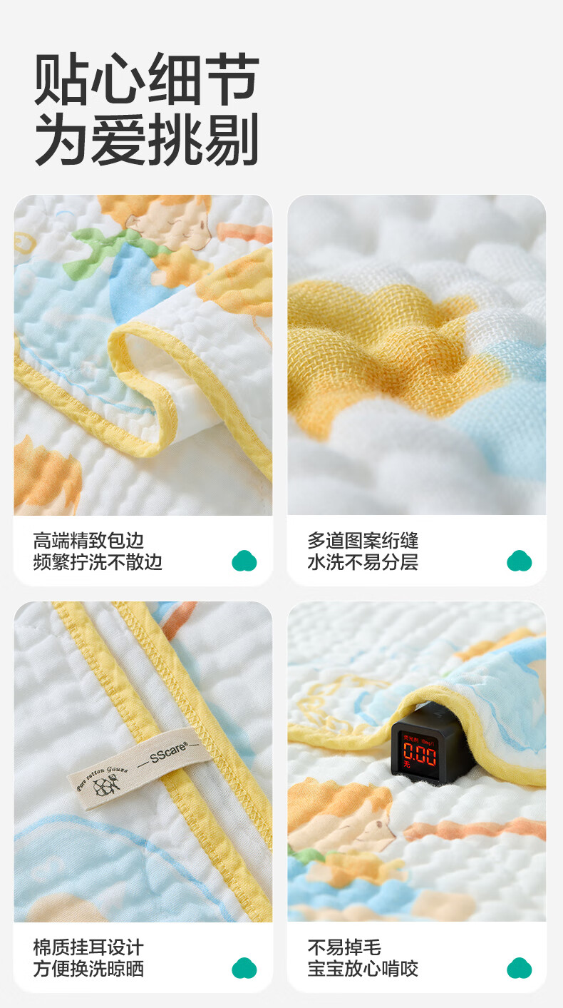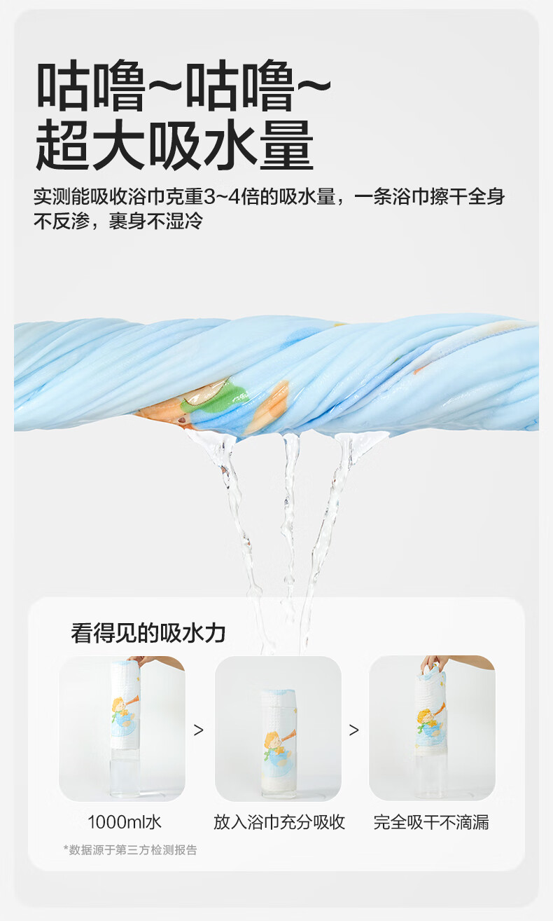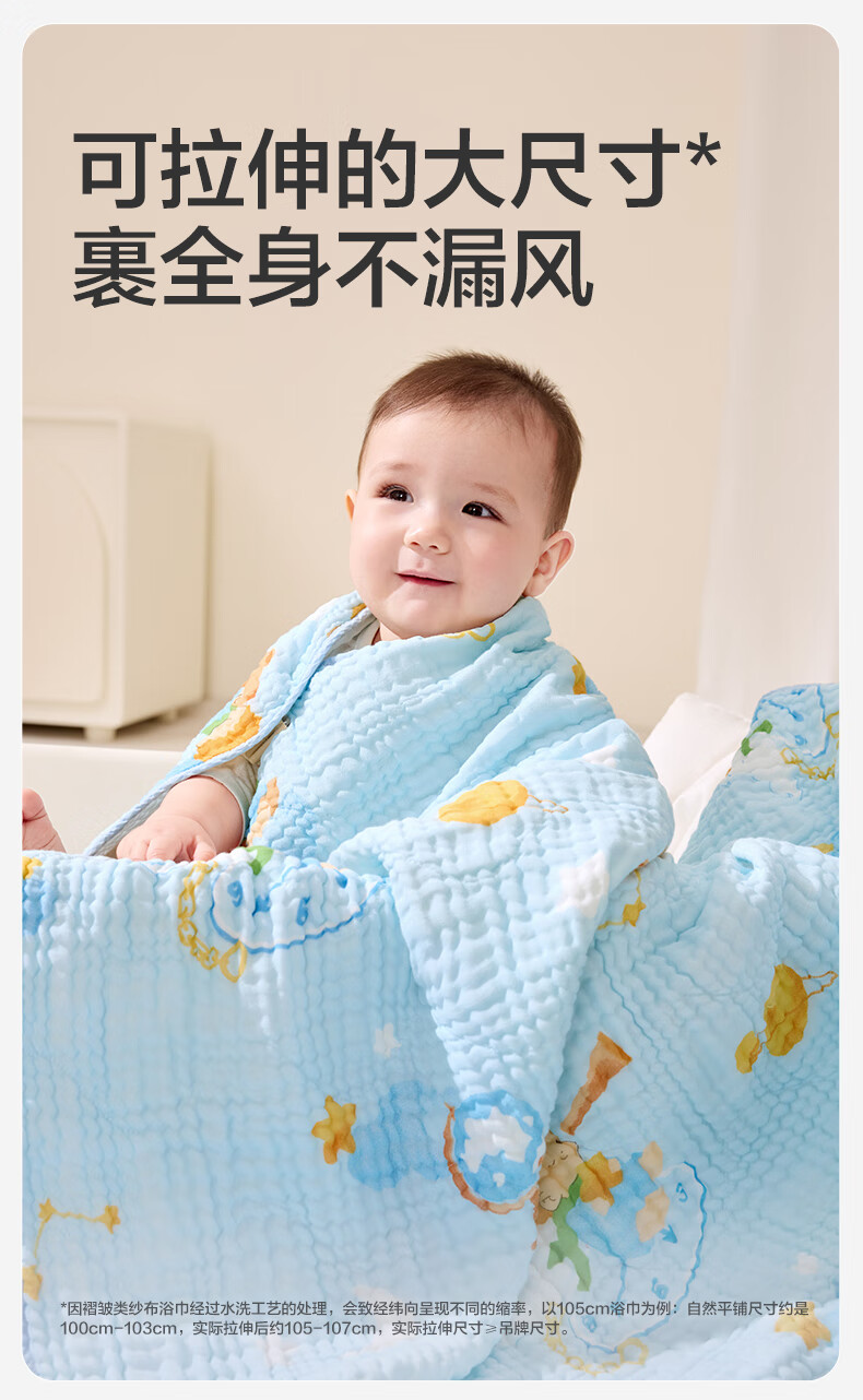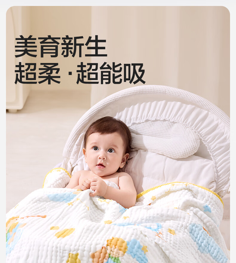 全棉时代婴儿浴巾纯棉纱布浴巾抗菌宝宝洗澡毛巾儿童盖毯 小王子-黄105cm