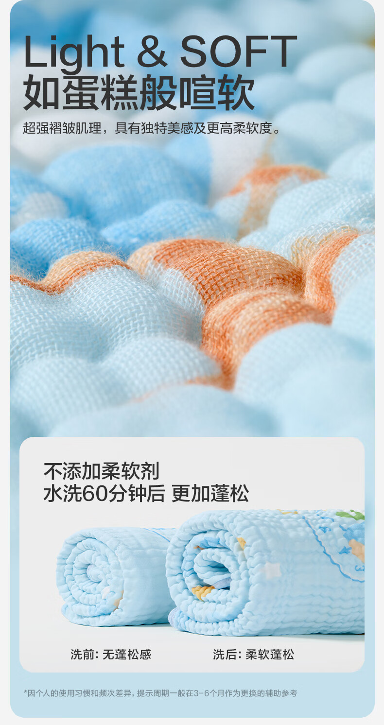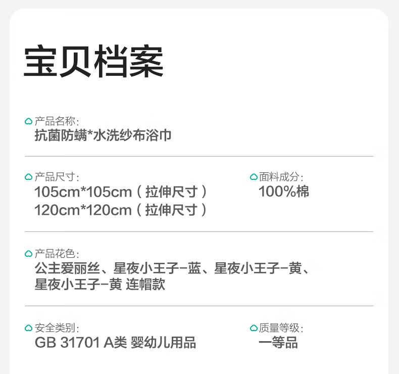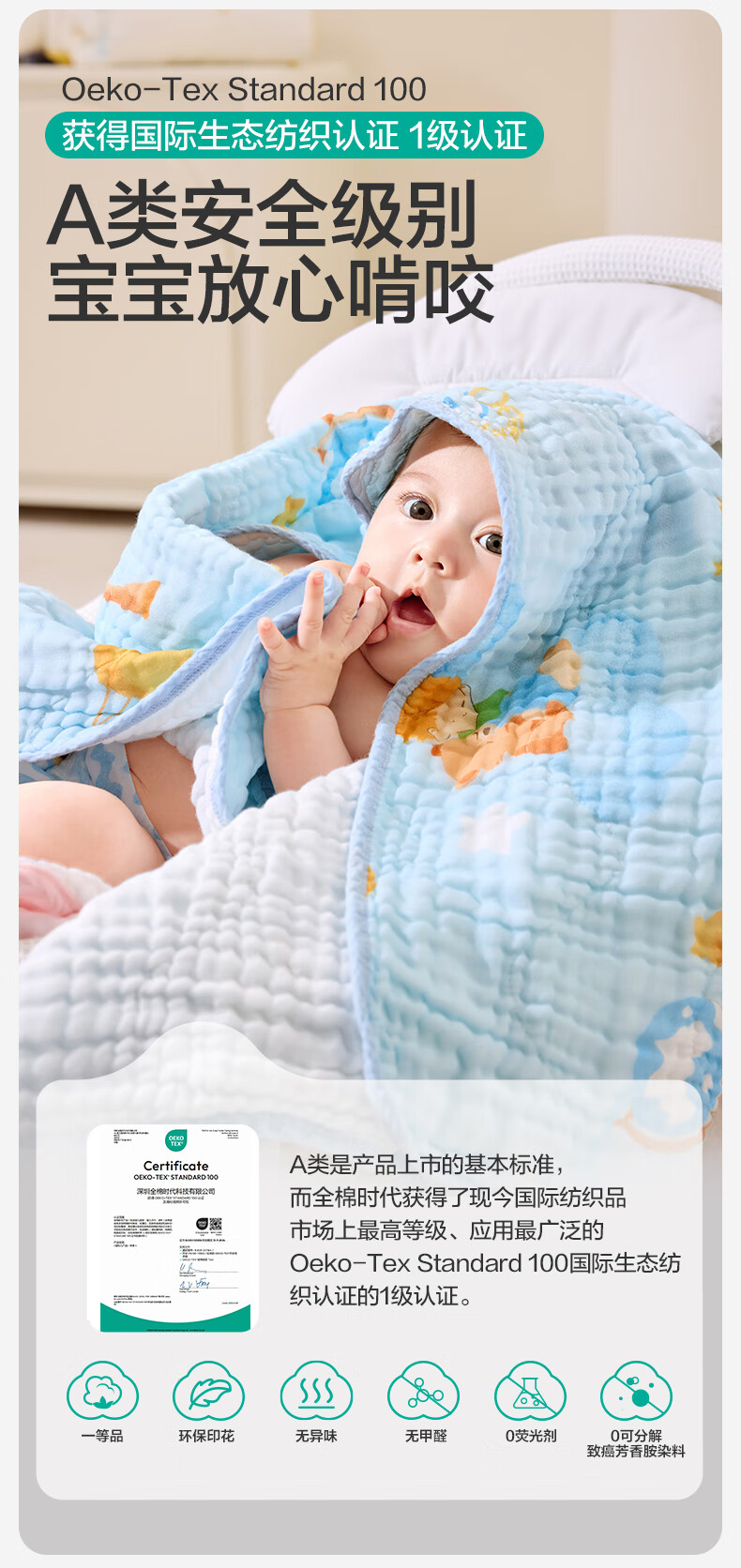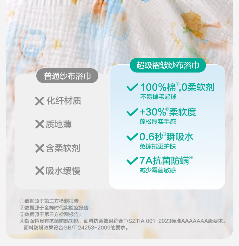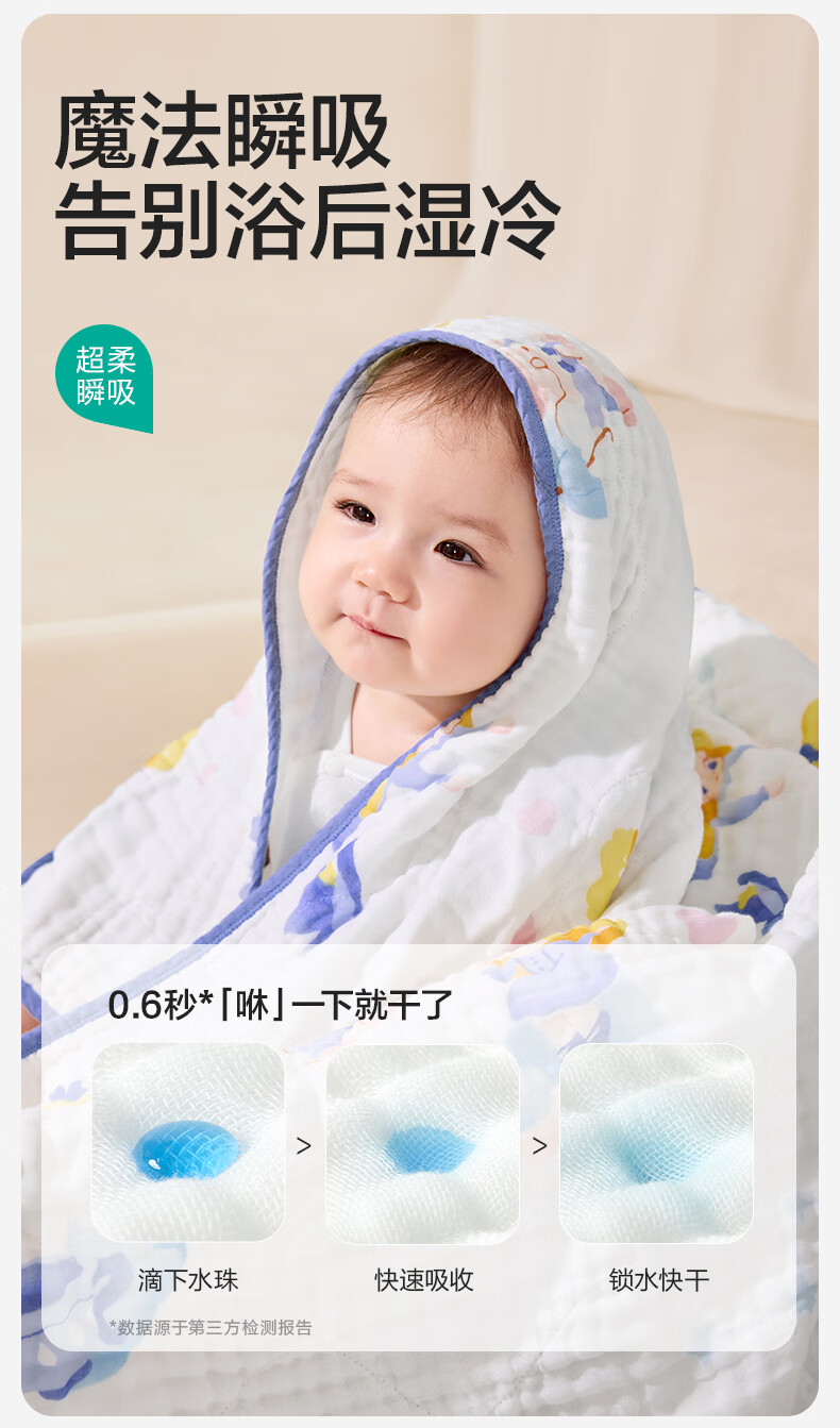 全棉时代婴儿浴巾纯棉纱布浴巾抗菌宝宝洗澡毛巾儿童盖毯 小王子-黄105cm