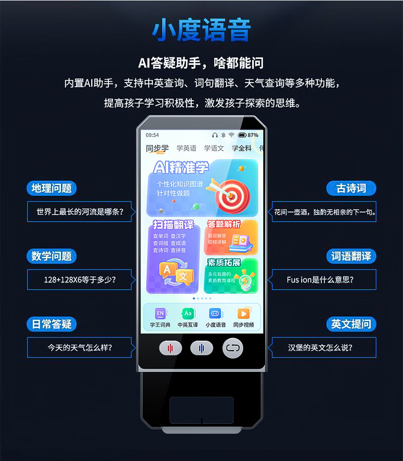 小米芯科大严选智能ai口袋学习机6-16岁初中小学生复读机小度语音高中全科同步学练机英语学习机二合一 AI大模型【学习机+听力宝+点读笔】三合一高清护眼 8+512GB