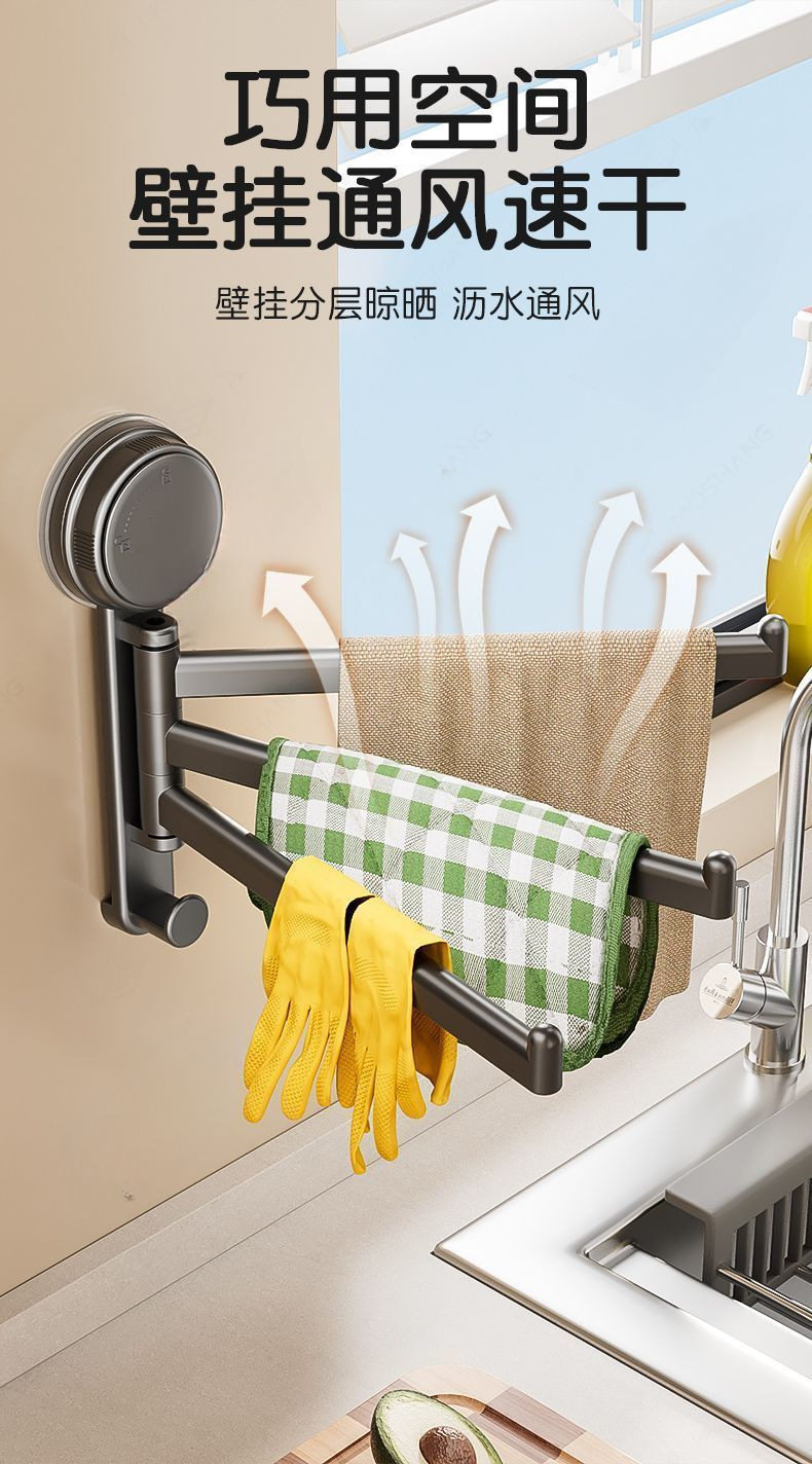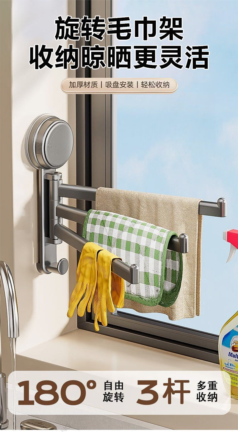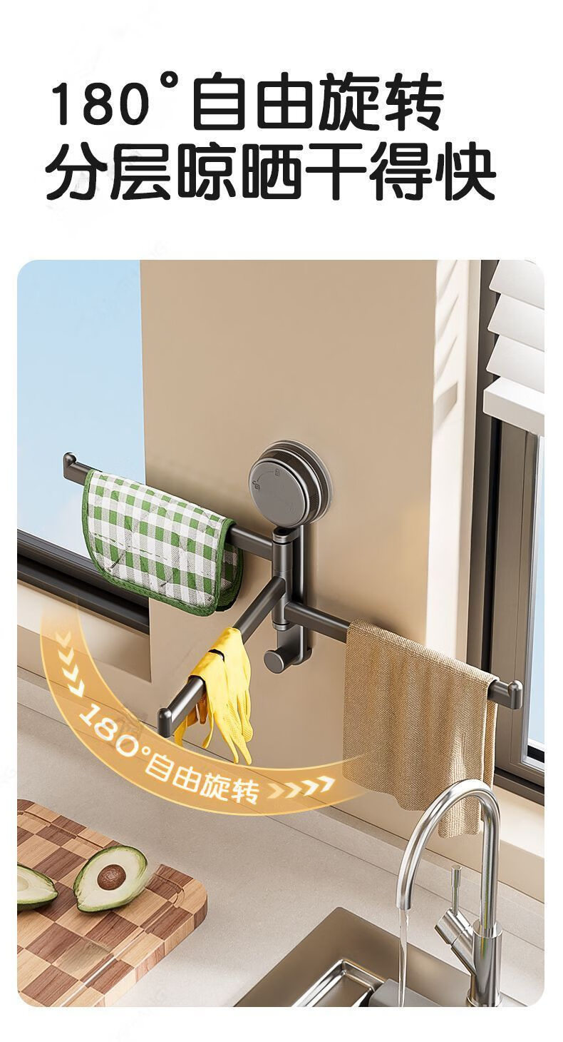 【优选直发】吸盘厨房抹布架洗碗槽窗台多杆可旋转沥水架置物架壁 奶油色吸盘抹布架【1个装】 1cm