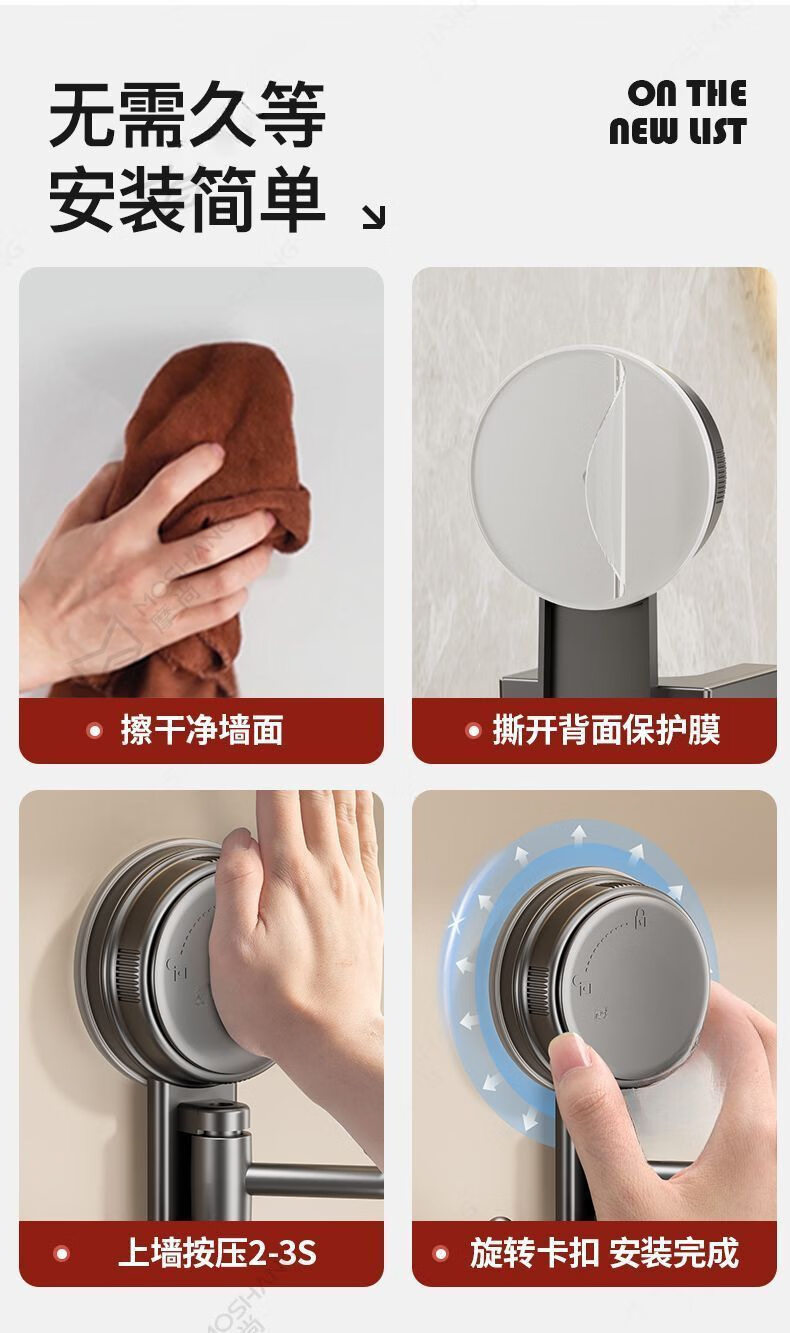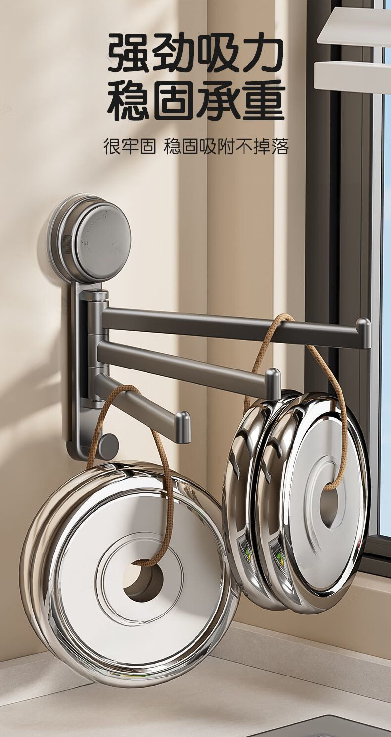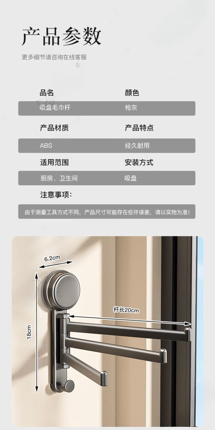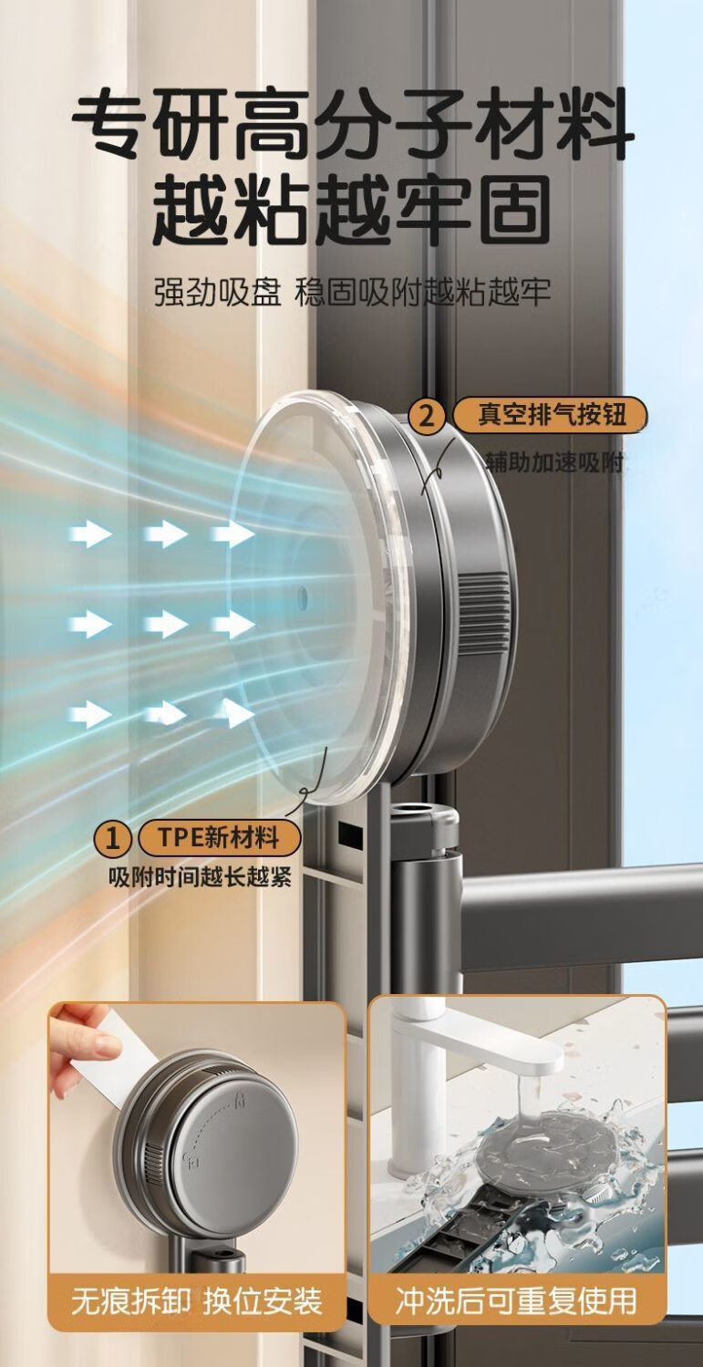 【优选直发】吸盘厨房抹布架洗碗槽窗台多杆可旋转沥水架置物架壁 奶油色吸盘抹布架【1个装】 1cm