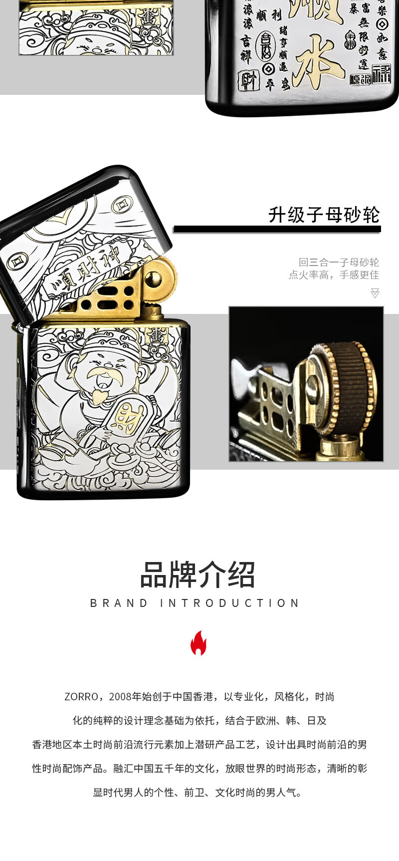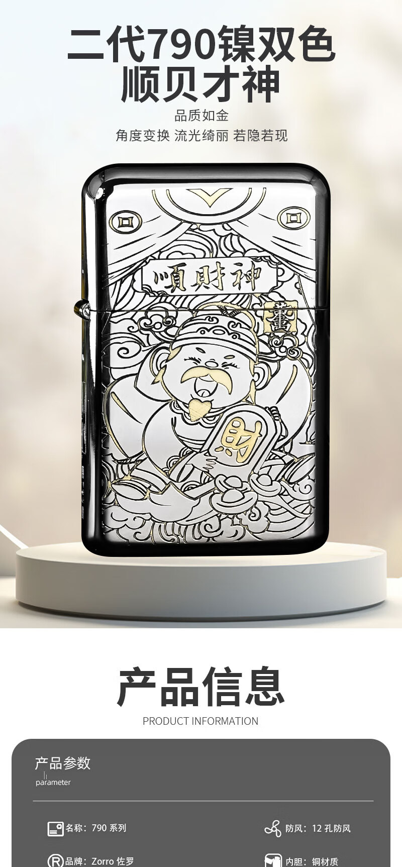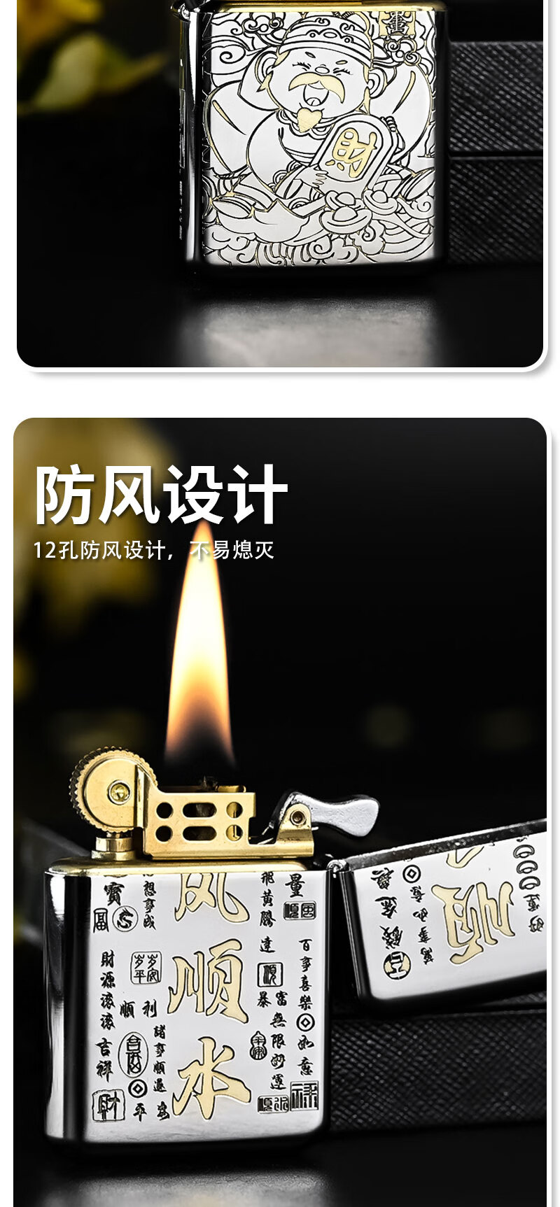 佐罗二代打火机黄铜材质煤油机790定位珠机芯密封底正品礼物男士 133金+790镍双色钓鱼佬不空军
