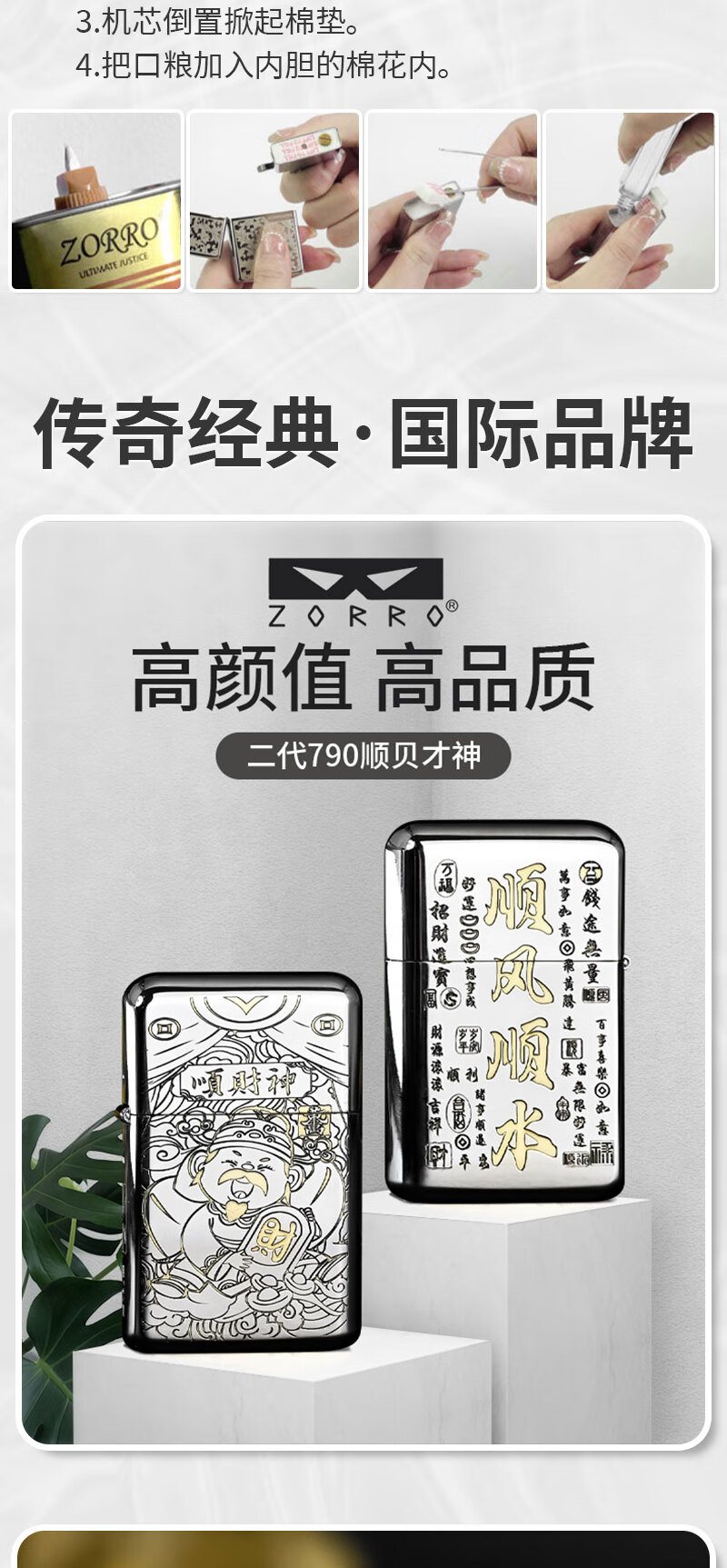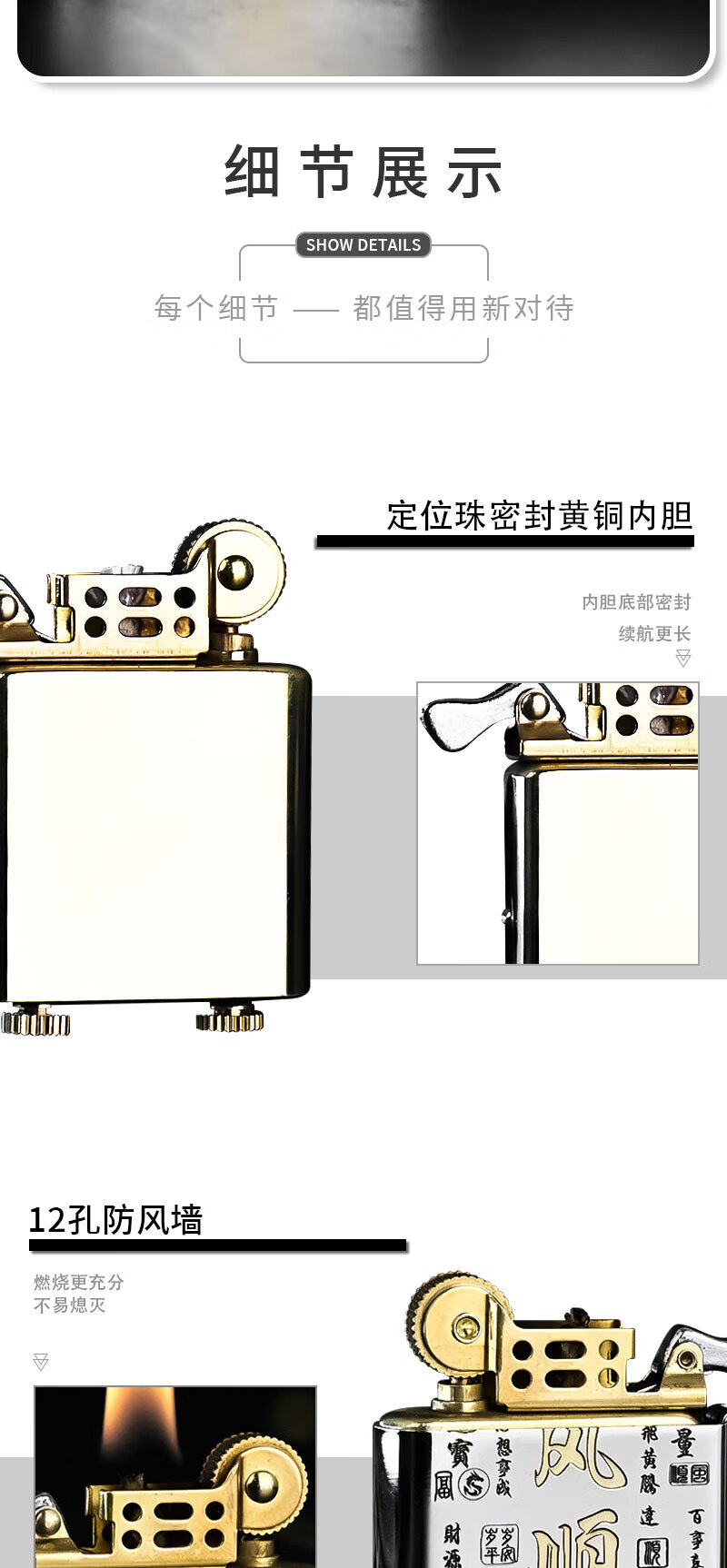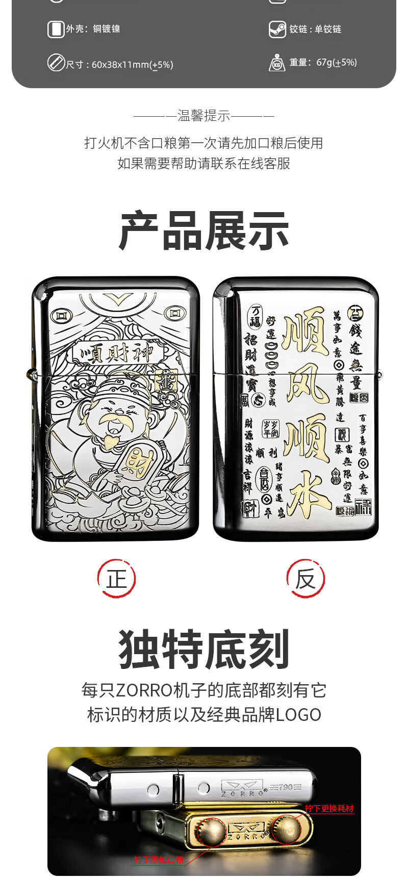 佐罗二代打火机黄铜材质煤油机790定位珠机芯密封底正品礼物男士 133金+790镍双色钓鱼佬不空军