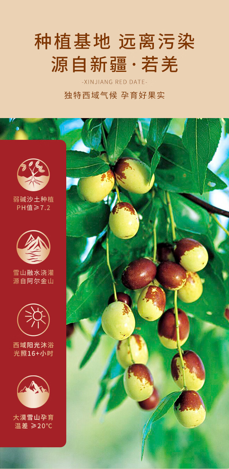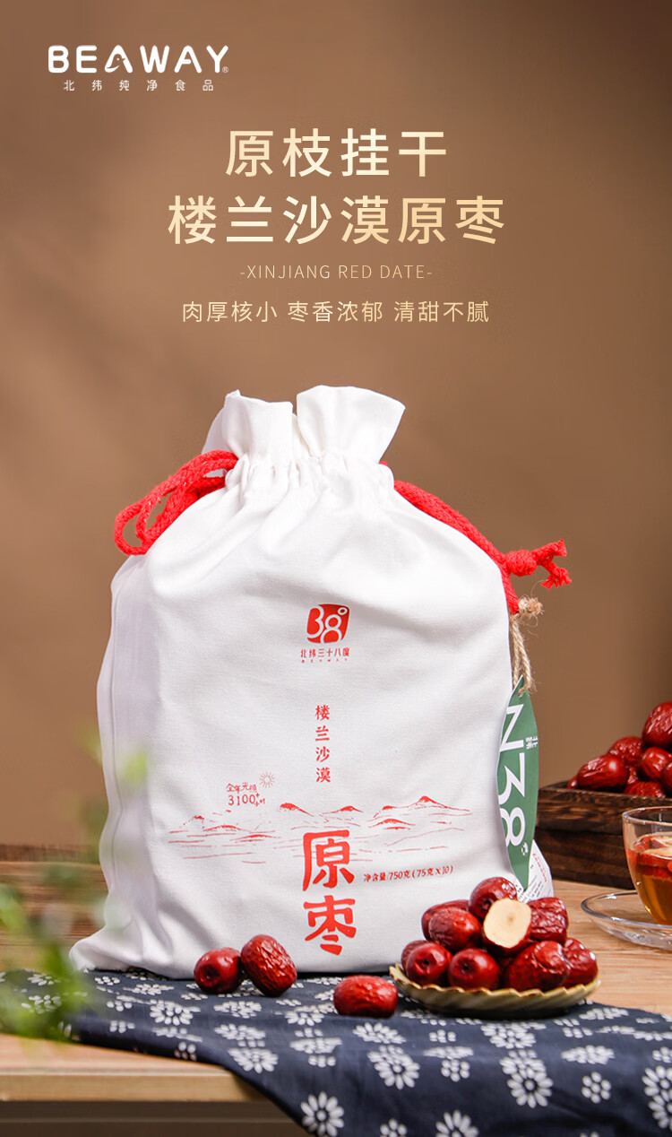 北纬纯净食品|38°新疆若羌灰枣楼兰特产红枣独立小包小袋装零食干果 新疆若羌灰枣750g+大漠薄皮核桃750g
