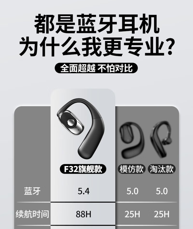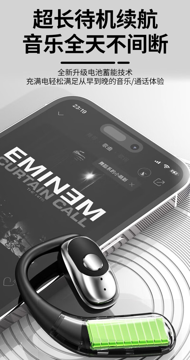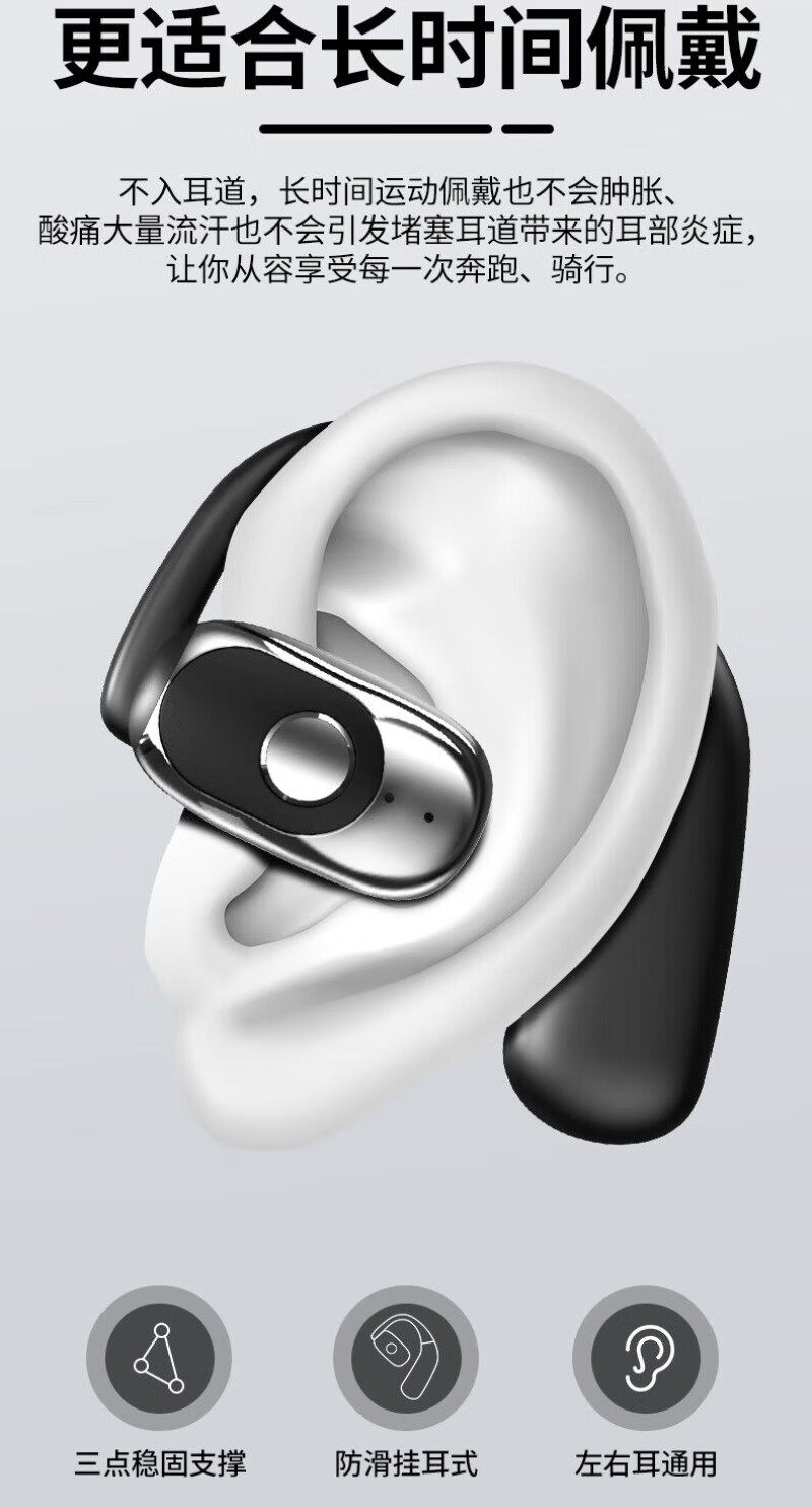 宛奈特【商务开车丨通话清晰】蓝牙耳机无线新款气传导不入耳挂式超长待机运动适用苹果华为小米通用 皓月白【音量大 左右可旋转】 高清之音【连续听歌16小时】 F32