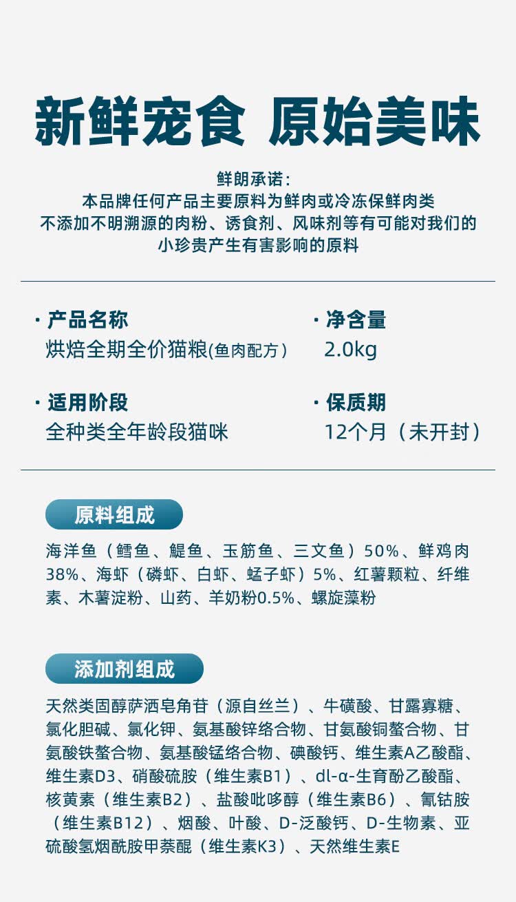 鲜朗烘焙猫粮无谷成猫幼猫专用全价鱼肉全阶段猫粮2kg