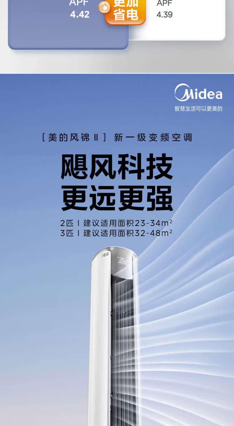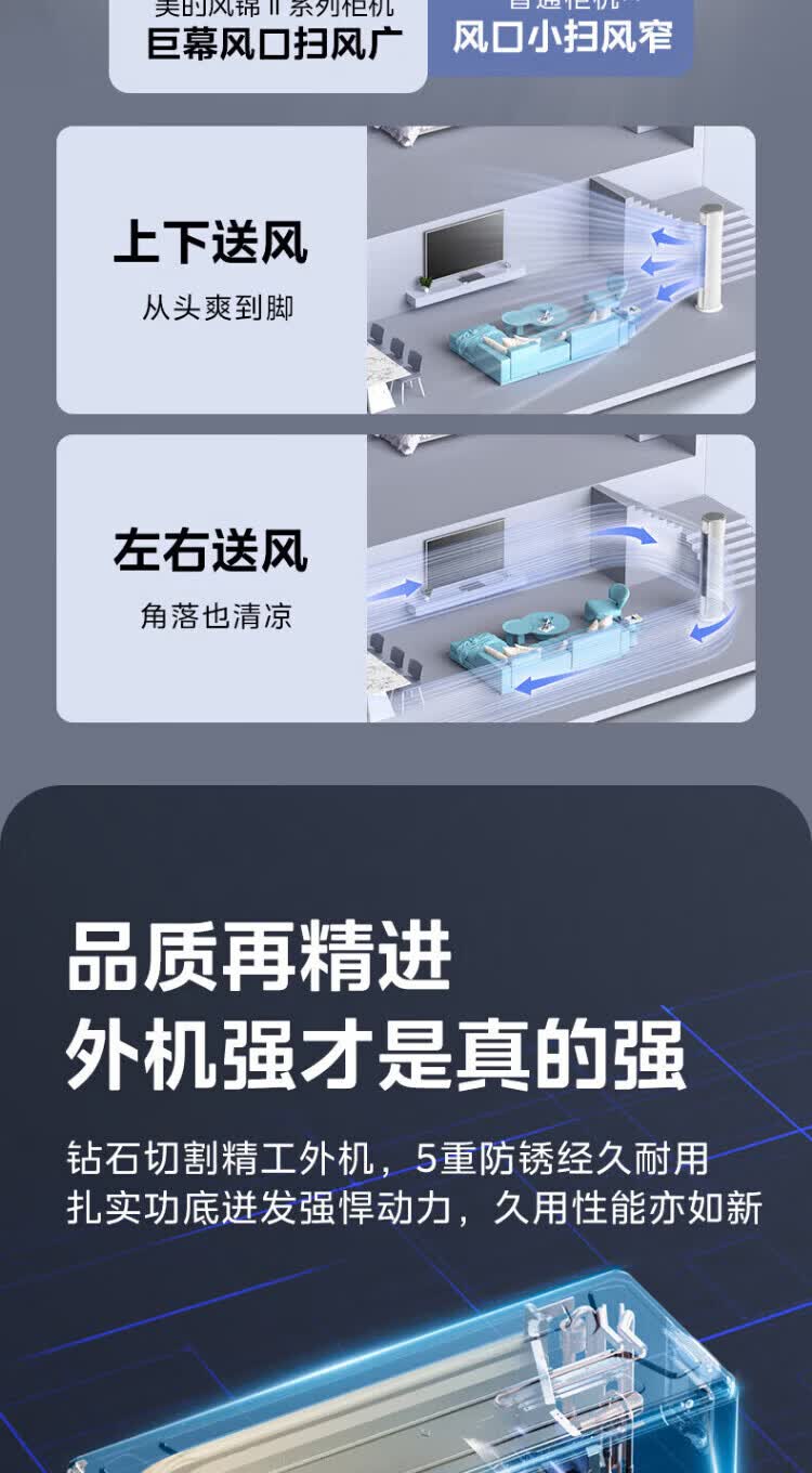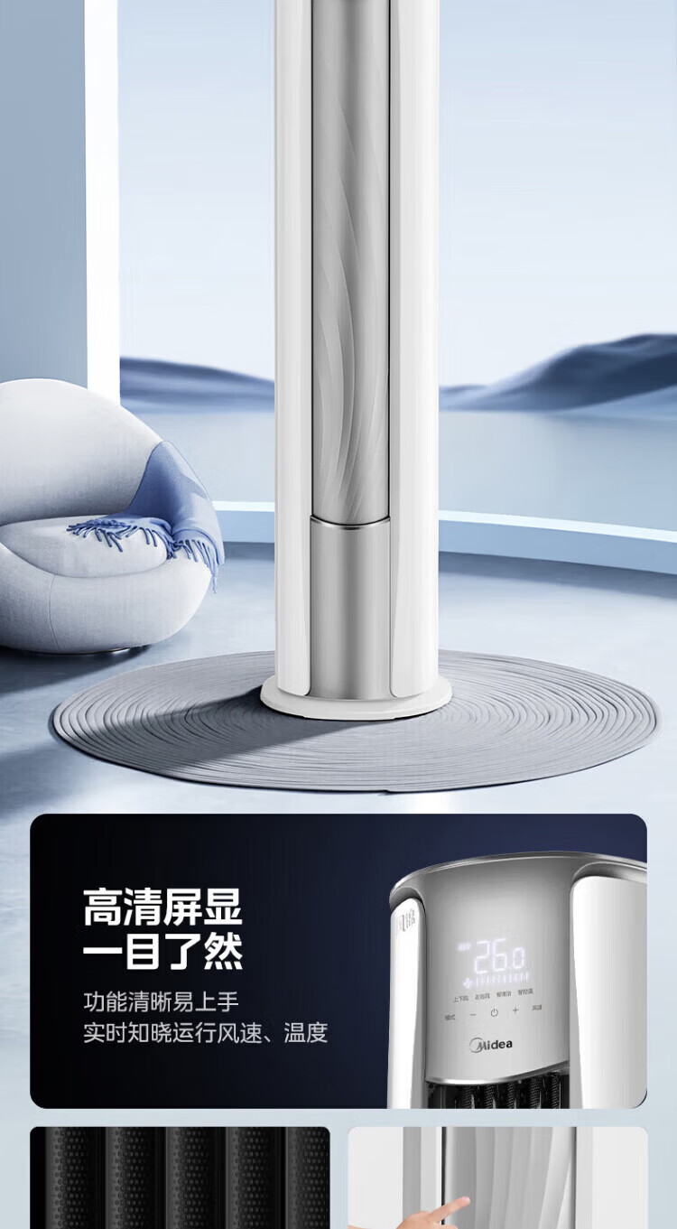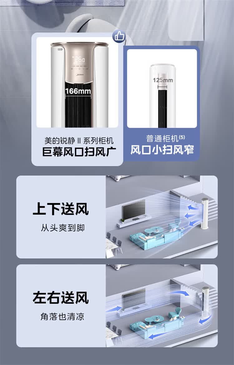 美的空调柜机锐静二代新一级能效大风口变频冷暖家用客厅立式智清洁家电补贴以旧换新 锐静 二代 大3匹 升级大风口 一级能效
