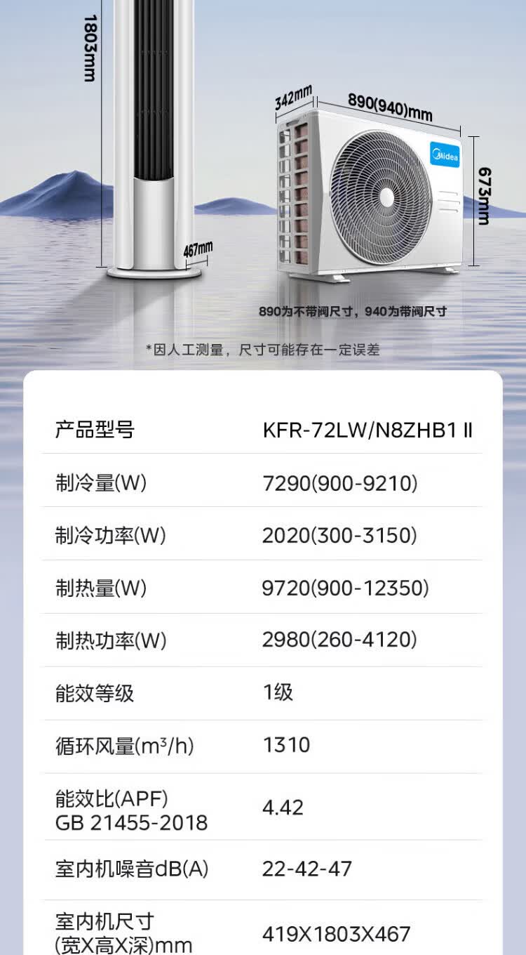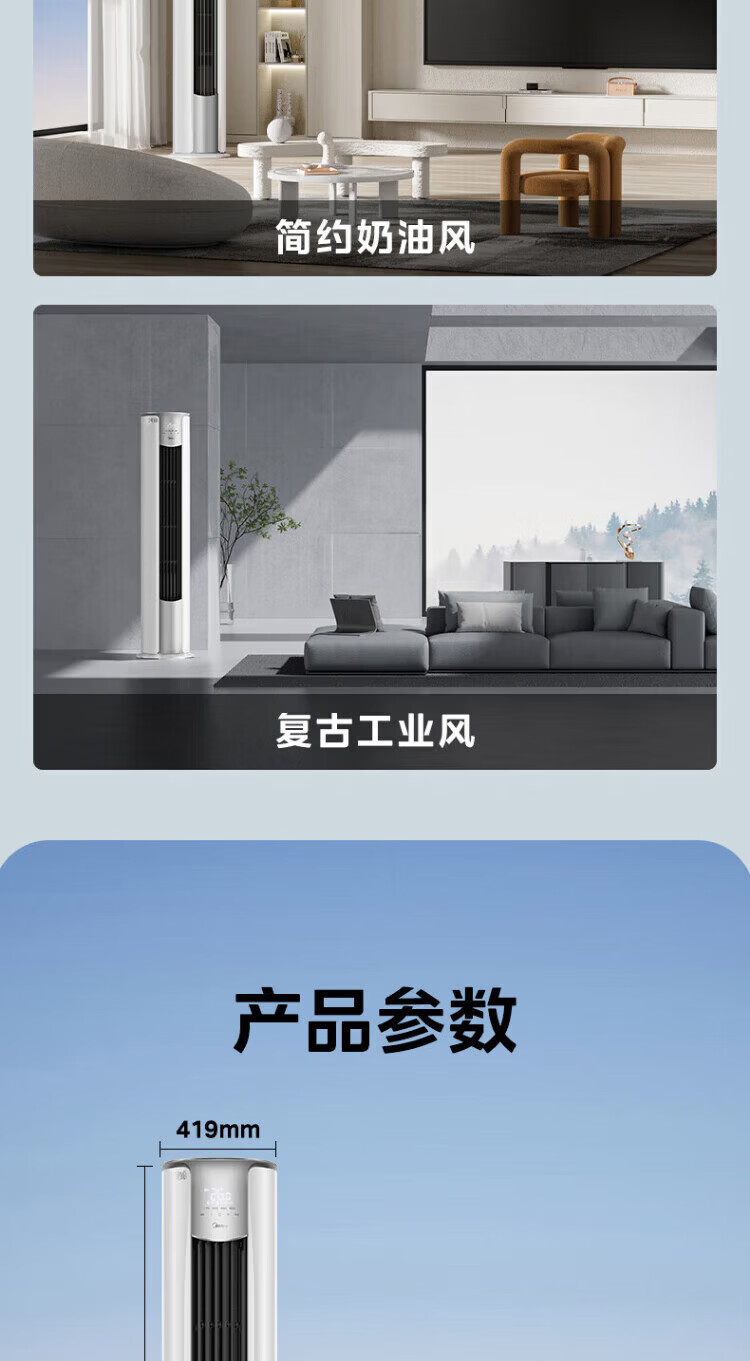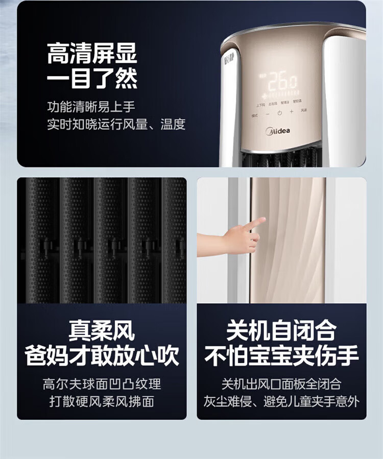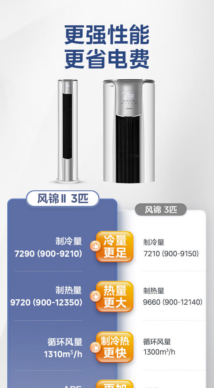 美的空调柜机锐静二代新一级能效大风口变频冷暖家用客厅立式智清洁家电补贴以旧换新 锐静 二代 大3匹 升级大风口 一级能效