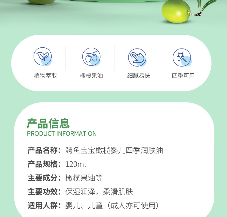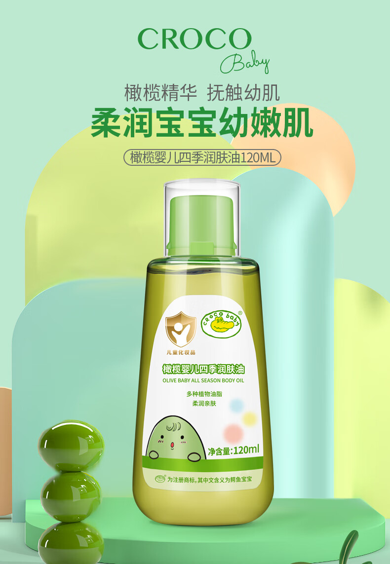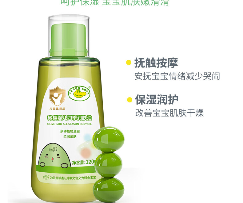 鳄鱼宝宝橄榄婴儿四季润肤油新生儿抚触有按摩油头垢油柔润保湿油植物油 120ml*1瓶 婴儿四季润肤油