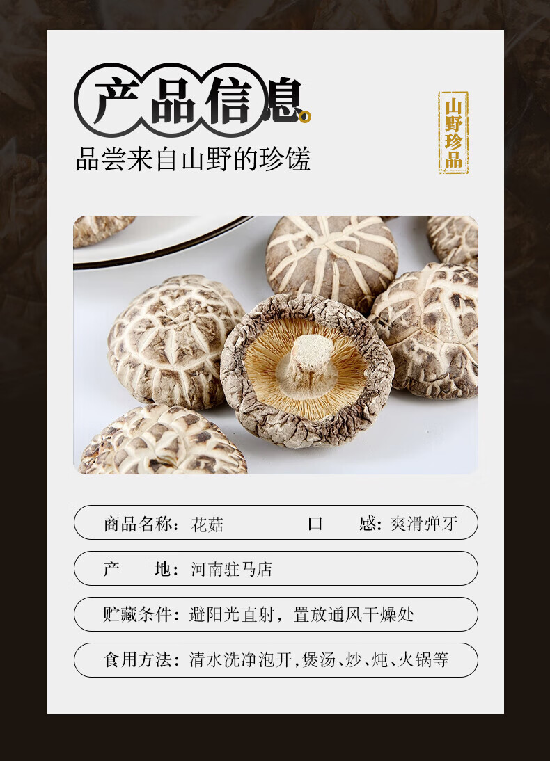 产地直供 正阳农家香菇干花菇 火锅新年年货食材可煲汤 朵朵精选 美味香菇【100g】