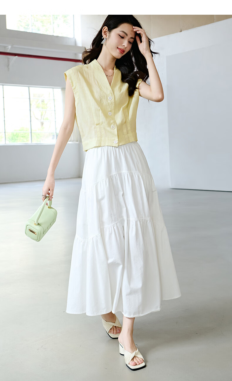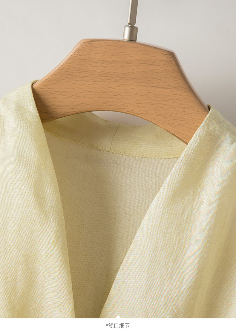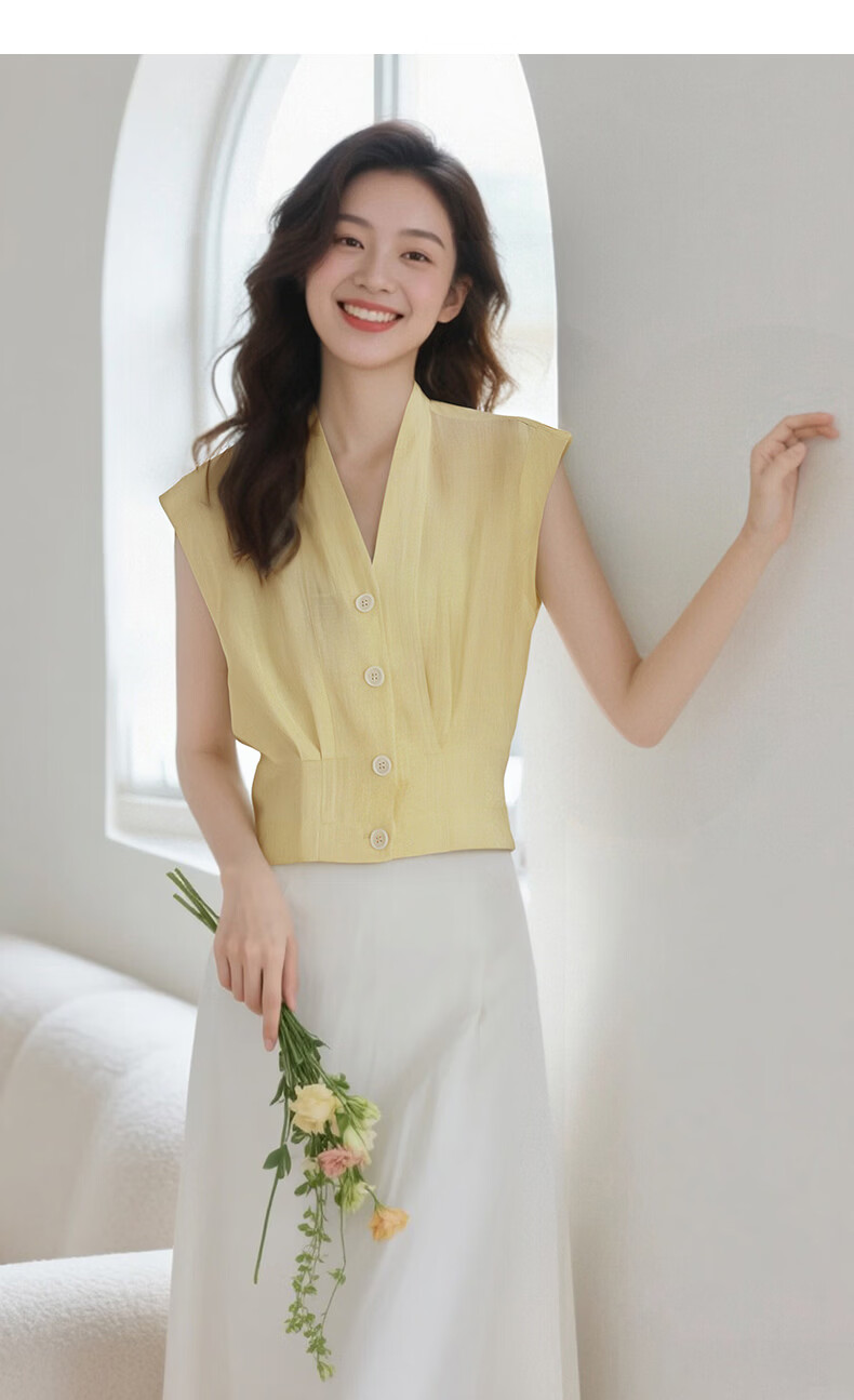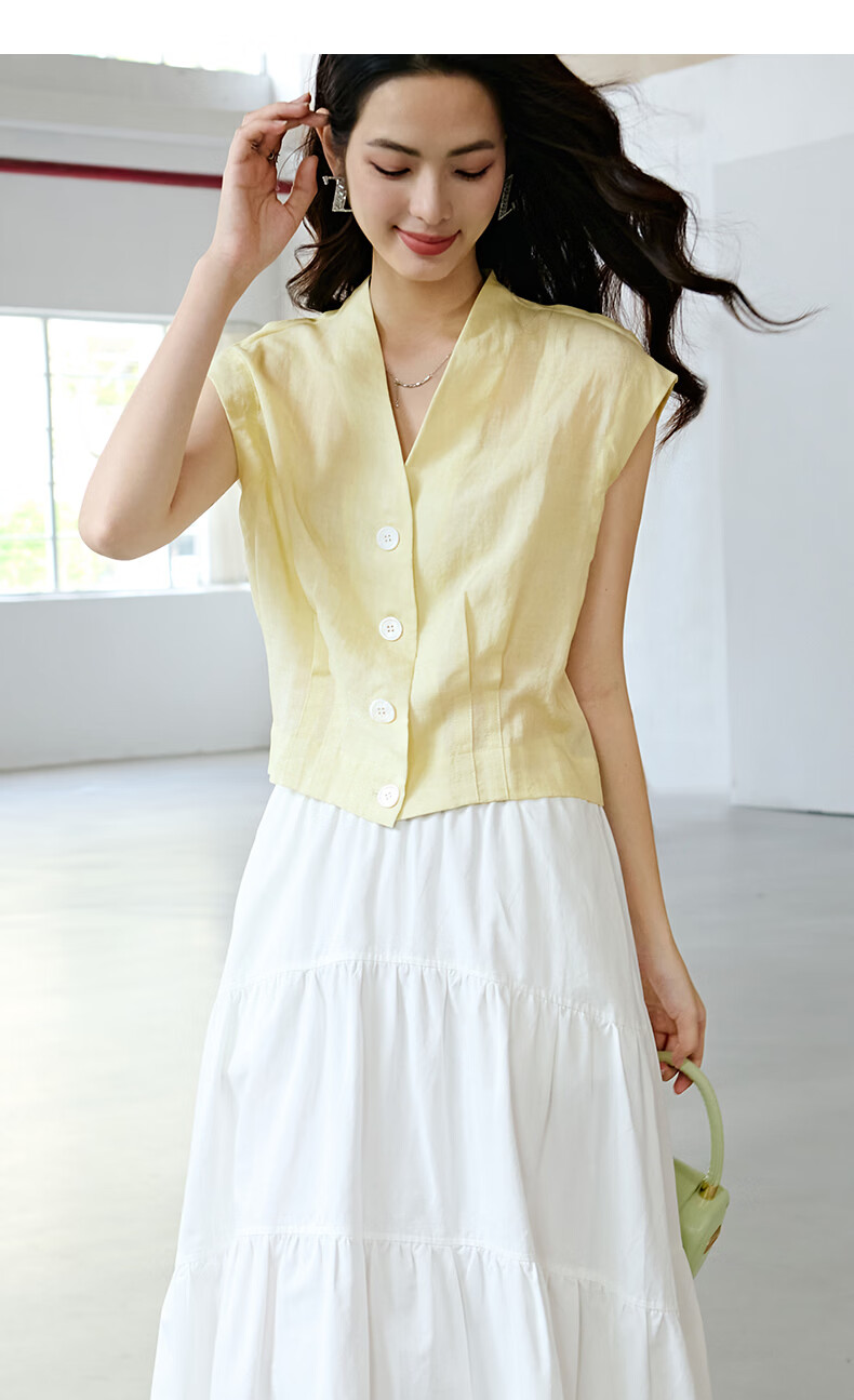 晚白2026年春夏款老钱风V领莱赛尔天丝含麻上衣轻薄休闲无袖衬衫女 嫩黄色 S