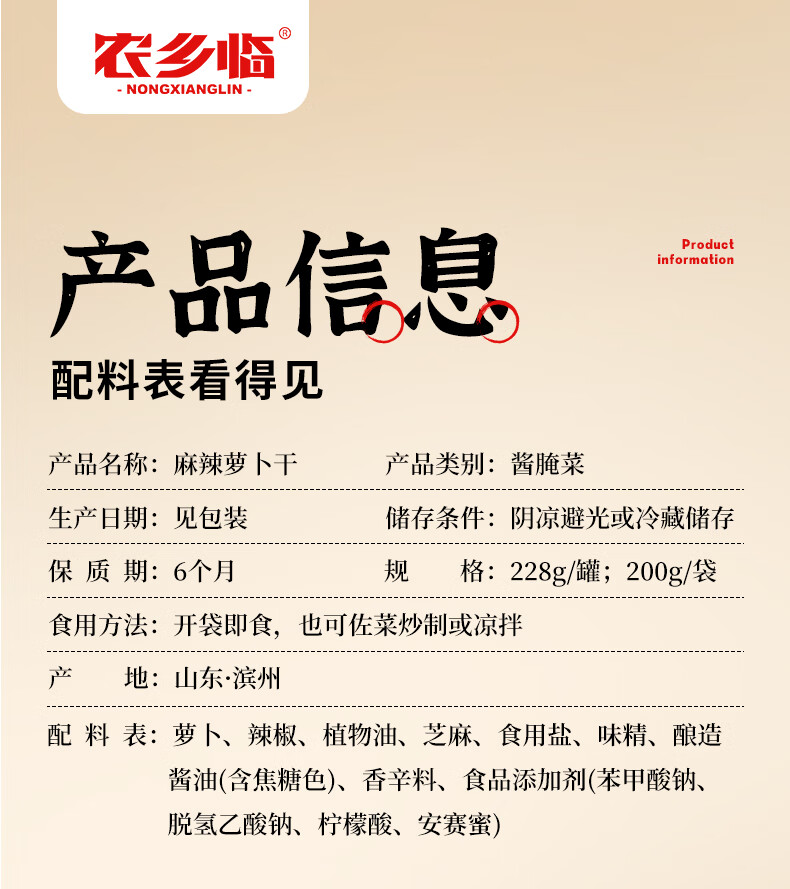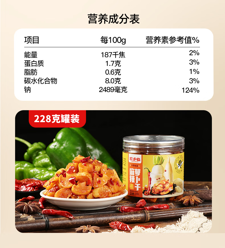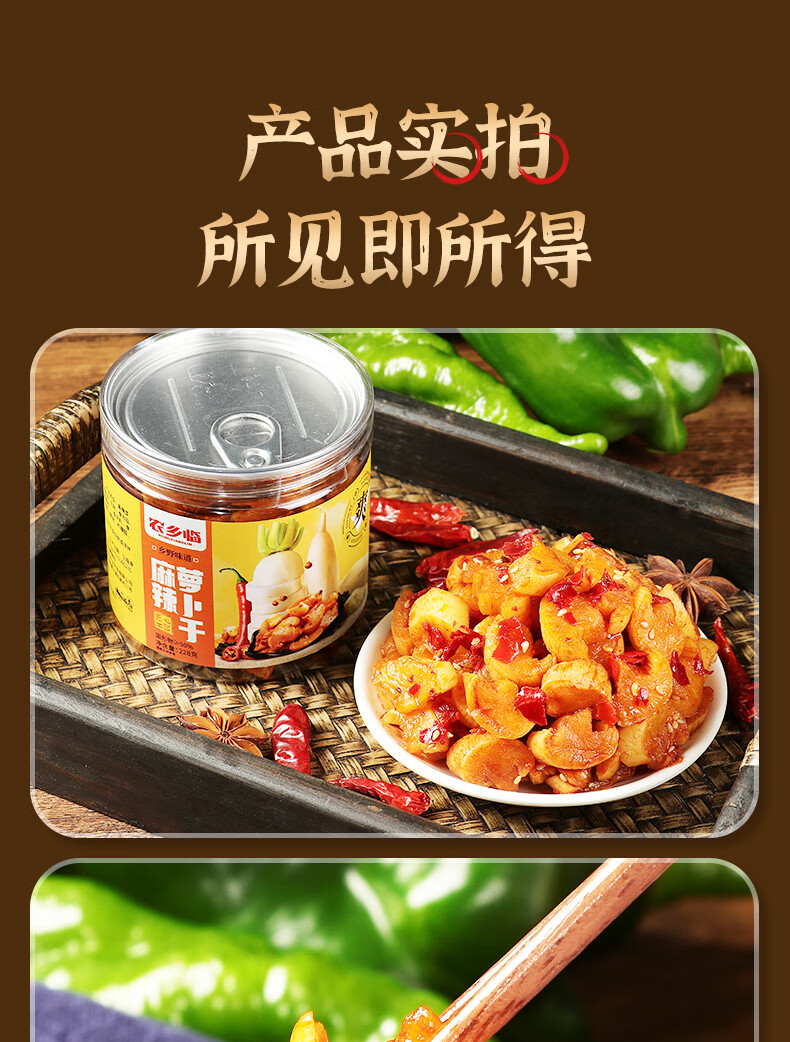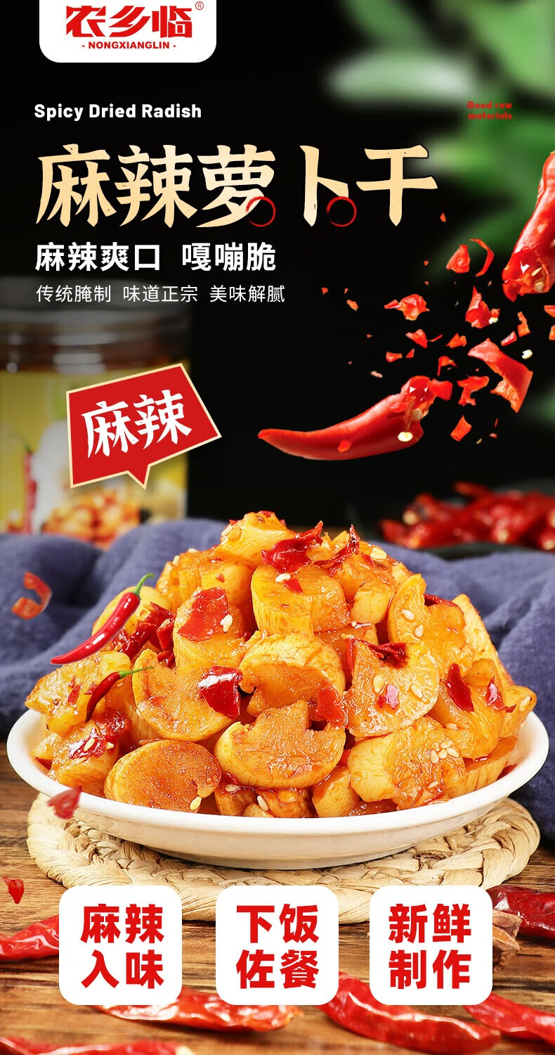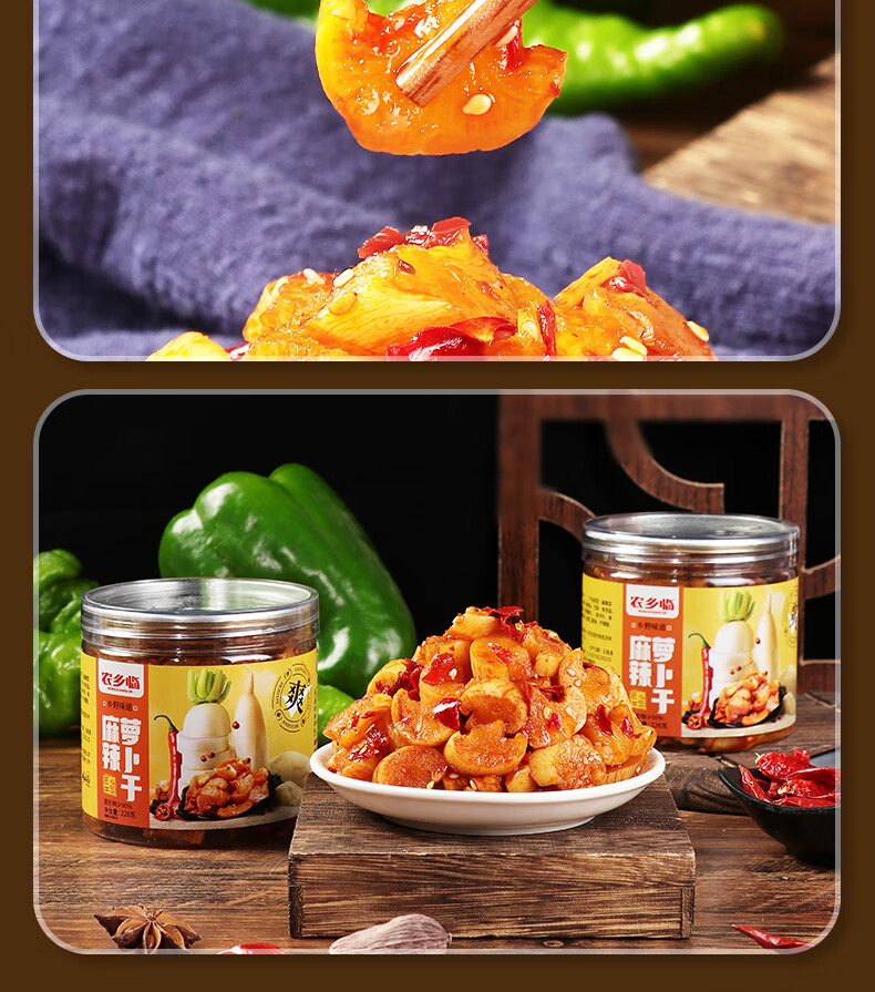 农乡临麻辣萝卜228g山东萝卜腌制开胃下饭酱菜萝卜干开罐即食 麻辣萝卜干罐装【228g*2】